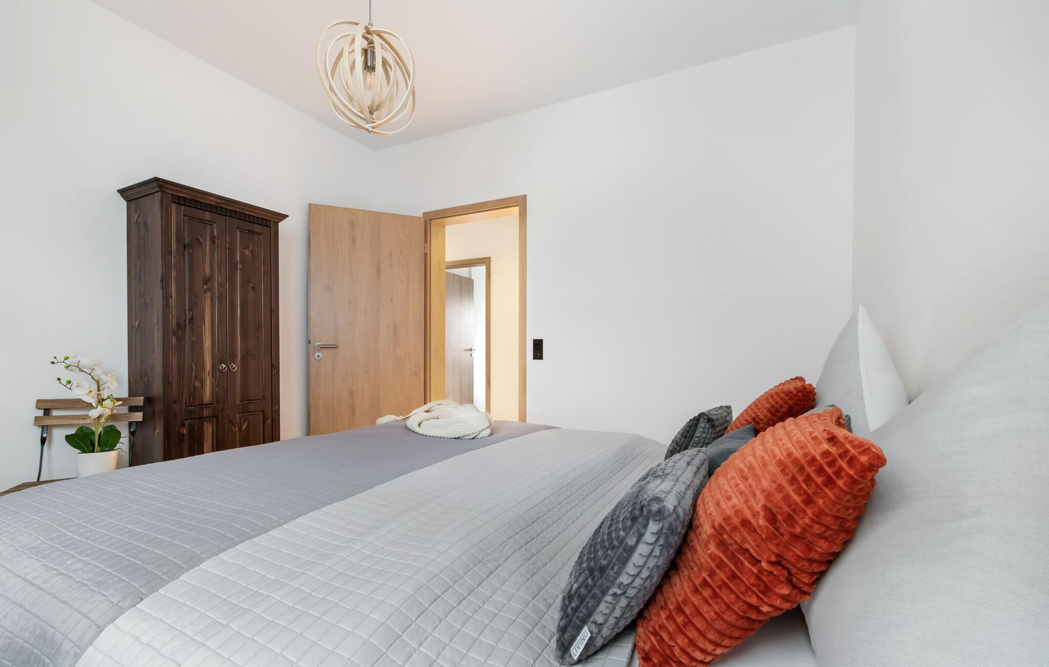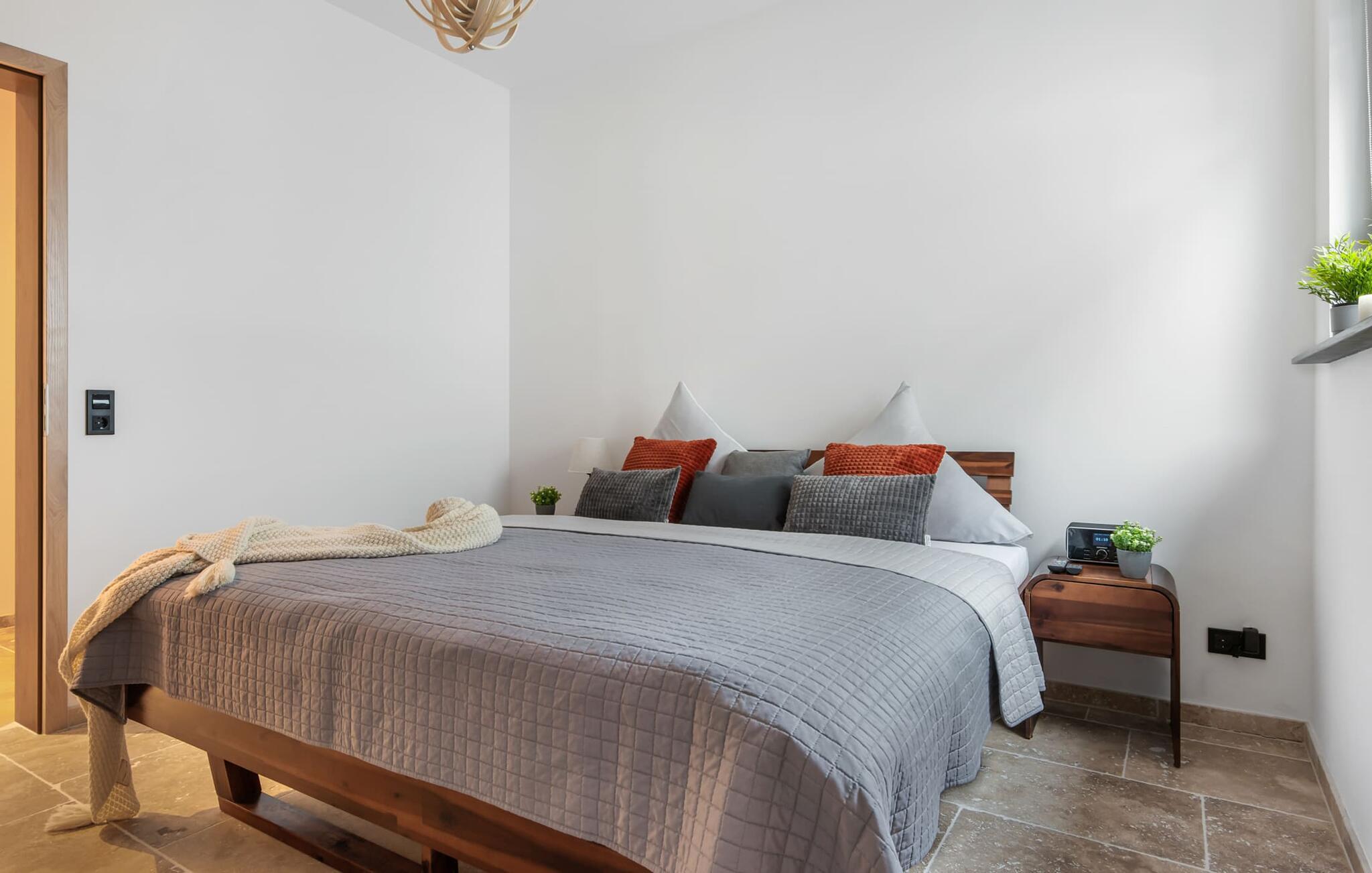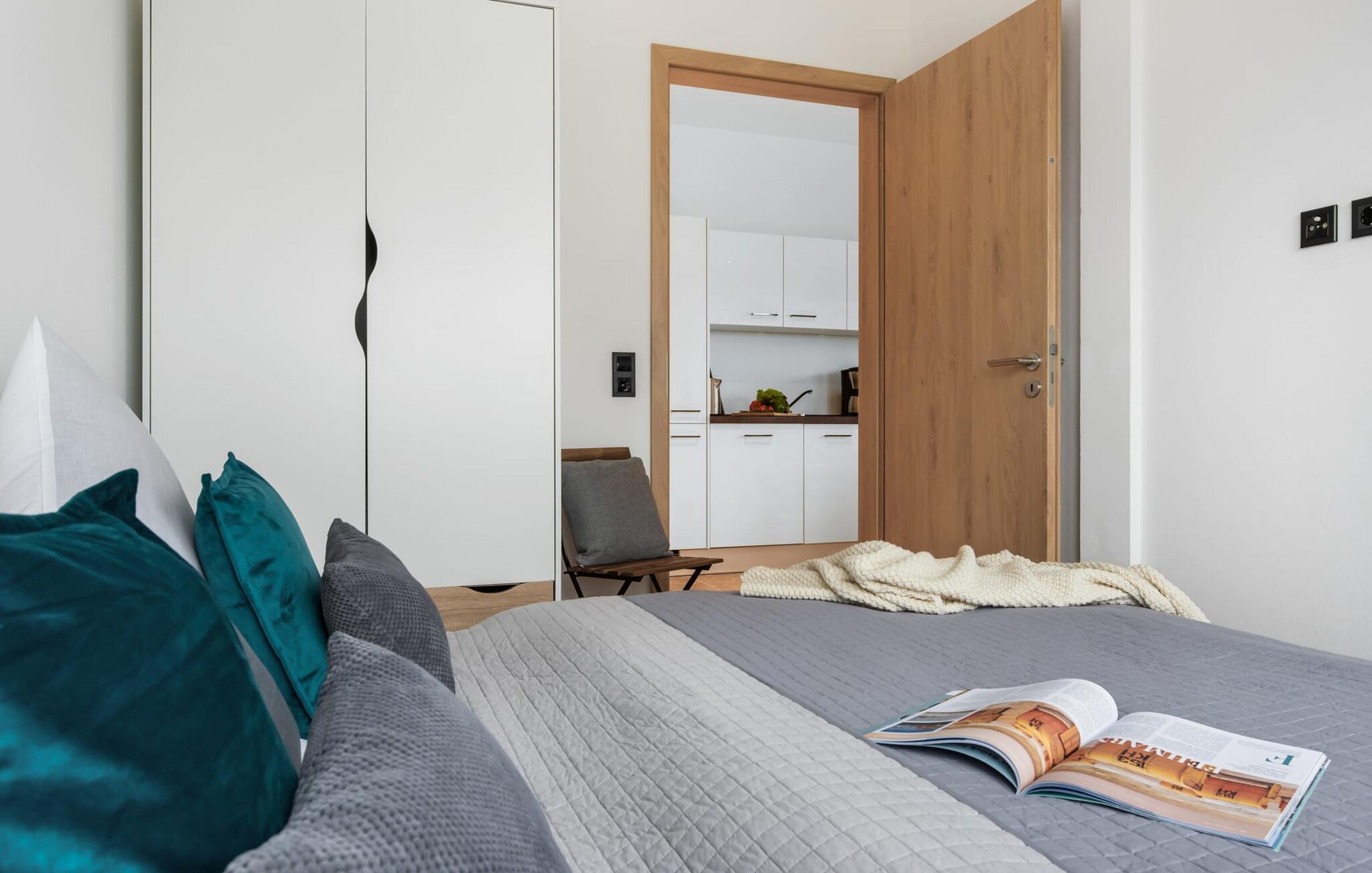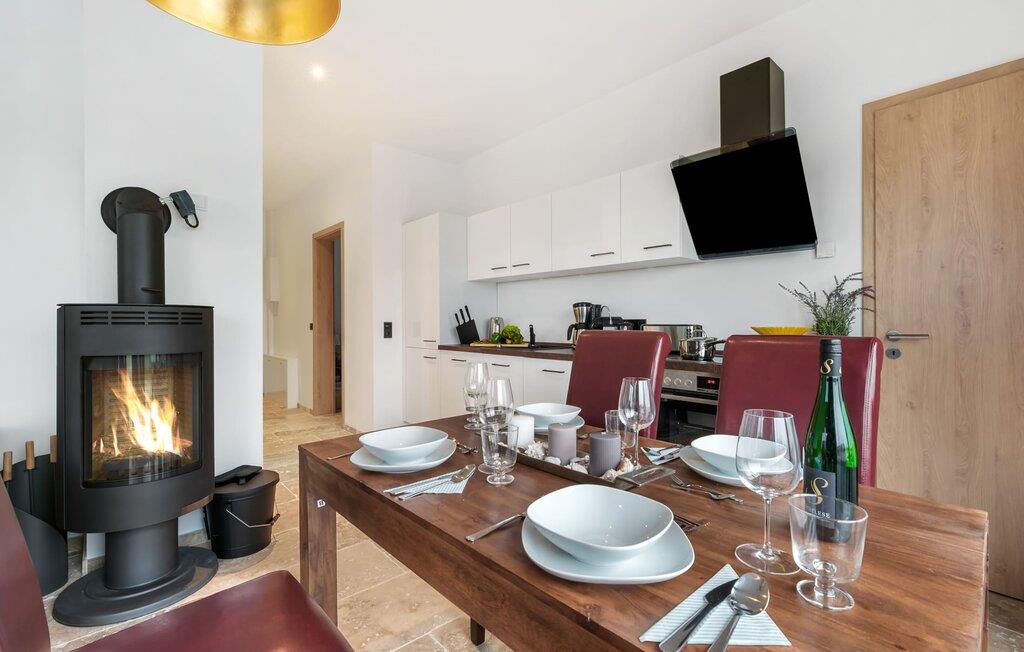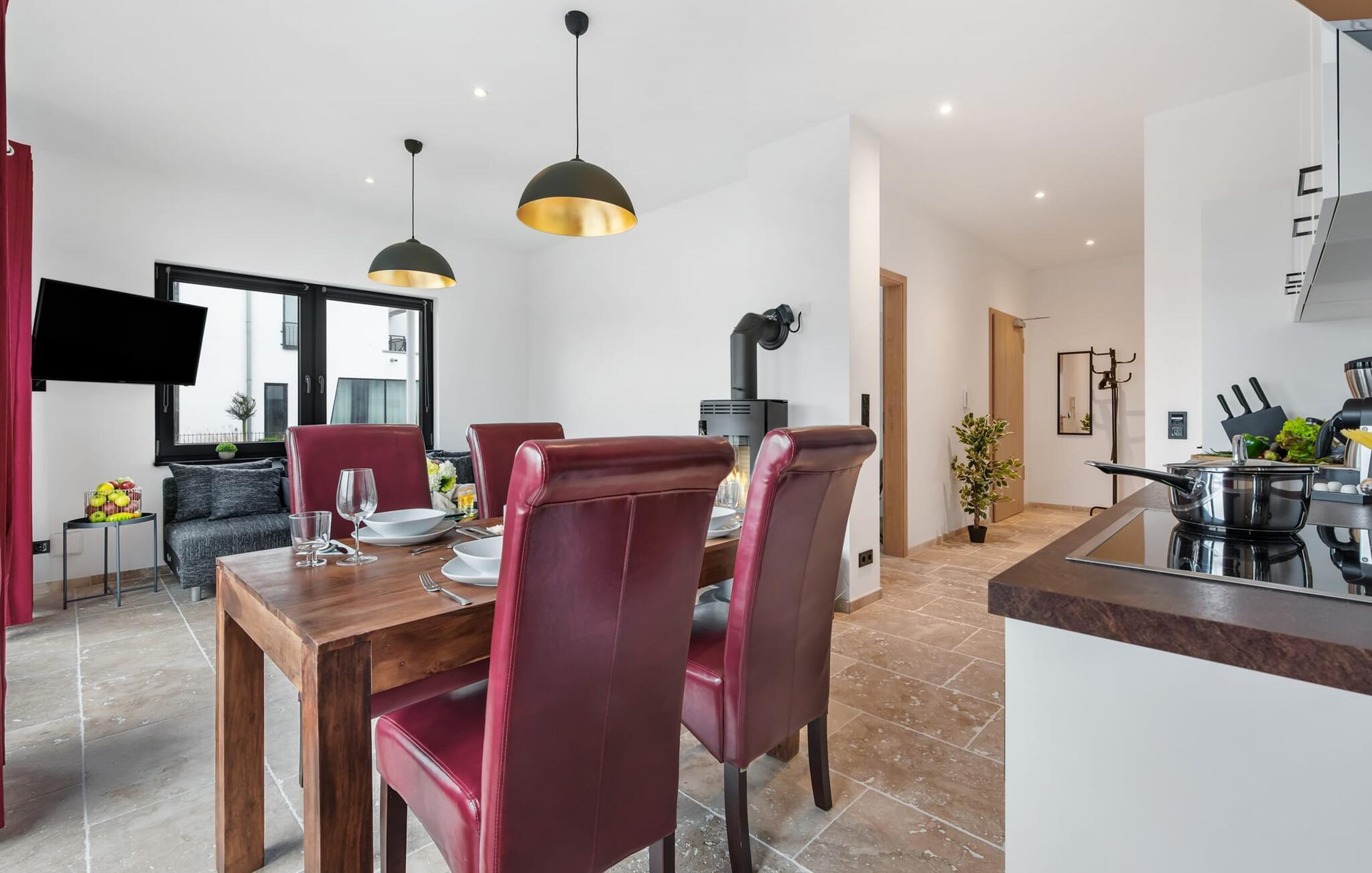 Det fuldt udstyrede moderne mærkekøkken fra Bosch tilbyder alle bekvemmeligheder, og lader intet tilbage at ønske. Takket være gulvvarme og pejs er lejligheden ideel til enhver sæson. Hvad enten det er med en bog og vin, en spændende film eller romantisk foran den knitrende ild i pejsen, begynder din ferie!