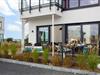En terrasse, der strækker sig vinkelret rundt om lejligheden, giver mulighed for at spise, slappe af eller tilbringe hyggelige timer med at læse udenfor, også med udsigt til naturreservatet.