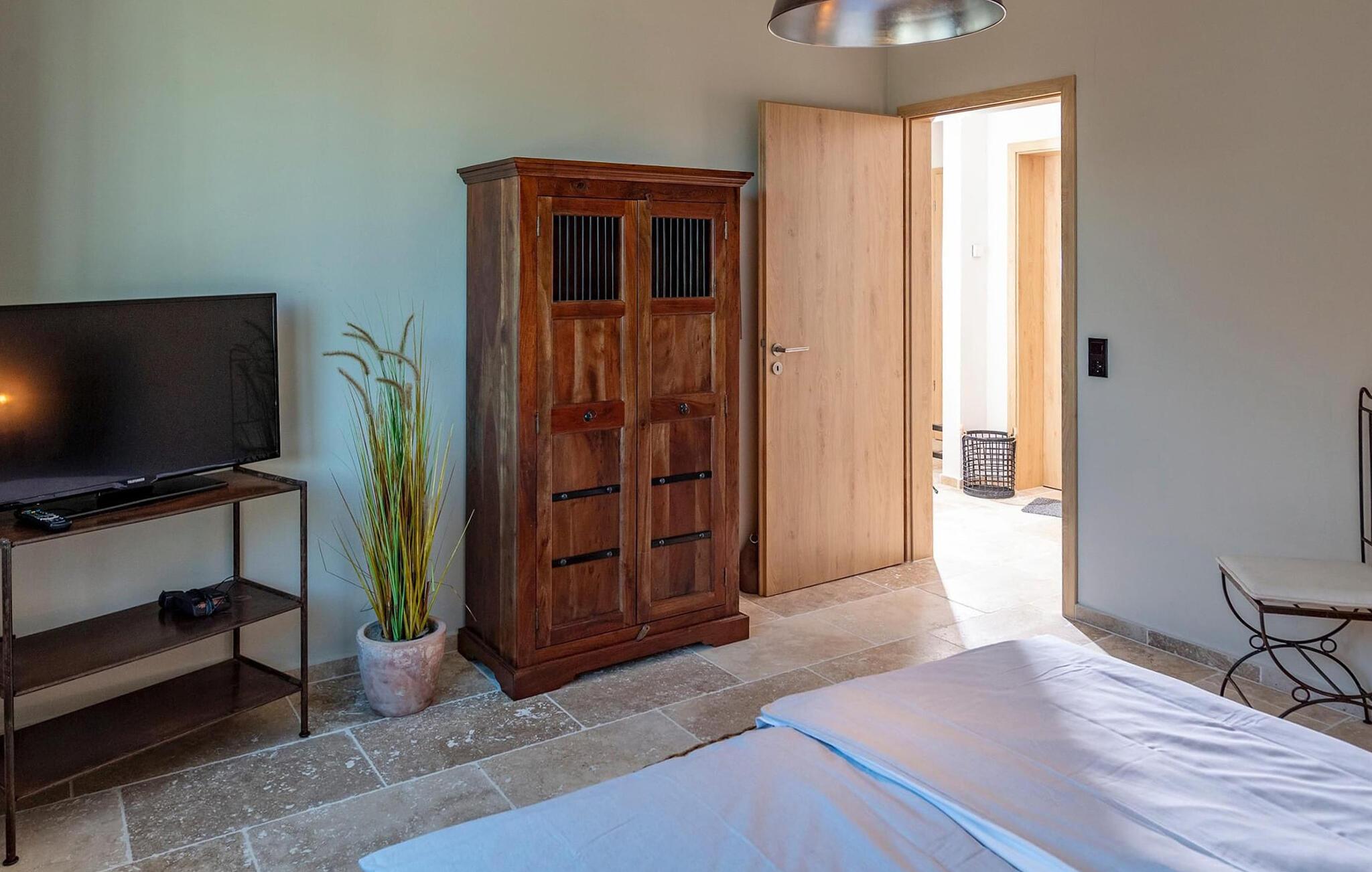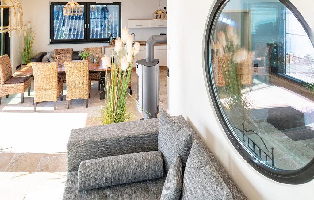 Den unikke arkitektur med imponerende højt til loftet og gulv-til-loft vinduer skaber en uforglemmelig ferieoplevelse, fordi vandet er tæt nok til at røre ved. Den økologiske bygning med kalkpuds sørger for et behageligt indeklima, mens naturstensgulve af let italiensk travertin er jordforbindelse i egentlig forstand. Denne feriebolig er udstyret til en høj standard og har et unikt design med souvenirs fra hele verden. Hvert værelse har også en anden naturlig vægfarve. De helt spejlede vinduer skaber maksimal privatliv.