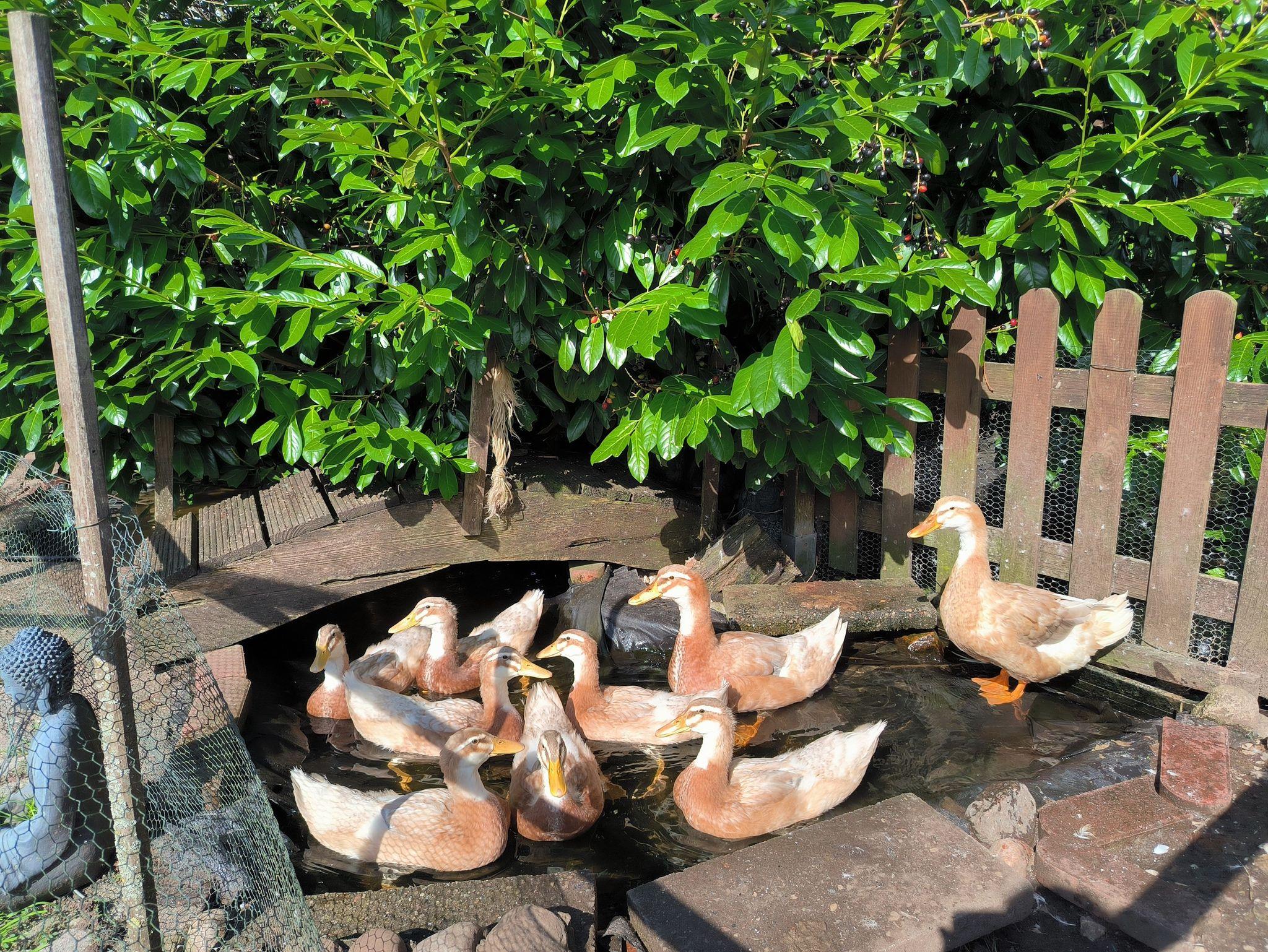 Die Ferienwohnung Mohnkopf liegt im Nebengebäude eines Einfamilienhauses und ist etwa 35 qm groß. Sie ist vom Innenhof des Gebäudekomplexes begehbar, liegt vollständig ebenerdig und besteht aus einem großen Wohn- und Esszimmer mit Küchenzeile, einem kleinen Schlafzimmer mit französischem Doppelbett (1,40 x 2,00m mit durchgängiger Matratze) und einem Duschbad mit Fenster. Das Ecksofa zum Ausziehen im Wohzimmer bietet für zwei Personen Platz zum Schlafen. Im Innenhof stehen eine teilüberdachte, mit Sonnenschirm sowie Tisch und Stühlen möblierte Terrasse und ein Grill zur Verfügung. An den Innenhof grenzt ein kleiner Garten mit Ententeich.