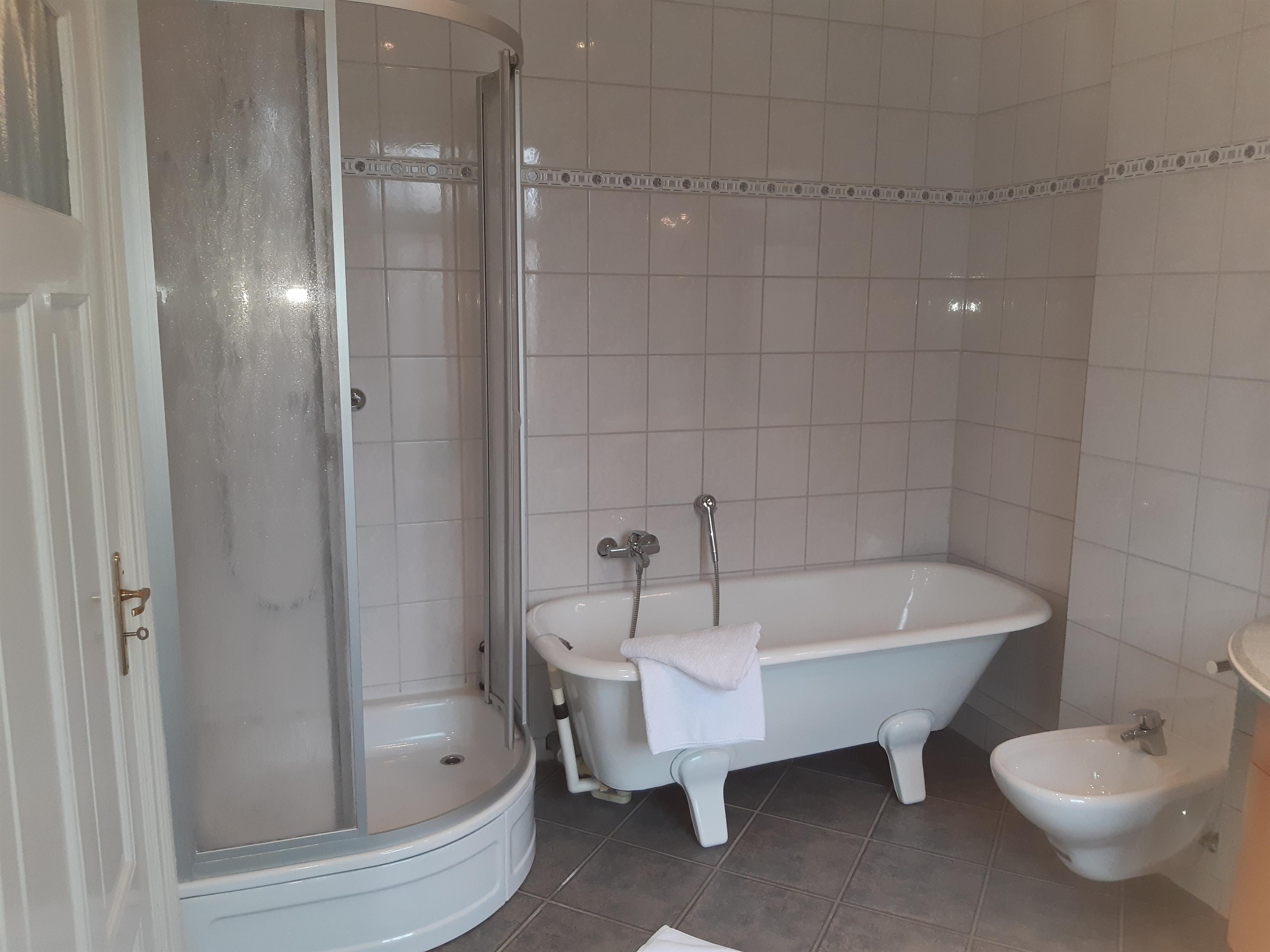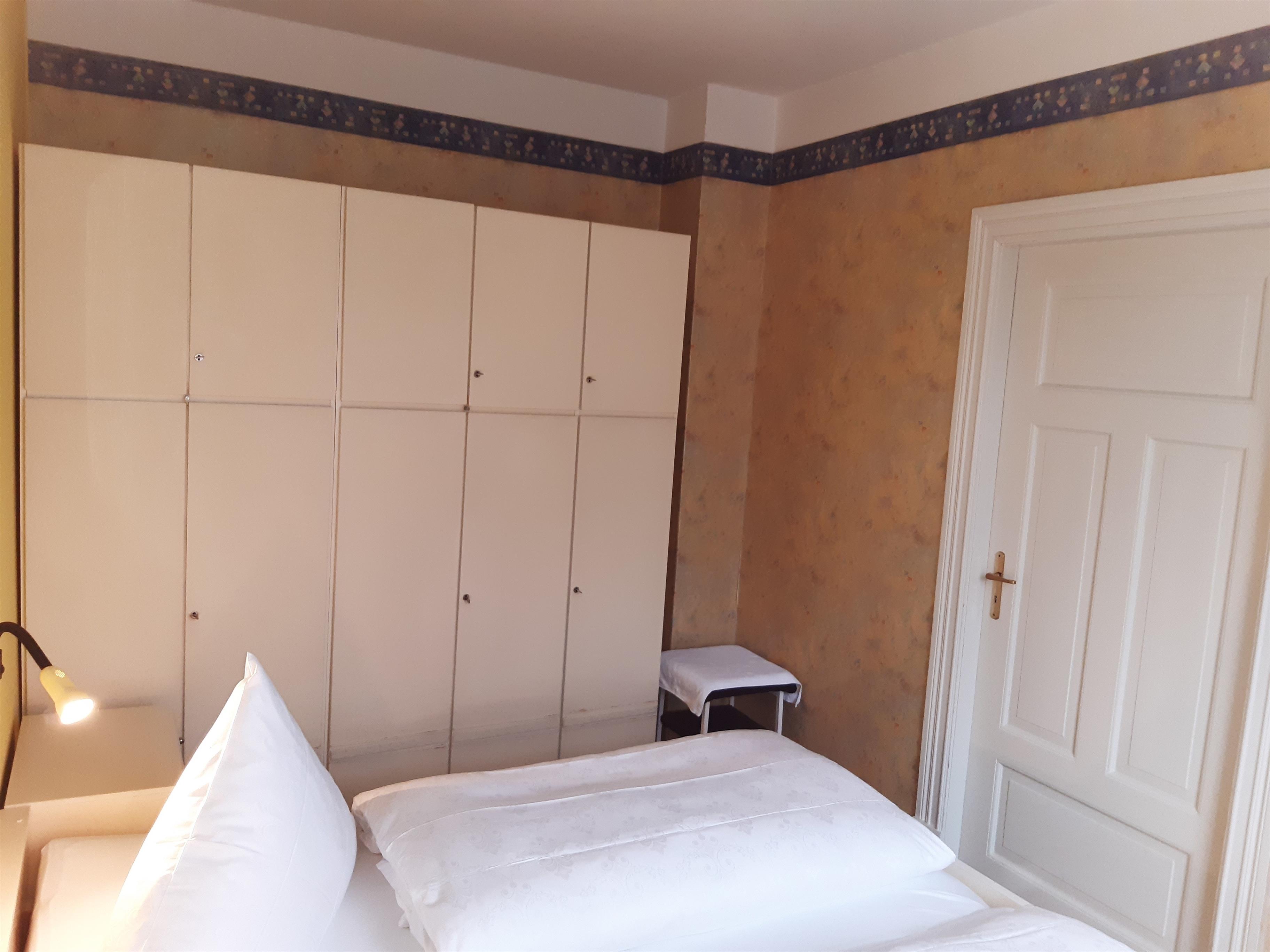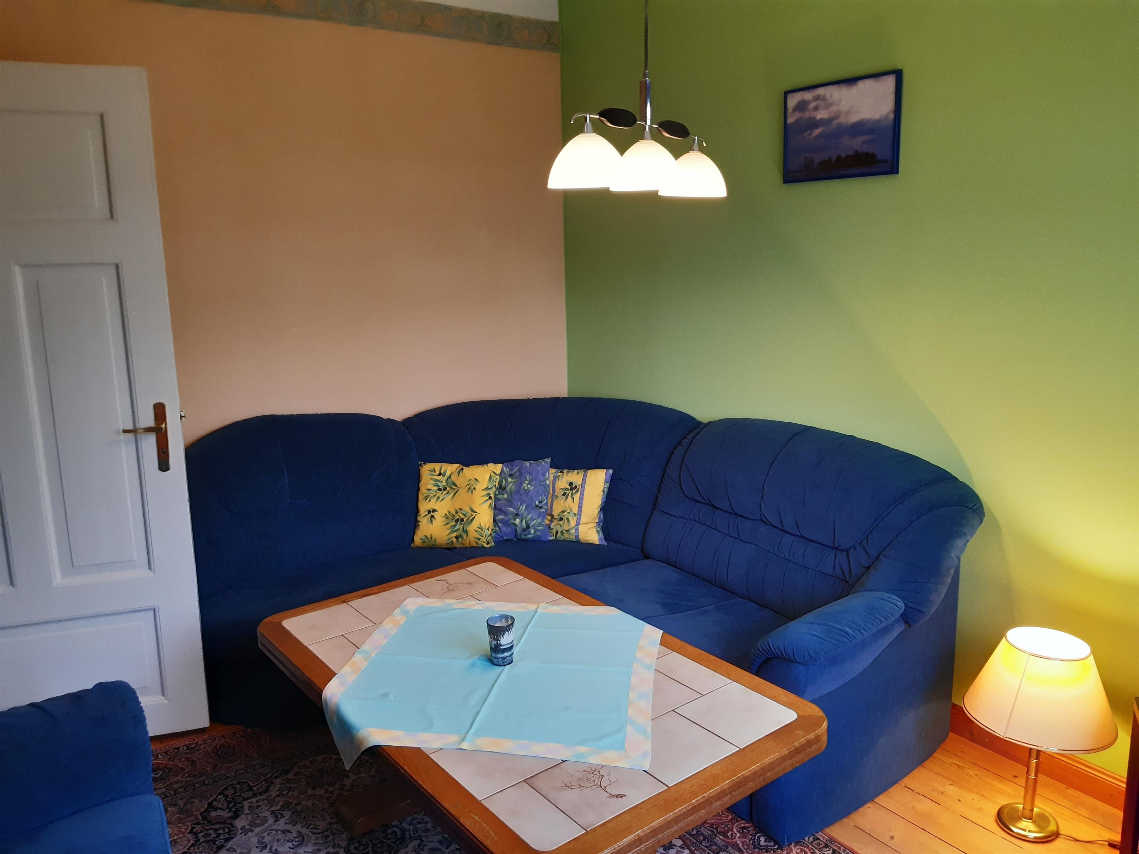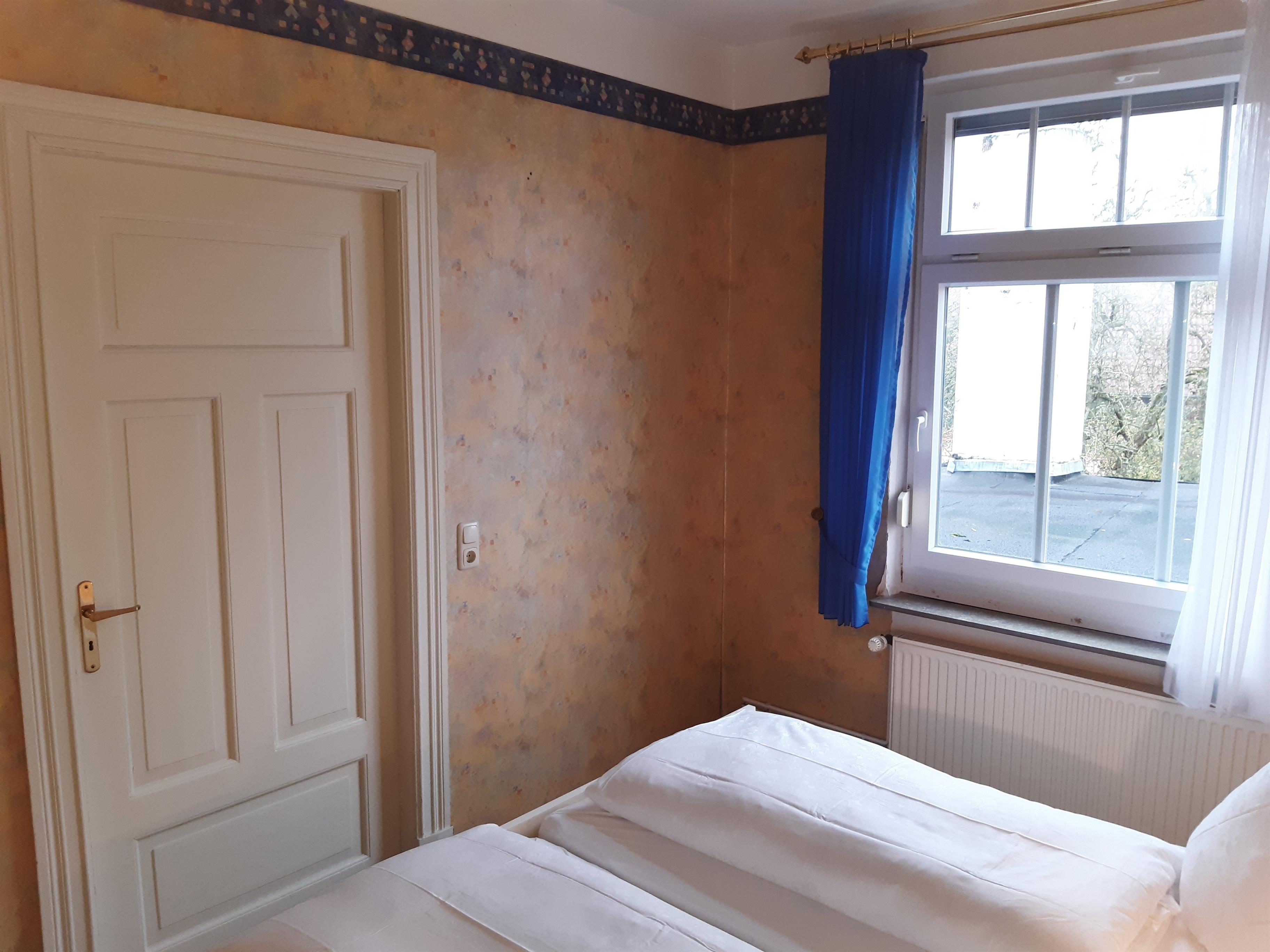 Die Wohnung teilt sich auf in ein Schlafzimmer mit einem Doppelbett, einem zweiten Schlafzimmer mit 2 Einzelbetten, einem Wohnzimmer mit SAT-TV, einem großen Bad mit Dusche und Badewanne sowie einer gut ausgestatteten Küche mit Essbereich. Besonderen Charme der alten Stadtvilla strahlen die alten Holzbodendielen aus.