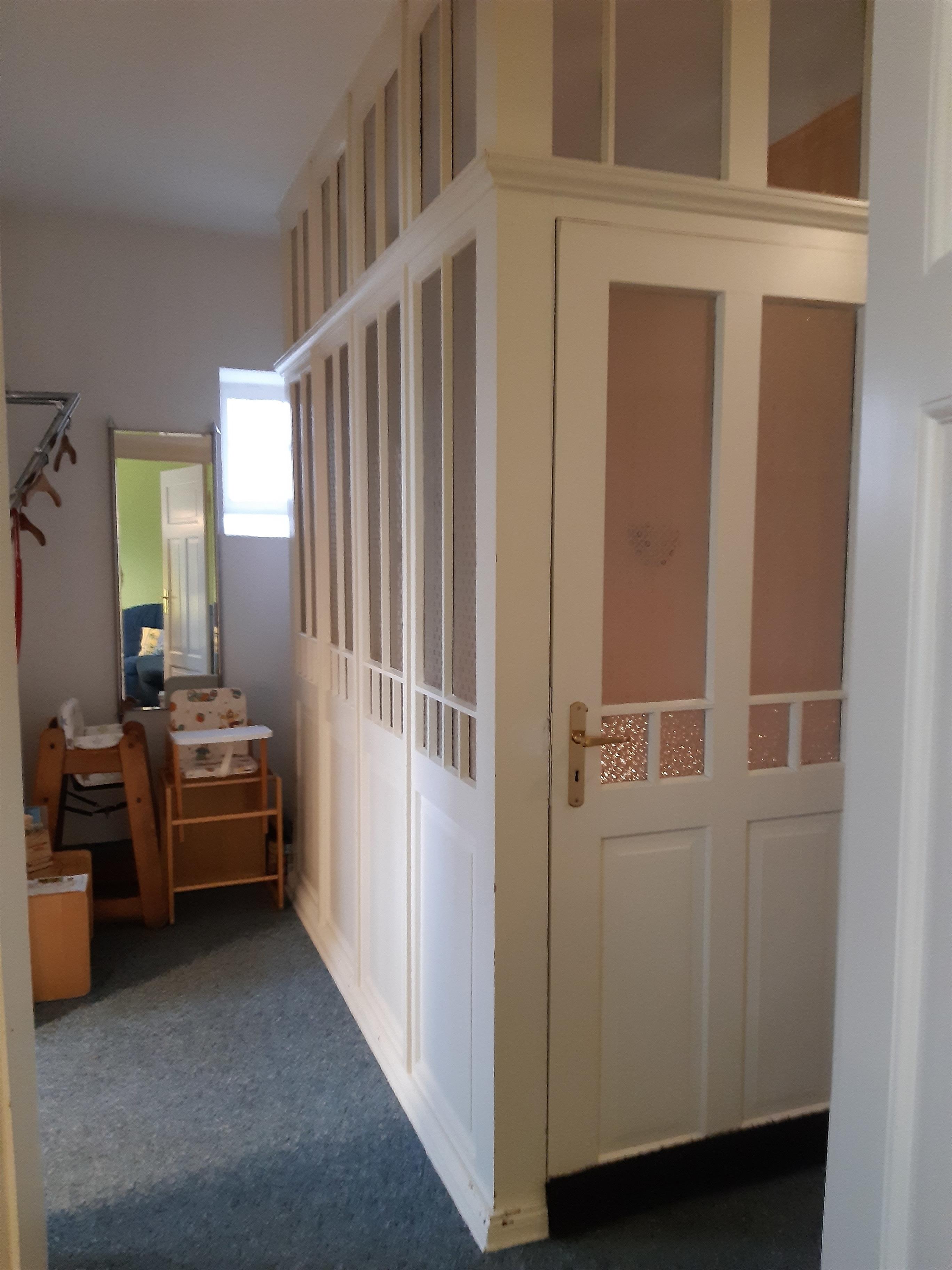 Die Wohnung befindet sich im 1 Stock des Hauses und ist oben mit einer Tür vom Untergeschoss komplett abgetrennt - den Hauseingang teilen Sie sich mit der sehr charmanten Vermieterin, die unten wohnt.