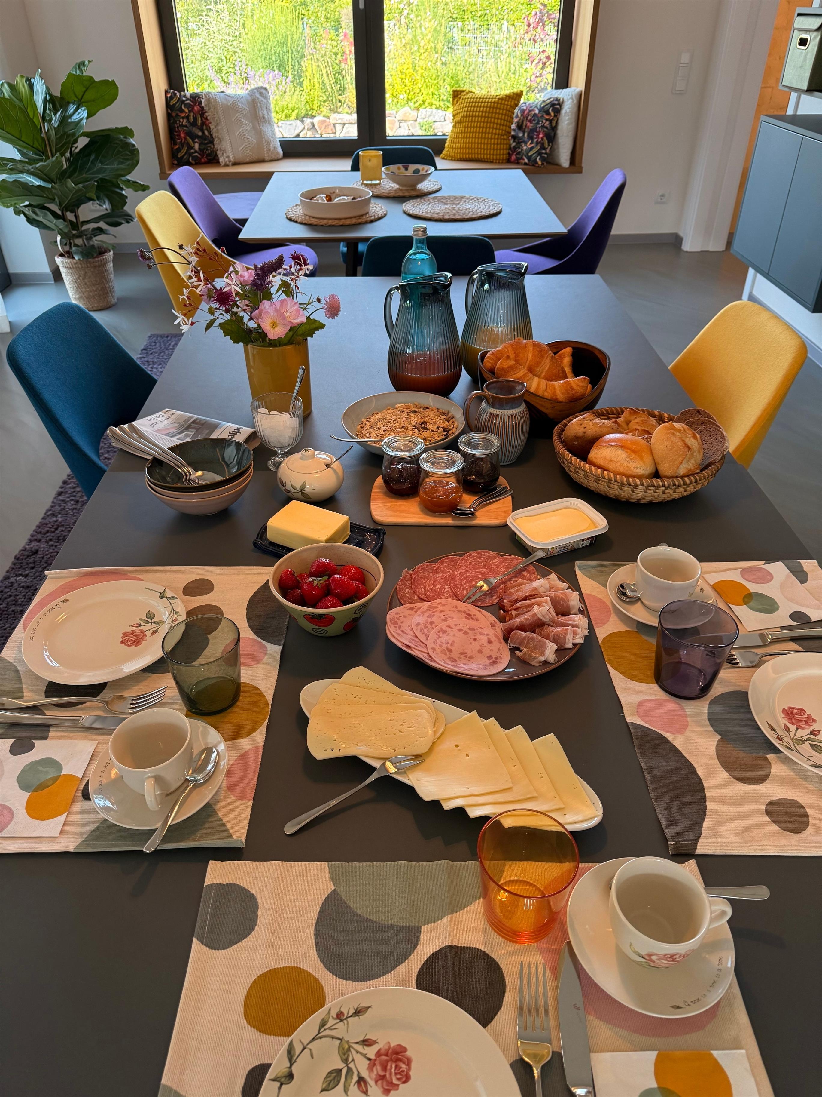Im Frühstücksraum mit der modernen Küche bereiten wir Ihnen auf Wunsch ein gesundes und reichhaltiges Frühstück zu (zzgl. 15 Euro p.P.). Gern nehmen wir Ihre individuellen Frühstücks-Vorlieben auf, um Ihren Start in den Tag so schön wie möglich zu gestalten.