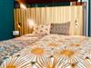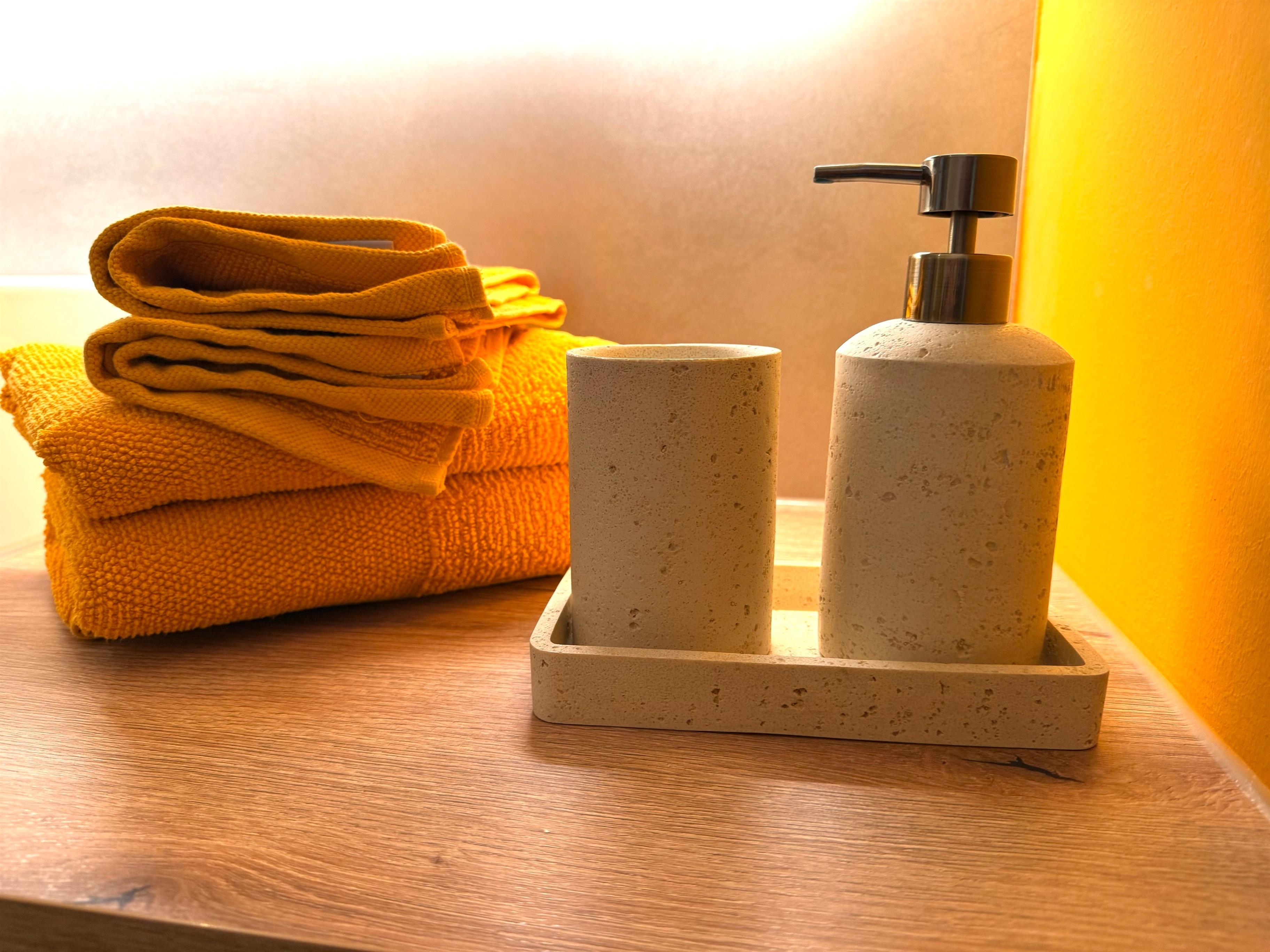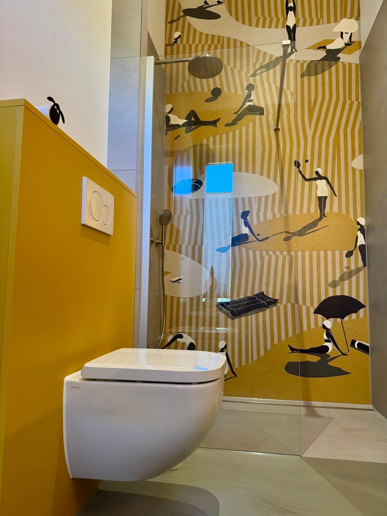 Die Gestaltung des Zimmers spielt eine entscheidende Rolle, um Gästen eine einladende und entspannende Atmosphäre zu bieten. Ein durchdachtes Farbschema aus Holz in leuchtendem Gelb und beruhigendem Petrol schafft ein warmes und einladendes Ambiente. Bequeme Boxspringbetten laden zu erholsamen Nächten ein, während eine stilvolle Sitzecke ideal für das Lieblingsbuch oder eine gesellige Tasse Tee ist.