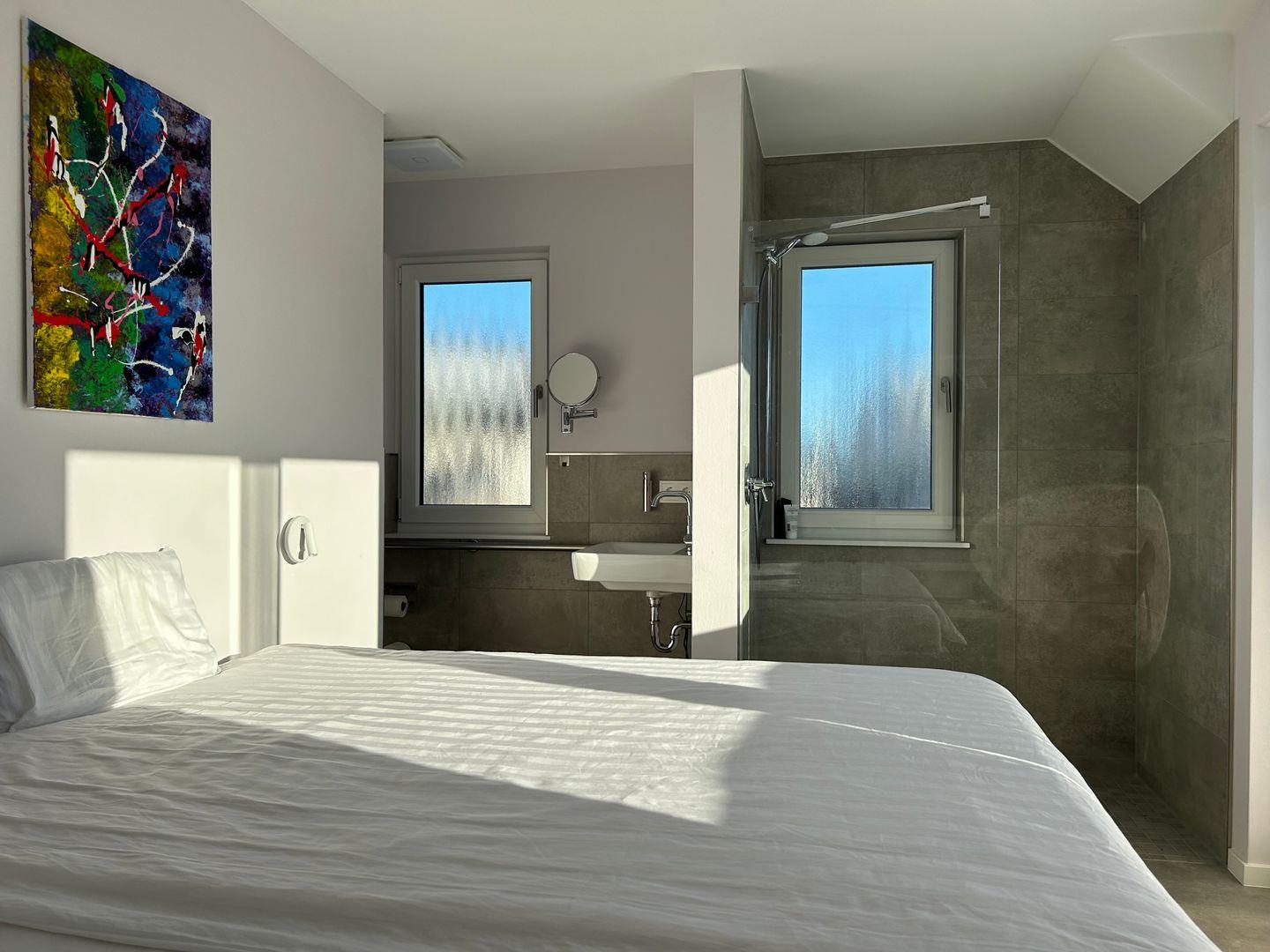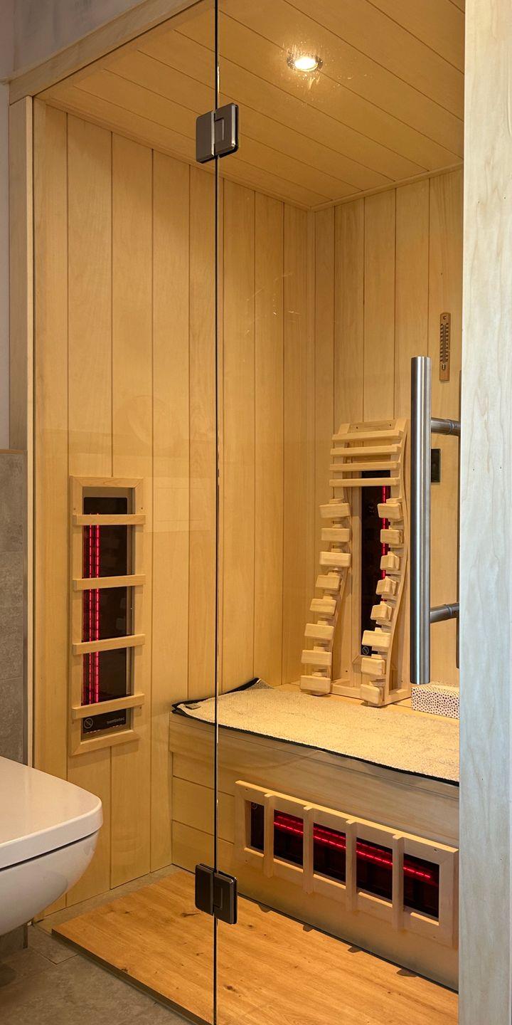 Der in sich abgeschlossene Schlaftrakt beherbergt ein Doppelzimmer mit „en-suite-Bad“ und Zugang zur großen Dachterrasse. Das 2. Schlafzimmer ist ein Einzelzimmer, ebenfalls mit „en-suite- Bad“ und Infrarot-Kabine für 2 Personen. Das 2. Schlafzimmer und Wohnzimmer sind mit Internet-fähigem TV ausgestattet. WLAN und Netflix sind überall kostenlos nutzbar mit Ihrem Account.