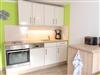Die in den Wohnbereich integrierte Küche ist mit allem notwendigen Geschirr, Besteck, Gläsern und dazugehörigen Elektrogeräten (Kaffeemaschine, Toaster, Wasserkocher) ausgestattet. Sie verfügt über einen Geschirrspüler und Backofen. Eine Waschmaschine gibt es zur Gemeinschaftsnutzung gegen Gebühr. Für den täglichen Gebrauch haben wir zur Erstausstattung in jedem Haus, zwei Toilettenpapier, in der Küche zwei Mülltüten, zwei Tabs, Fit und Spüllappen.