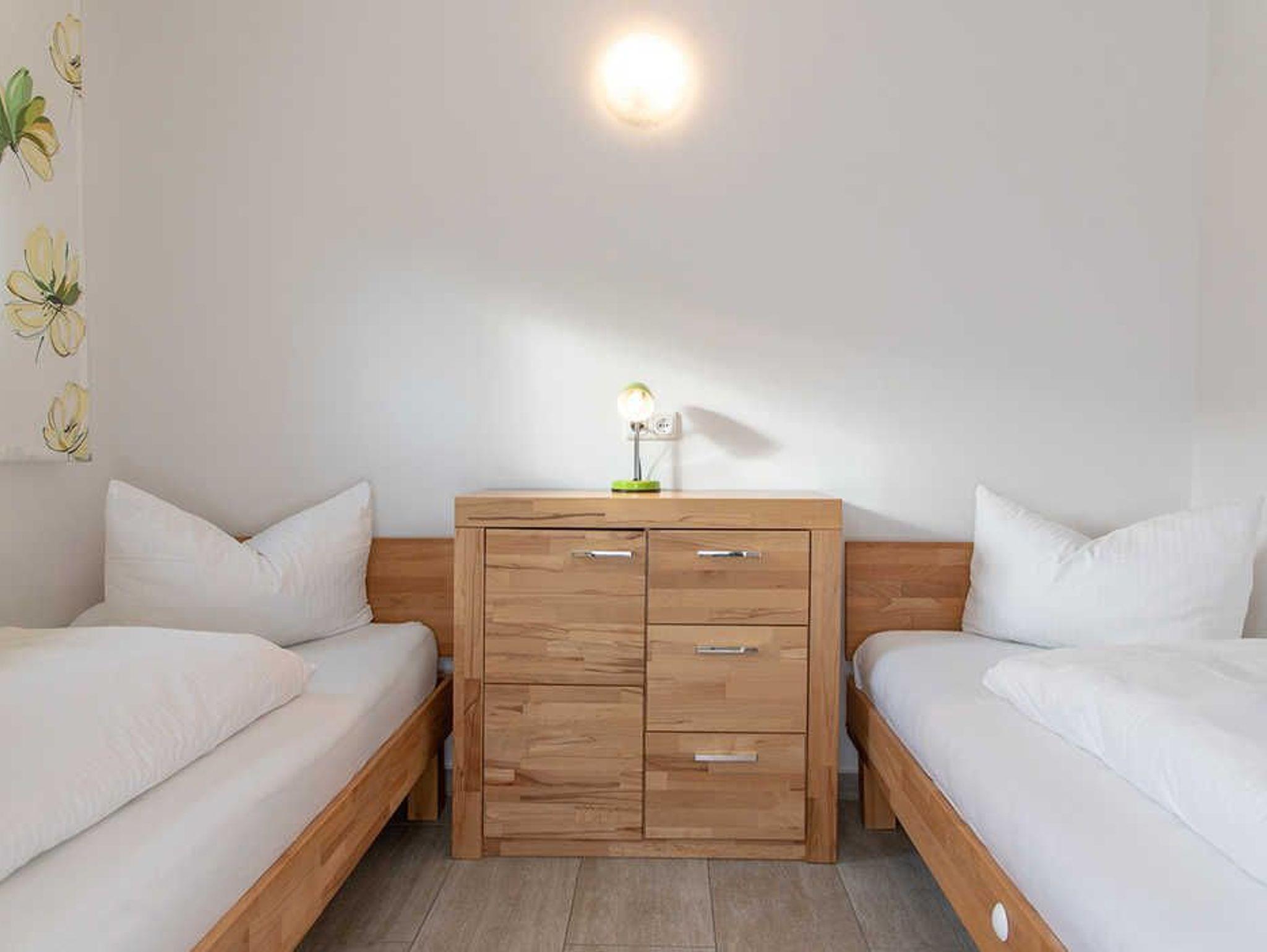 Das Elternschlafzimmer bietet dir ein 140x200 cm großen Bett und einen geräumigen Kleiderschrank (150 cm) für deine Urlaubsgarderobe. Wir möchten darauf hinweisen, dass das Bett, Wand an Wand steht und daher das einsteigen für manch einen schwierig werden könnte. Für Kinder stehen in einem weiteren Zimmer zwei Betten 90x200 cm und eine Kommode (90 cm) bereit. Die Betten sind für dich bezogen.