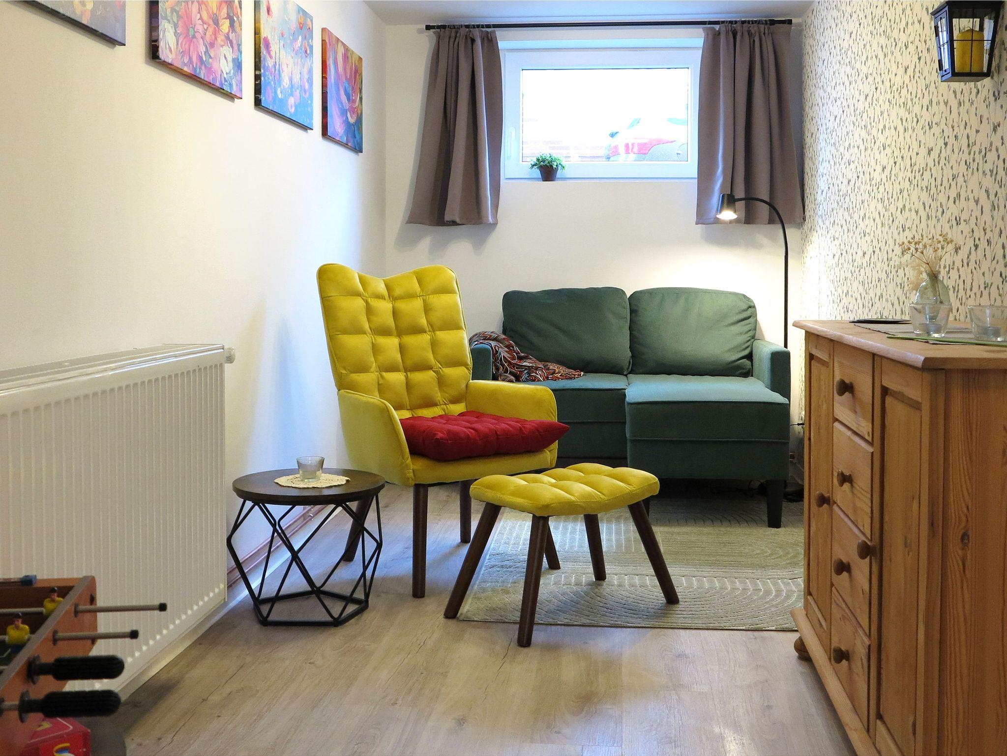 Wir raten auch an, Hausschuhe mitzubringen. Der Fußboden ist in der ganzen Wohnung mit einem modernen unempfindlichen Boden ausgelegt, und vor den Betten haben wir jeweils einen warmen Teppich platziert - aber es bleibt ein Keller/Souterrain. Für den Notfall haben wir allerdings auch Hausschuhe vor Ort.