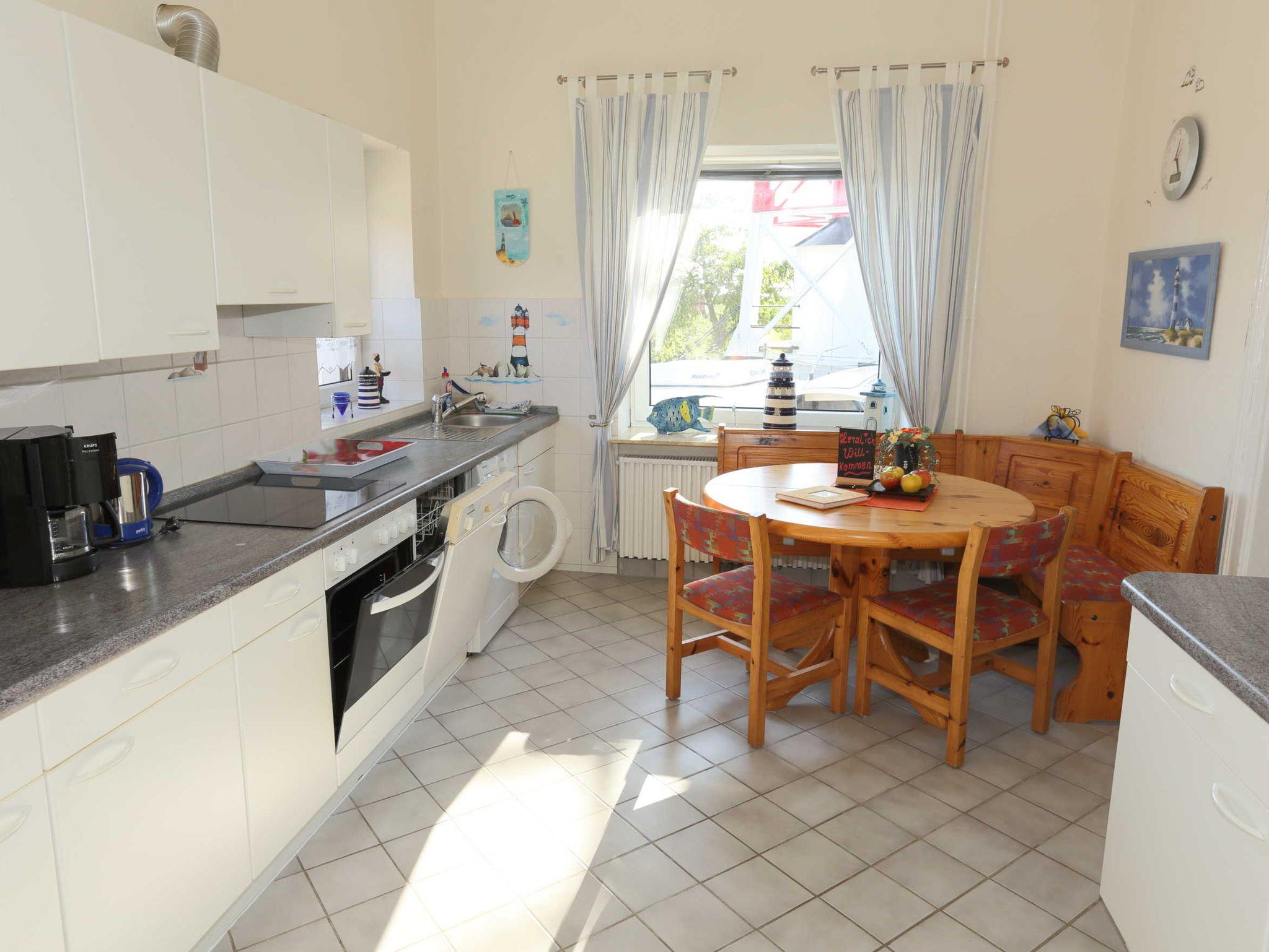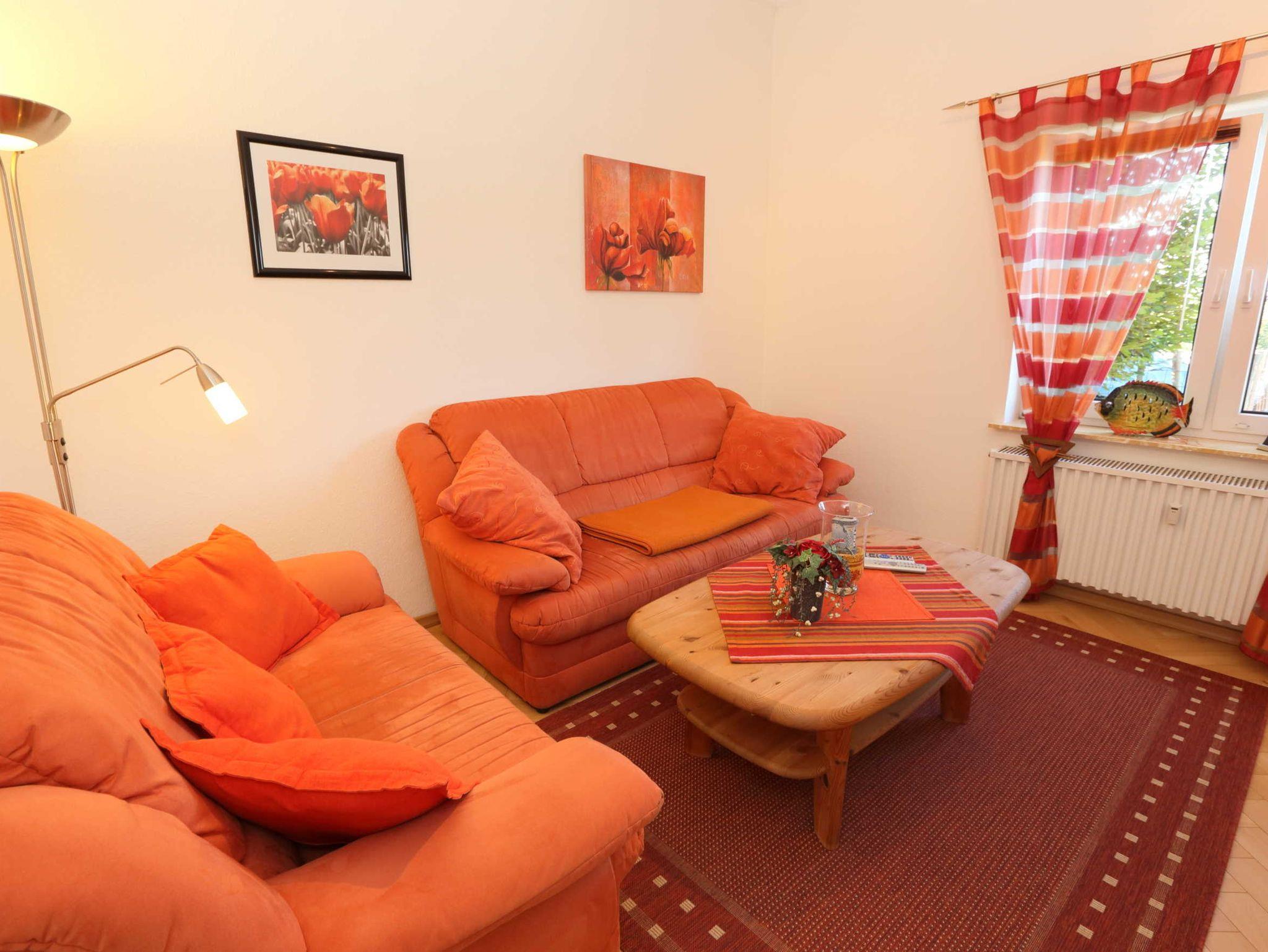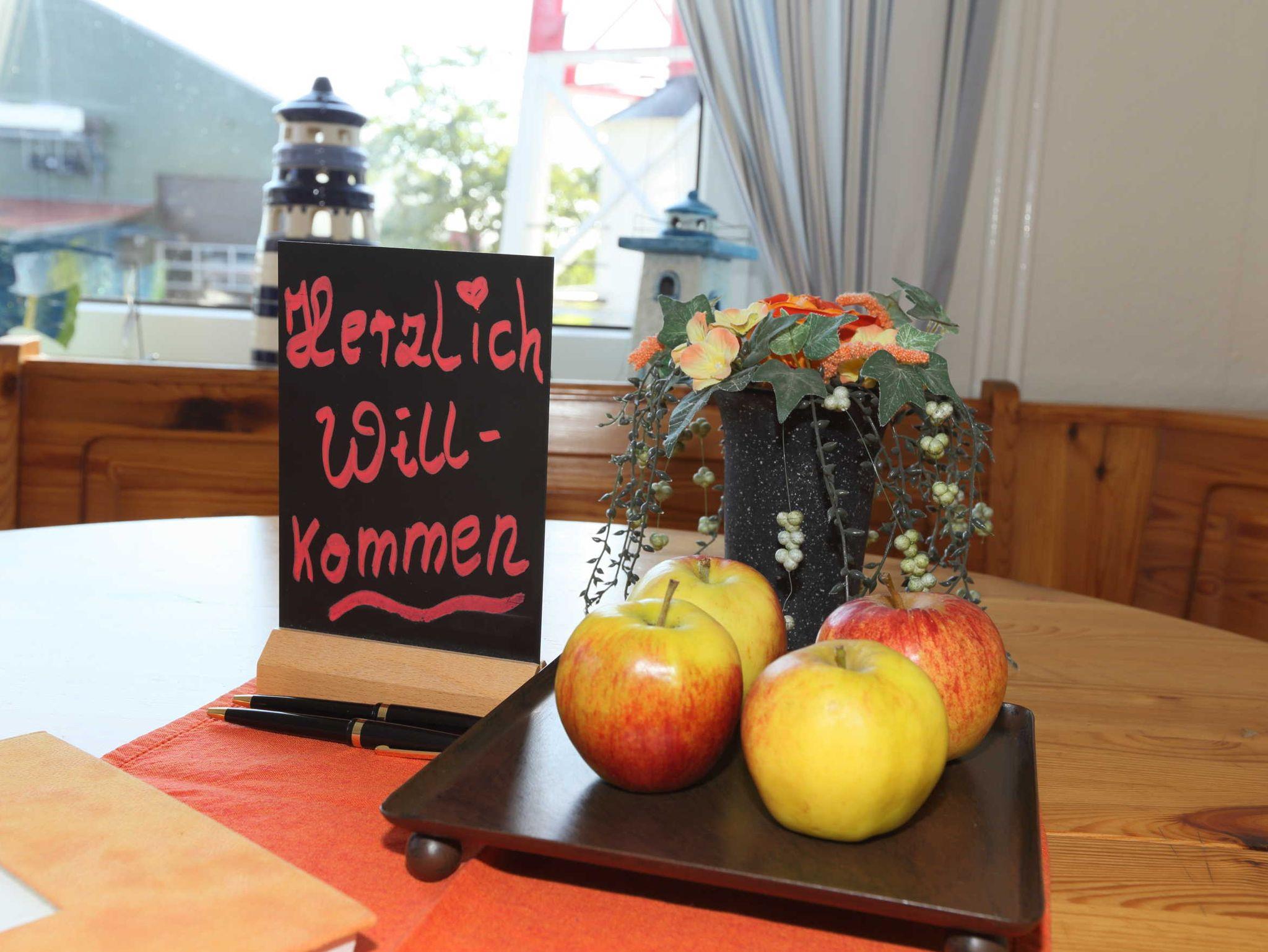 Für 2 Personen ab 18 Jahren Wohnzimmer mit Ecksofa und Schlafcouch, Fernseher (Kabel-/SAT-TV) Schlafzimmer mit Doppelbett (2 m x 2 m) Kleiderschrank und Spiegel Badewanne, Dusche, WC, Fön, Schminkspiegel, Separates Gäste WC Kochplatten mit Ceranfeld, Backofen, Toaster, Mikrowelle, Wasserkocher, Radio, Kühlschrank mit Gefrierfach, Kaffeemaschine, Geschirrspüler, Waschmaschine Internetzugang über Wlan inclusive Bettwäsche und Handtücher inklusive Frische Frühstücksbrötchen nach Absprache. Nichtraucher Ferienwohnung, Haustiere nicht erlaubt, Parkplatz am Haus für Auto und Fahrradanhänger, Kostenlose Nutzung: abschließbarer Fahrradschuppen, Terrasse mit Terrassenmöbeln für 2 Personen, inklusive Sonnenschirm.