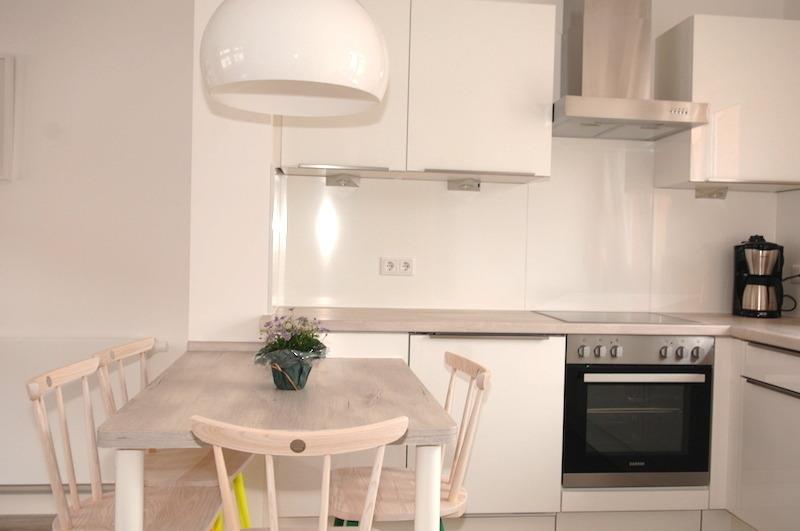 2-Zimmer Ferienwohnung mit Schlafzimmer (Doppelbett) und Wohnküche (Schlafsofa für 2 Personen) mit komplett eingerichteter Küche und Esstisch, großer Balkon, Flatscreen LCD TV, Bad mit Fenster (Dusche und WC), WLan.