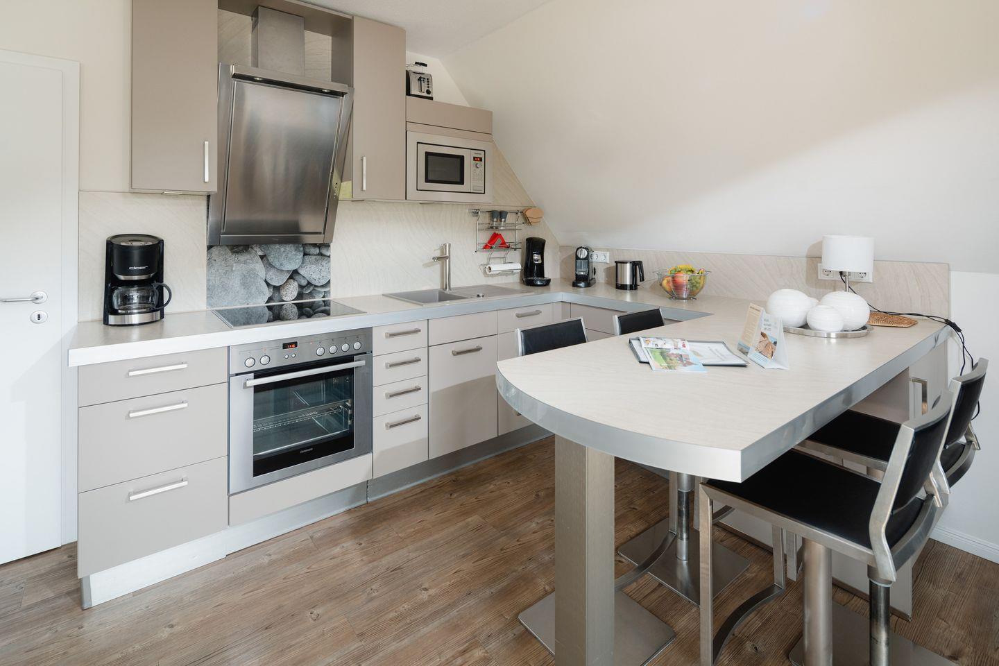 Die Luxus-Suite auf Juist bietet modernen Komfort auf 48 m² im 3. Stock mit Aufzugzugang. Ein Schlafzimmer, ein stilvoller Wohn-Essbereich mit offener Küche, zwei TVs und Balkon mit Gartenblick sorgen für Wohlfühlatmosphäre. WLAN, Geschirrspüler, Waschmaschine, Kinder- und Baby-Ausstattung sowie die zentrale Lage nahe Strand, Restaurants und Einkaufsmöglichkeiten machen die Suite ideal für Familien und anspruchsvolle Gäste.