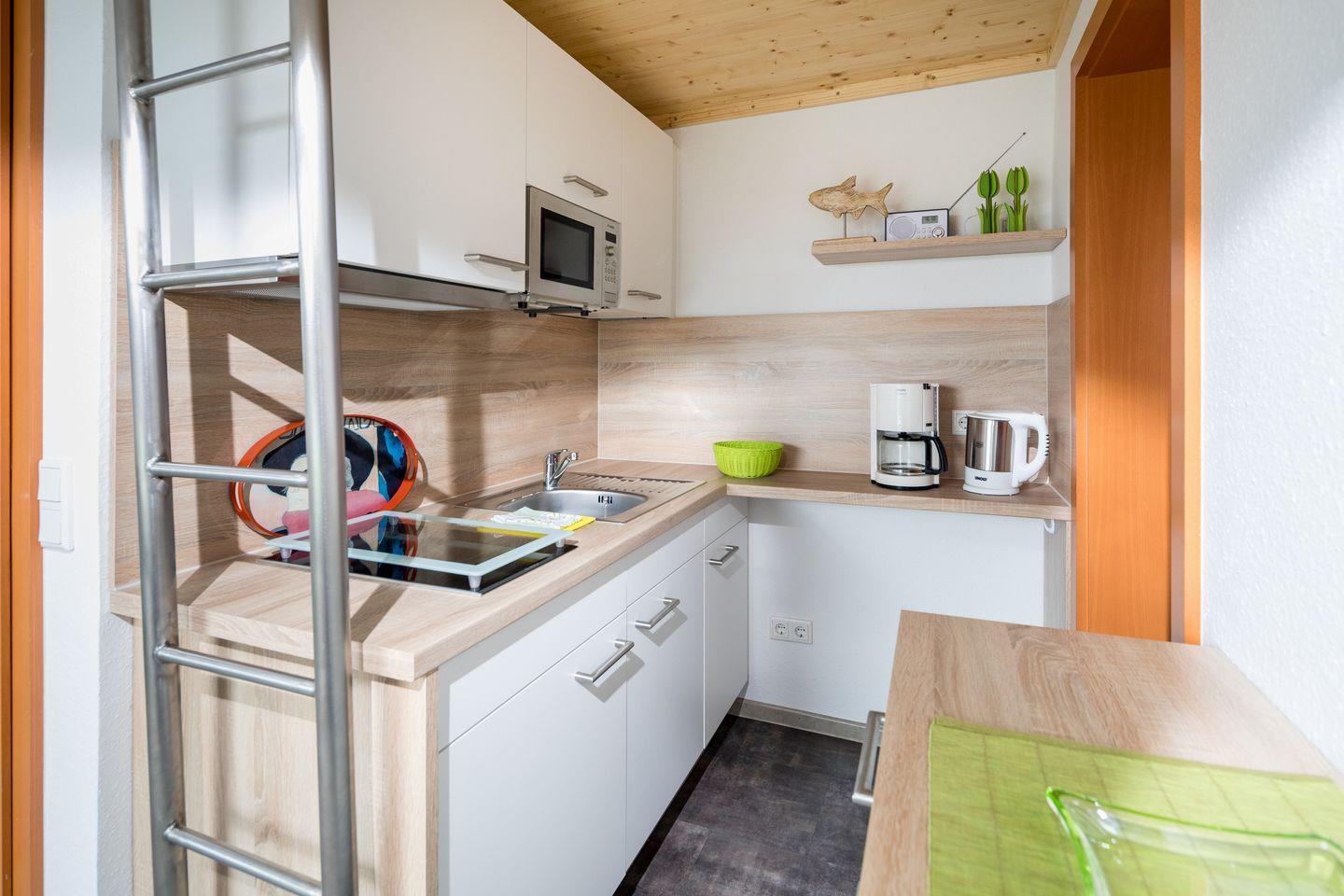 Die gut ausgestattete Kochnische lässt keine Wünsche offen! Hier können Sie selbst Ihre Lieblingsgerichte zubereiten. Ausgestattet mit einem 2-Platten Herd, einer Mikrowelle, einem Kühlschrank mit Gefrierfach, einer Kaffeemaschine und weiteren nützlichen Küchenutensilien ist das Kochen ein Vergnügen. Zudem genießen Sie den herrlichen Meerblick direkt von der Wohnung aus, was die Zeit am Frühstückstisch besonders macht.