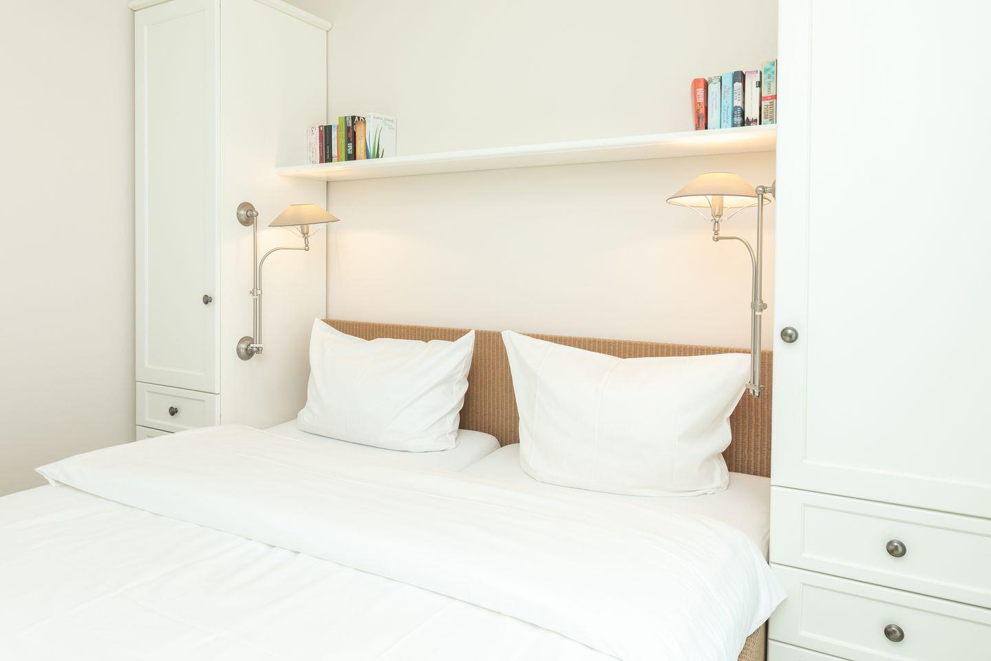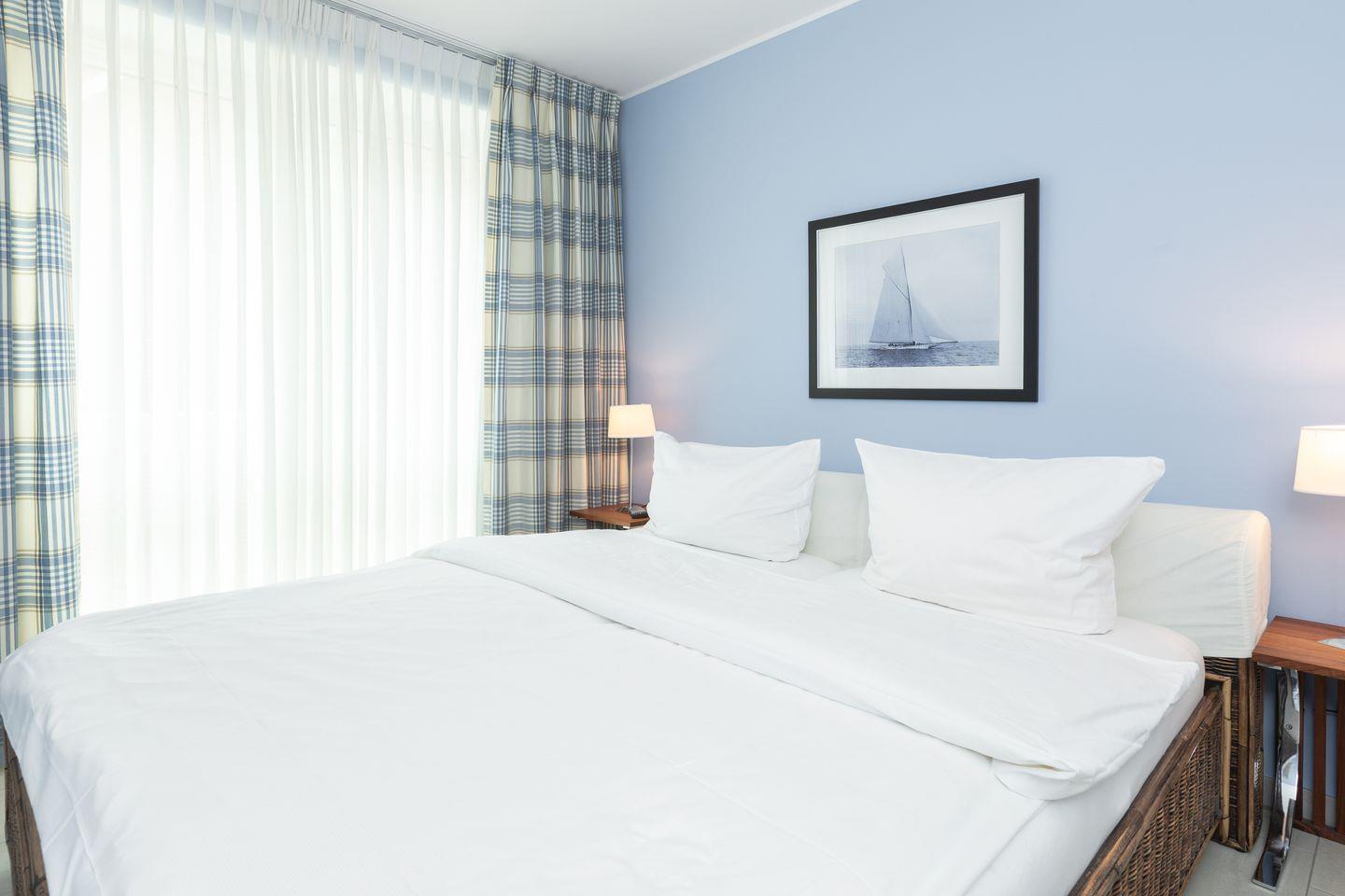 Zur Ausstattung der Ferienwohnung gehören 2 Schlafzimmer, eine Küchenzeile mit modernen Geräten, ein Bad mit großzügiger Dusche und Doppelwaschbecken.