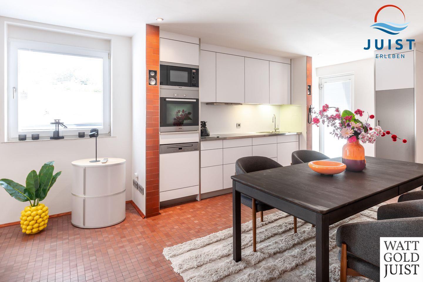 Diese erfüllt mit Geschirrspüler, Nespresso- und Filterkaffeemaschine, Backofen, Mikrowelle und einer vollumfänglichen Ausstattung höchste Ansprüche.
