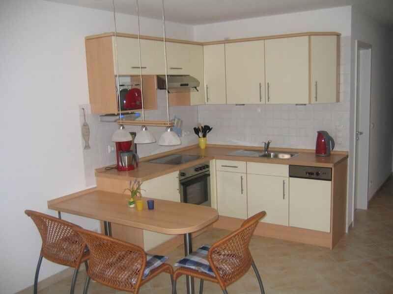 Das Appartement ist modern und komfortabel eingerichtet. Es verfügt über ein separates Schlafzimmer mit Doppelbett sowie einen offenen Wohn- und Essbereich mit Küche – bestens ausgestattet für unbeschwerte Urlaubstage. Aufzug und eigener Parkplatz am Haus sorgen für eine entspannten Aufenthalt.
