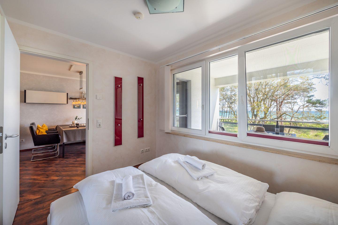 Erholen Sie sich vor fabelhafter Kulisse in der Ferienwohnung „Meeresstimmung“. Nur wenige Meter von einem der schönsten Strände Rügens entfernt, erwartet Sie hier eine komfortable Unterkunft für zwei Personen und ein Kleinkind. Das Rauschen der Ostsee wird Sie die Strapazen des Alltags vergessen lassen. Der möblierte Balkon mit herrlichem Meerblick lädt zum Entspannen und Verweilen ein und die komplett ausgestattete Küche bietet alle Möglichkeiten für kreative Kochabende. Ein eigener PKW-Stellplatz sowie der abschließbare Fahrradraum bieten Ihnen die nötige Flexibilität, um Ihren Urlaub ganz nach Ihren Vorstellungen zu gestalten.