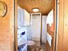 Stueetage: (Køkken(brødrister, komfur, kaffemaskine, ovn, mikrobølgeovn, køleskab(+ fryser)), Stue/soveværelse(dobbeltsovesofa(180 x 200 cm), Fjernsyn, spisebord(5 personer), sofahjørne, radio, CD-afspiller), badeværelse(bruser, håndvask, toilet, føntørrer), åbent rum(via forholdsvis stejle trapper)(enkeltfoldeseng, king size-seng(180 x 200 cm)), varme, barneseng) terrasse(overdækket), have, havemøbler, grill, parkering, Parasol