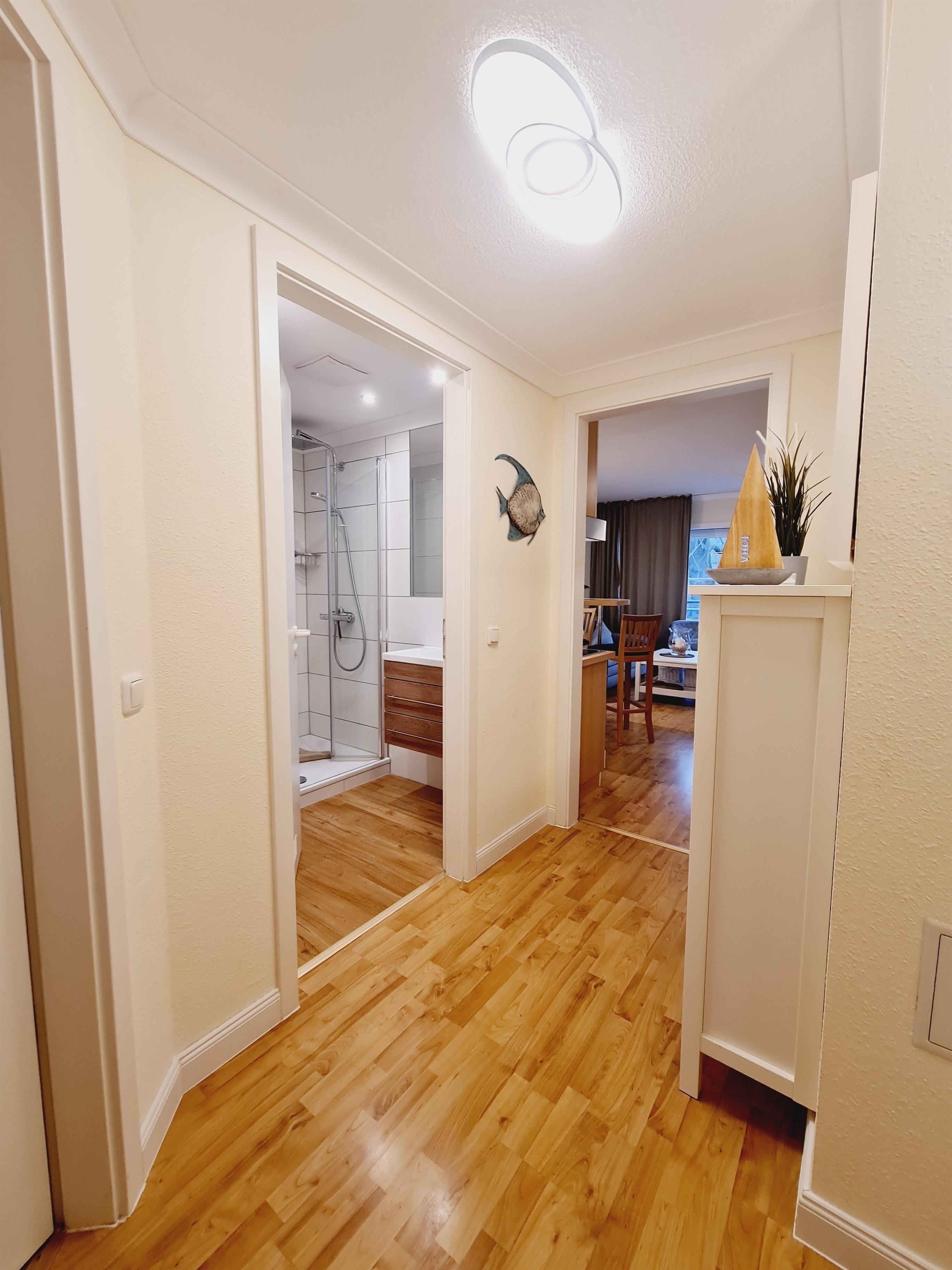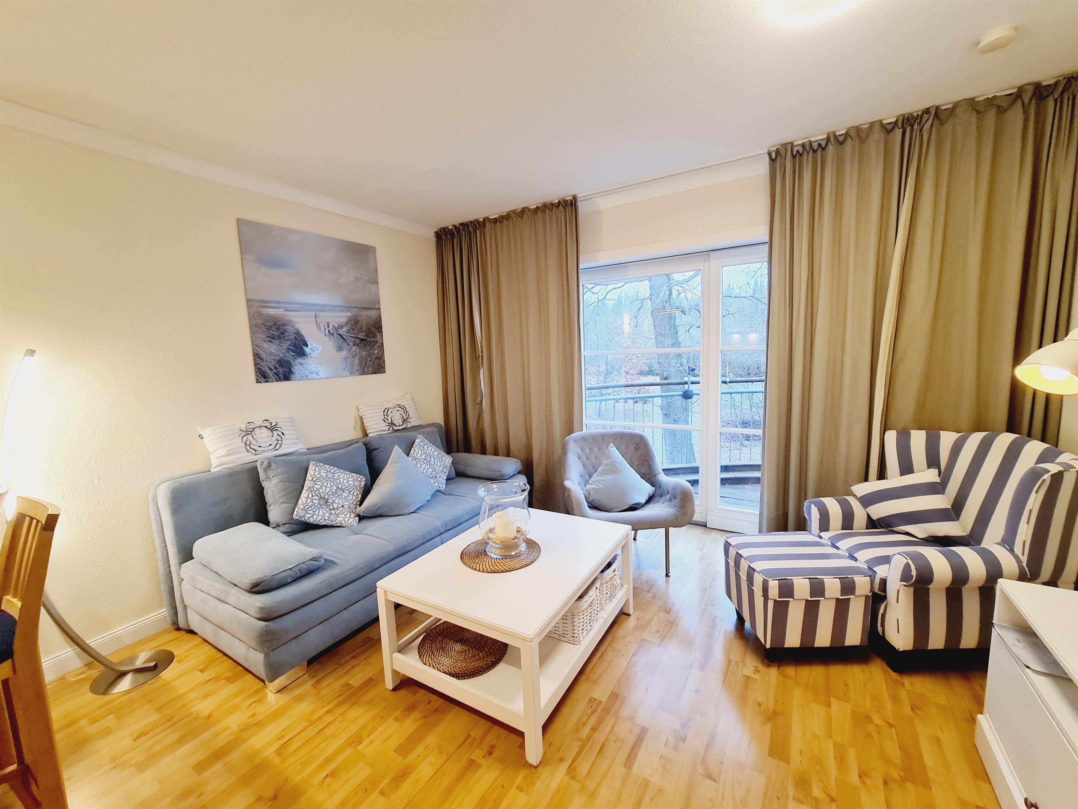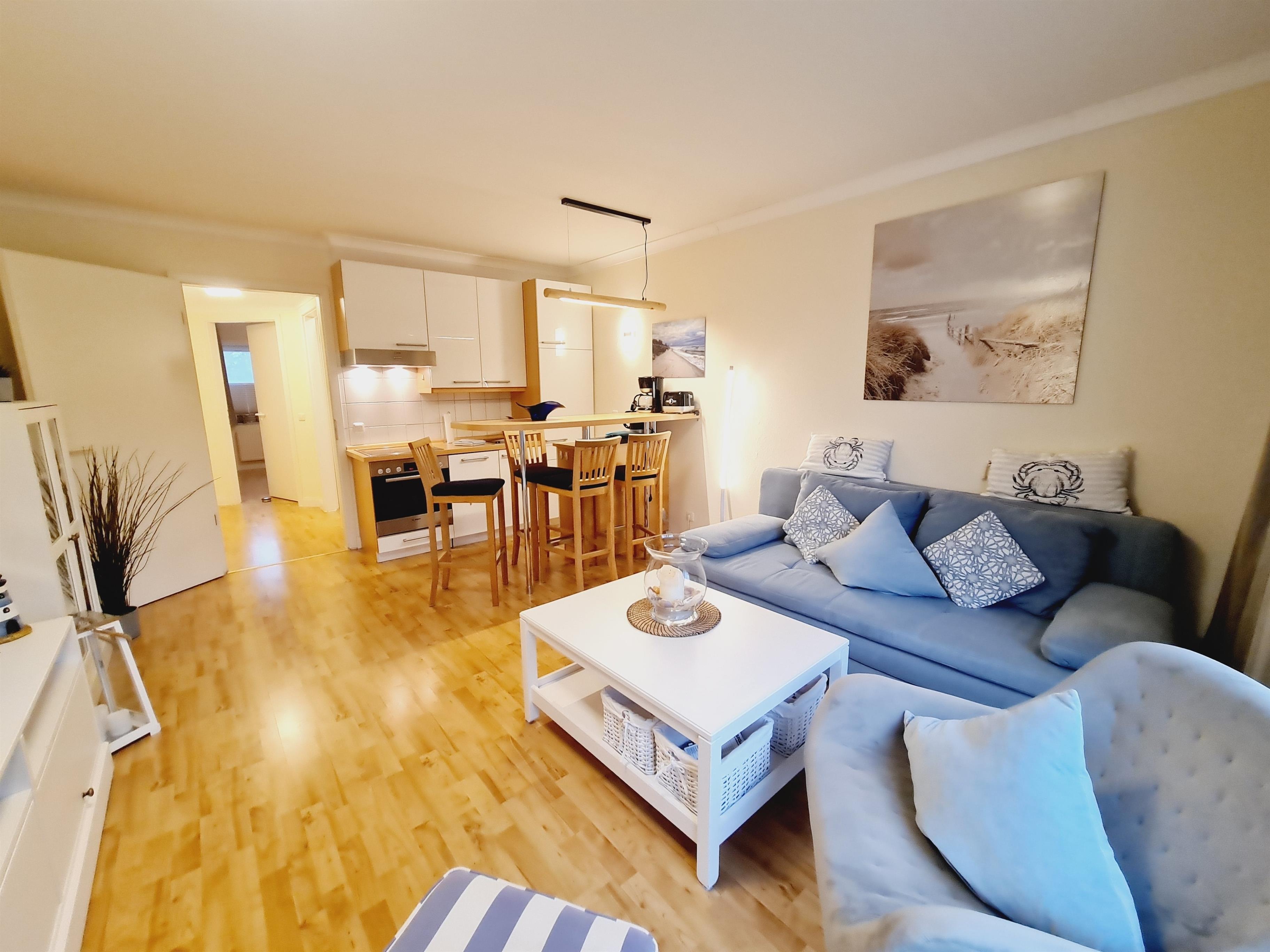 Die ganzjährig nutzbare Ferienwohnung Jara bietet Platz für 2 Erwachsene und 2 Kinder oder bis zu 3 Erwachsene. Die Wohnung ist komfortabel eingerichtet. Die Küche ist mit einem Herd, Ceranfeld, Geschirrspülmaschine, Kühlschrank mit Gefrierfach sowie Tresen modern ausgestattet. Im Wohnzimmer befindet sich ein bequemes Schlafsofa für bis zu zwei Gäste, ein Flachbildschirm und eine Hifi-Anlage. Kostenloses WLAN und ein hauseigener Parkplatz stehen Ihnen ebenfalls zur Verfügung. Der Balkon lädt zum Relaxen ein und gestattet einen Blick auf den ca. 500m entfernten kurtaxfreien Ostseestrand. Ruhe und Erholung sind garantiert.