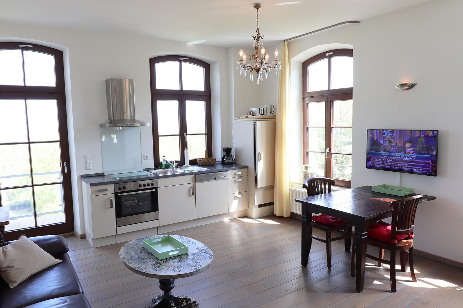 Die moderne 2-Zimmer-Ferienwohnung befindet sich im 1. Obergeschoss des Gutshauses. Sie ist für 2 Personen ausgestattet und ca. 50 m² groß.