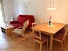 Der Wohnbereich mit HiFi-Anlage und TV-Gerät und DVD-Player bietet eine Sitzgruppe sowie einen Essbereich.