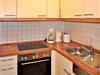 Die moderne Küche ist ausgestattet mit Geschirrspüler, Cerankochfeld und Backofen, Kühlschrank mit Frosterfach, Kaffeemaschine, Toaster und Wasserkocher.