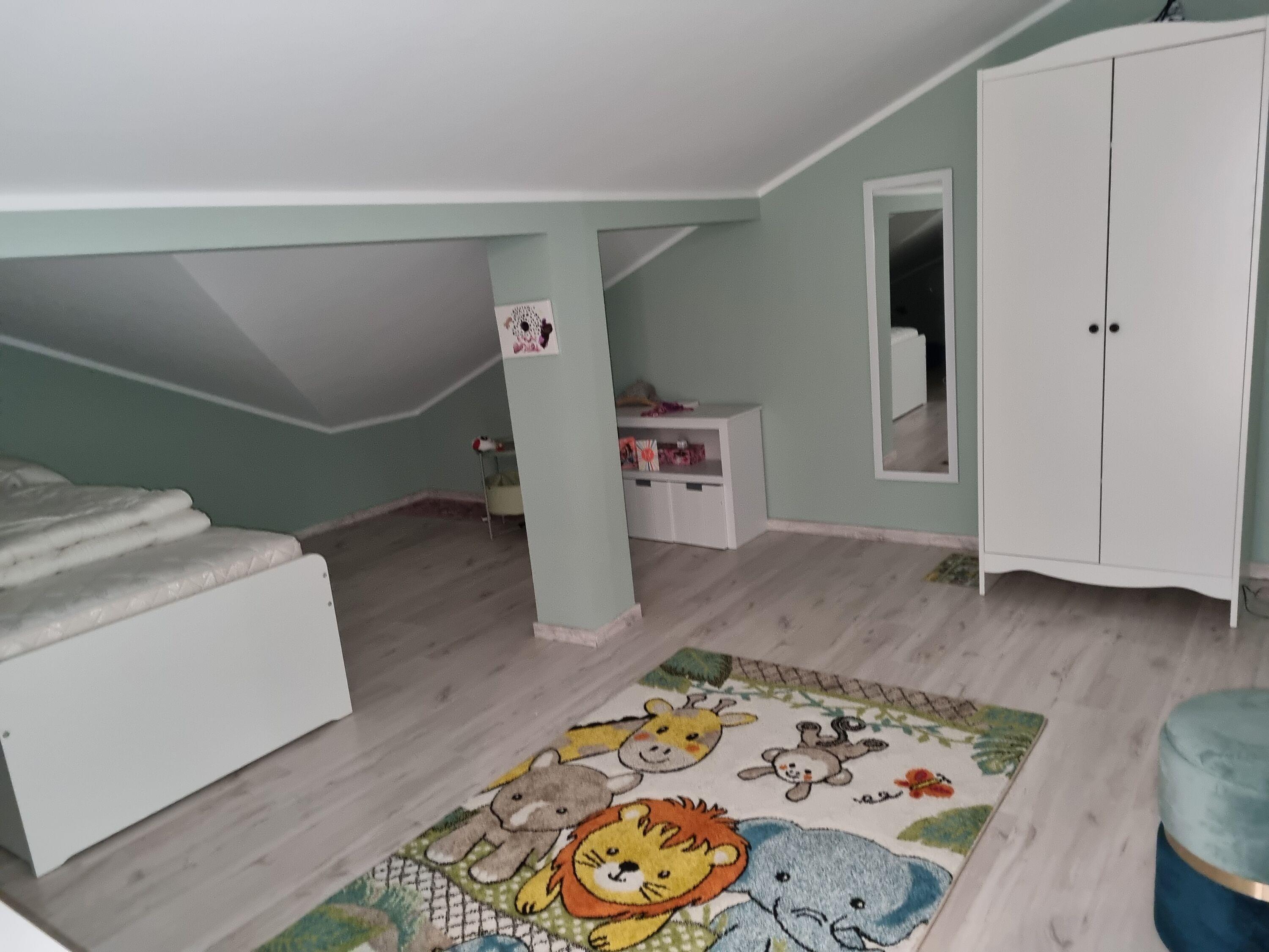 Im Spitzboden gibt es zusätzlich eine weitere Schlafmöglichkeit sowie ein geräumiges Spielzimmer.