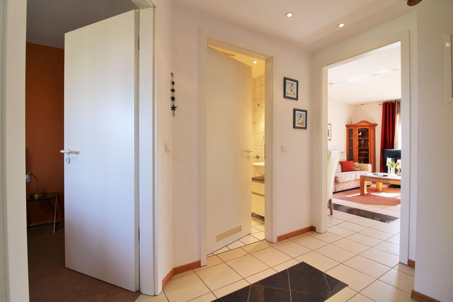 Vom Flur mit Garderobe, Spiegel und Schuhablage erreichen Sie bequem alle Räume Ihrer Ferienwohnung.