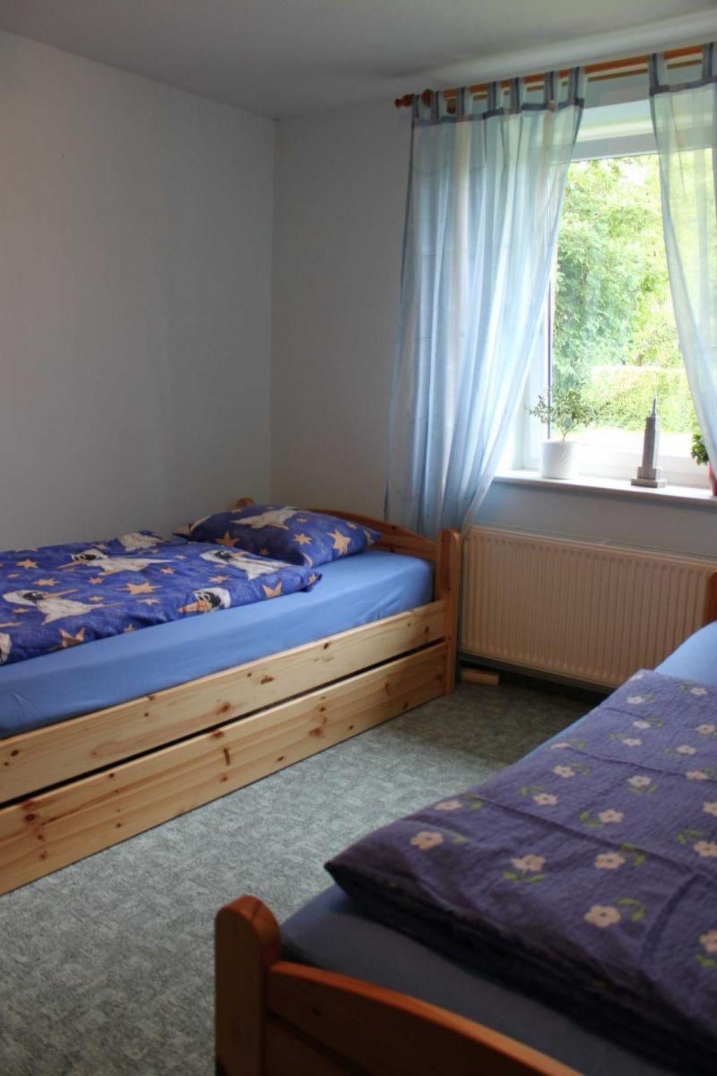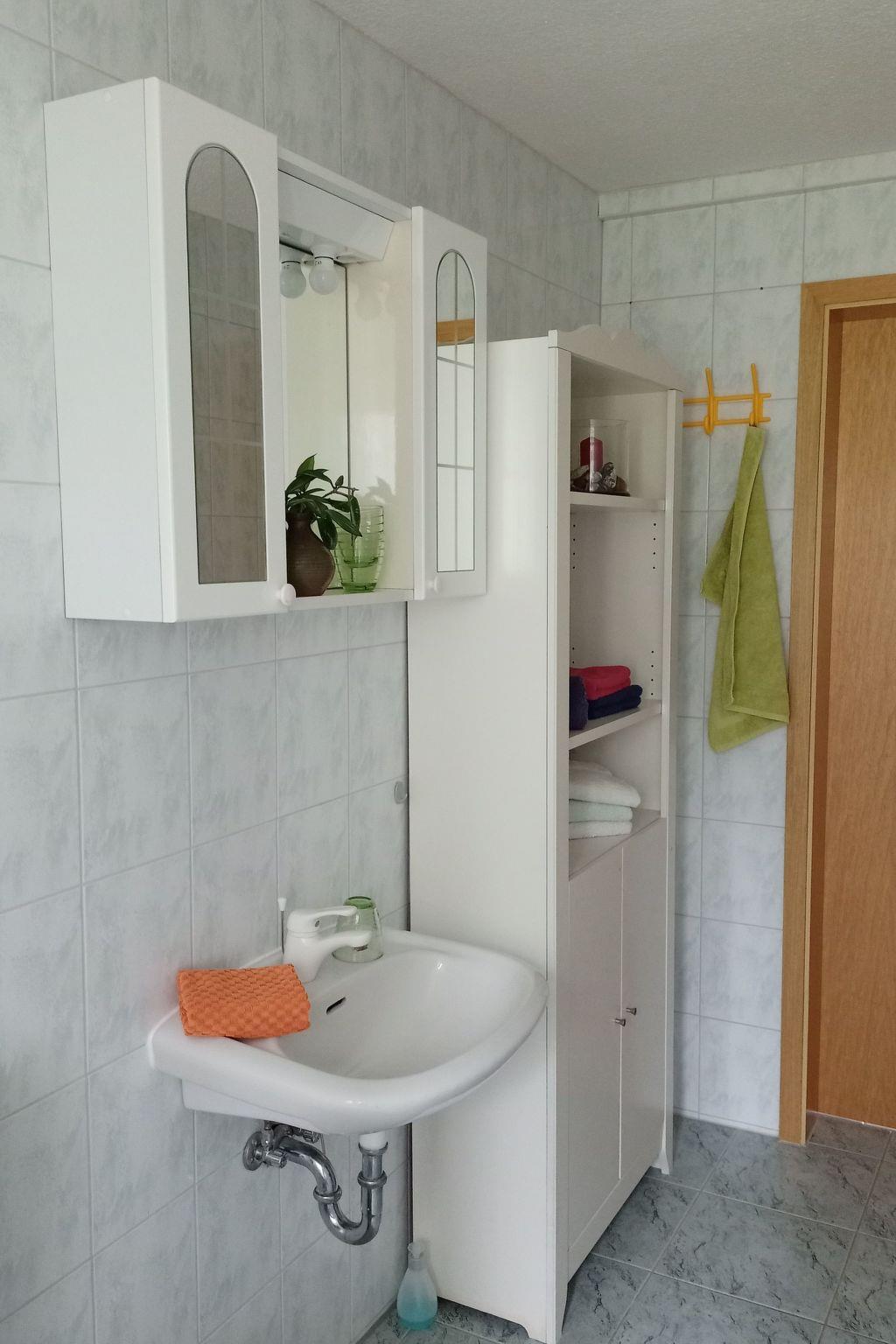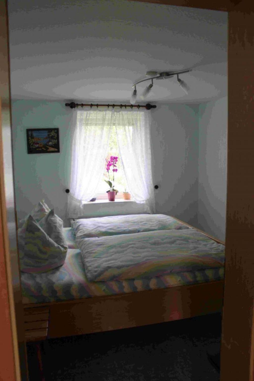The 59m² 3-room ground floor flat with separate entrance offers space for two to four people. A cheerful kitchen is fully equipped for your physical well-being. There is a double bedroom and a room with two single beds. The living room has a cosy dining area with a view of the garden and the meadow beyond. The holiday flat also has a spacious shower room with WC.