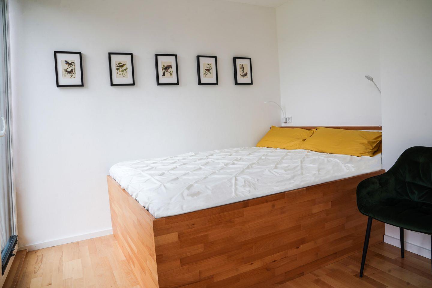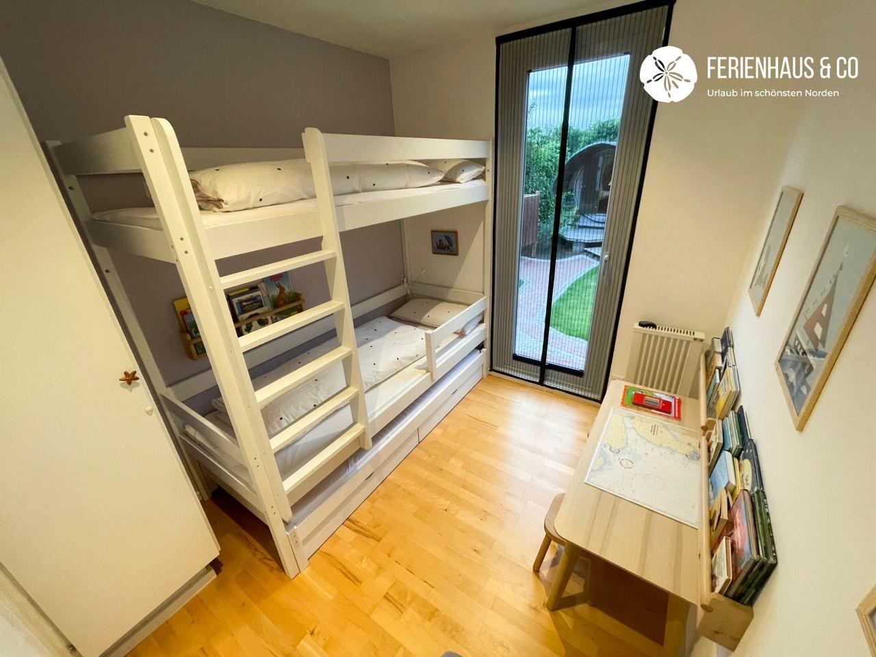 "Sjö Hus" bietet fünf gemütliche Schlafplätze in zwei Schlafzimmern. Ein Schlafzimmer ist mit einem handgefertigten Boxspringbett ausgestattet, während das zweite Zimmer ein Etagenbett und ein kleines Ausziehbett für Kinder bereithält. Von den Schlafzimmern aus genießen Sie einen herrlichen Blick in den liebevoll angelegten Garten. Das gesamte Haus wurde mit Lehmfarben gestrichen und mit Lehm verputzt. Lehmfarbe zeichnet sich durch ihre feuchtigkeitsregulierenden Eigenschaften aus und trägt so maßgeblich zu einem angenehmen Raumklima bei.