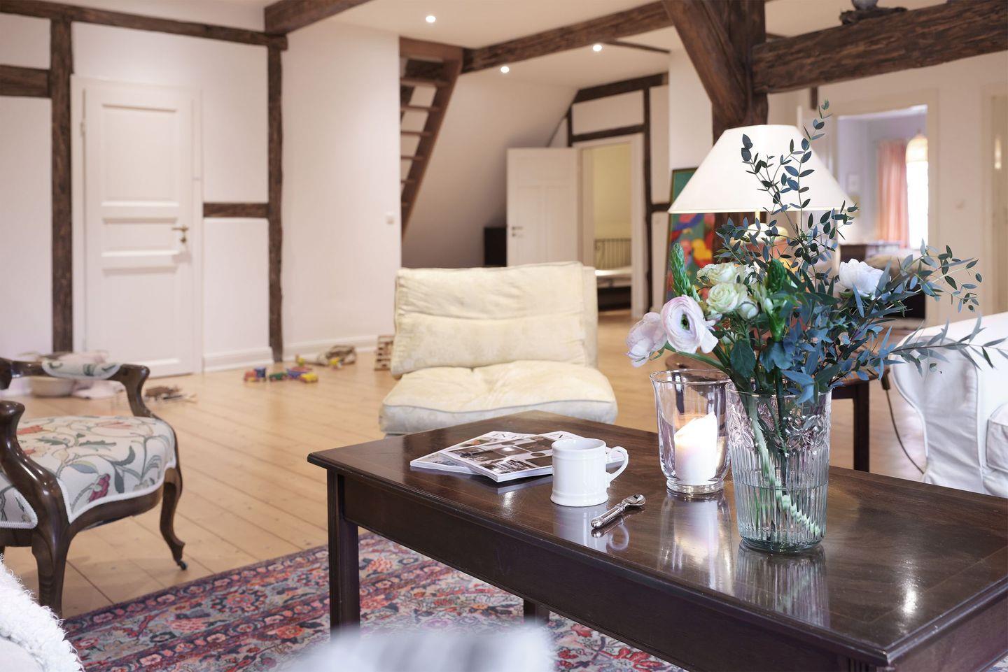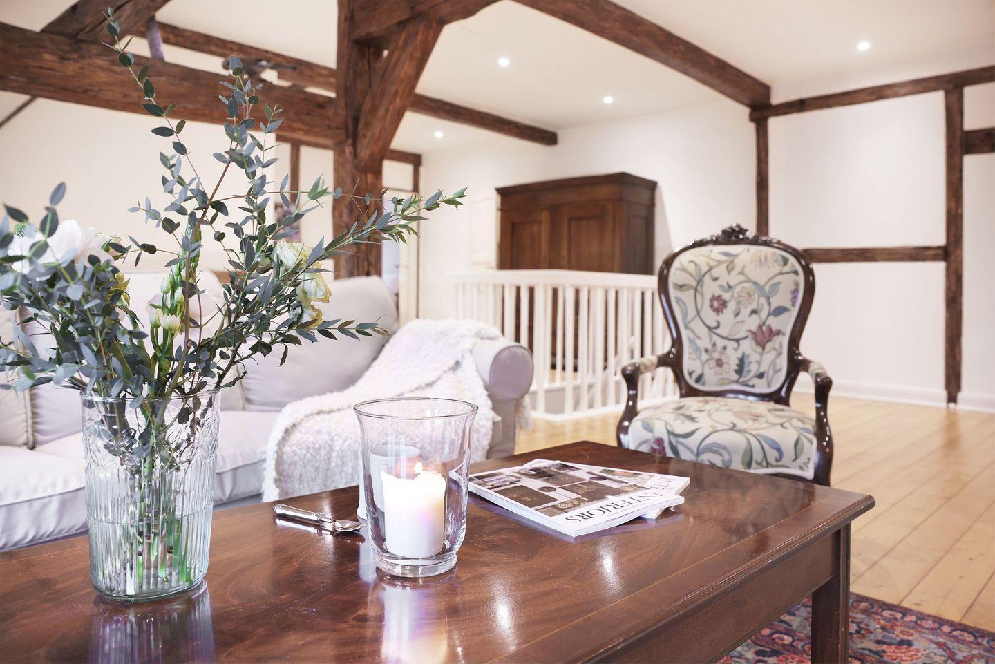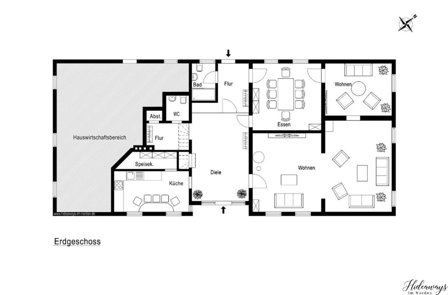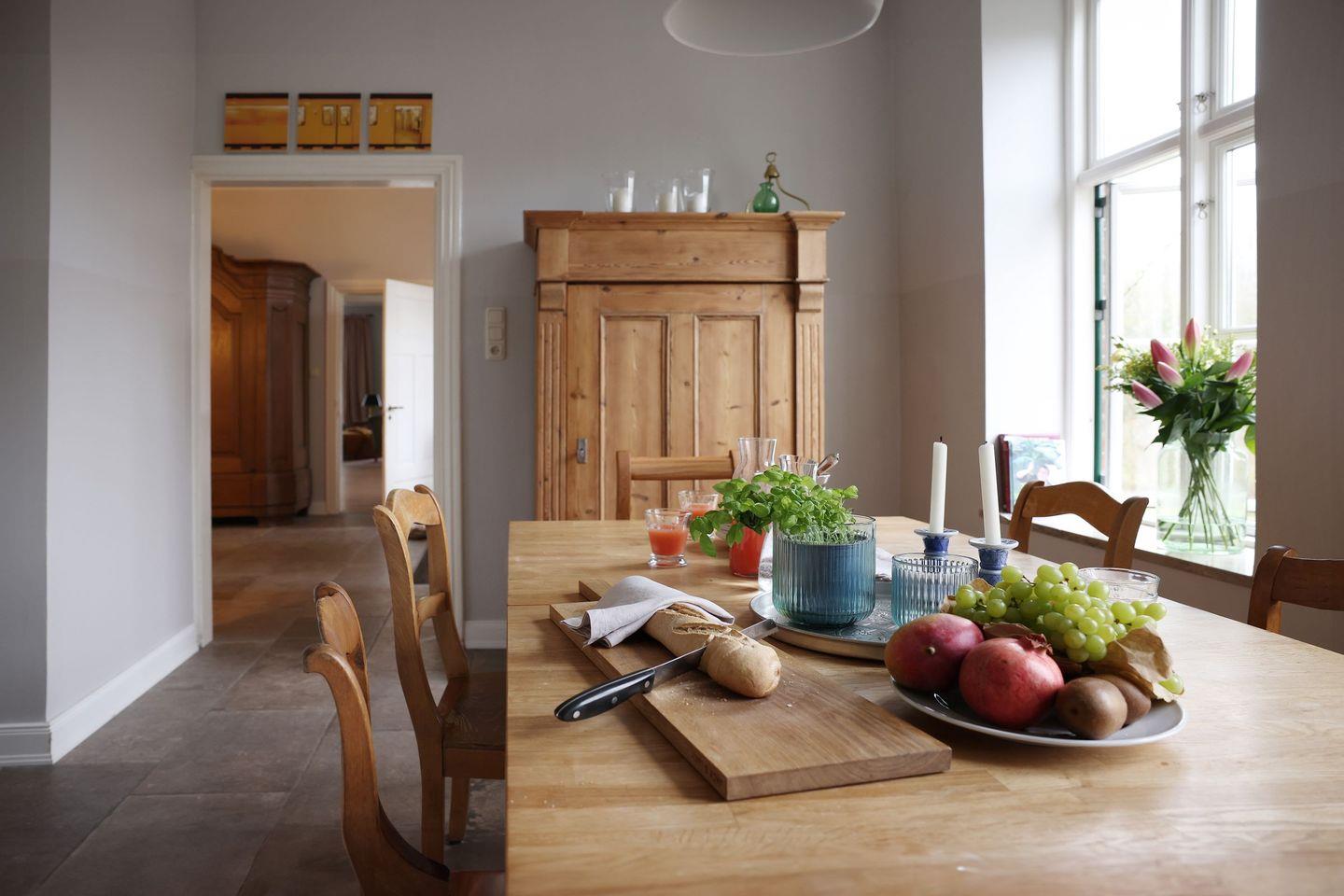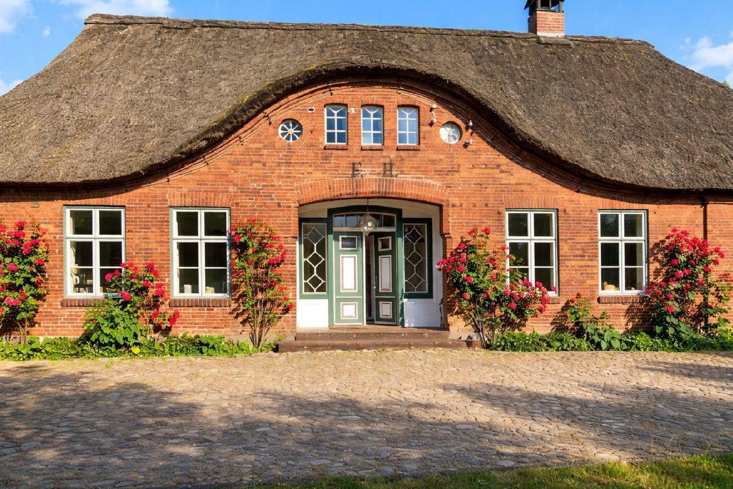 Genießen Sie exklusive Alleinlage im charmanten Reetdachhaus des ehemaligen Müllers. Der weitläufige, nach Süden ausgerichtete Garten lädt mit 8 Liegen und 6 Butterflychairs zum Relaxen und Genießen von Sundownern ein. Für aktive Momente sorgen Fußballtore, Speedminton, Wikingerschach und ein Gasgrill.