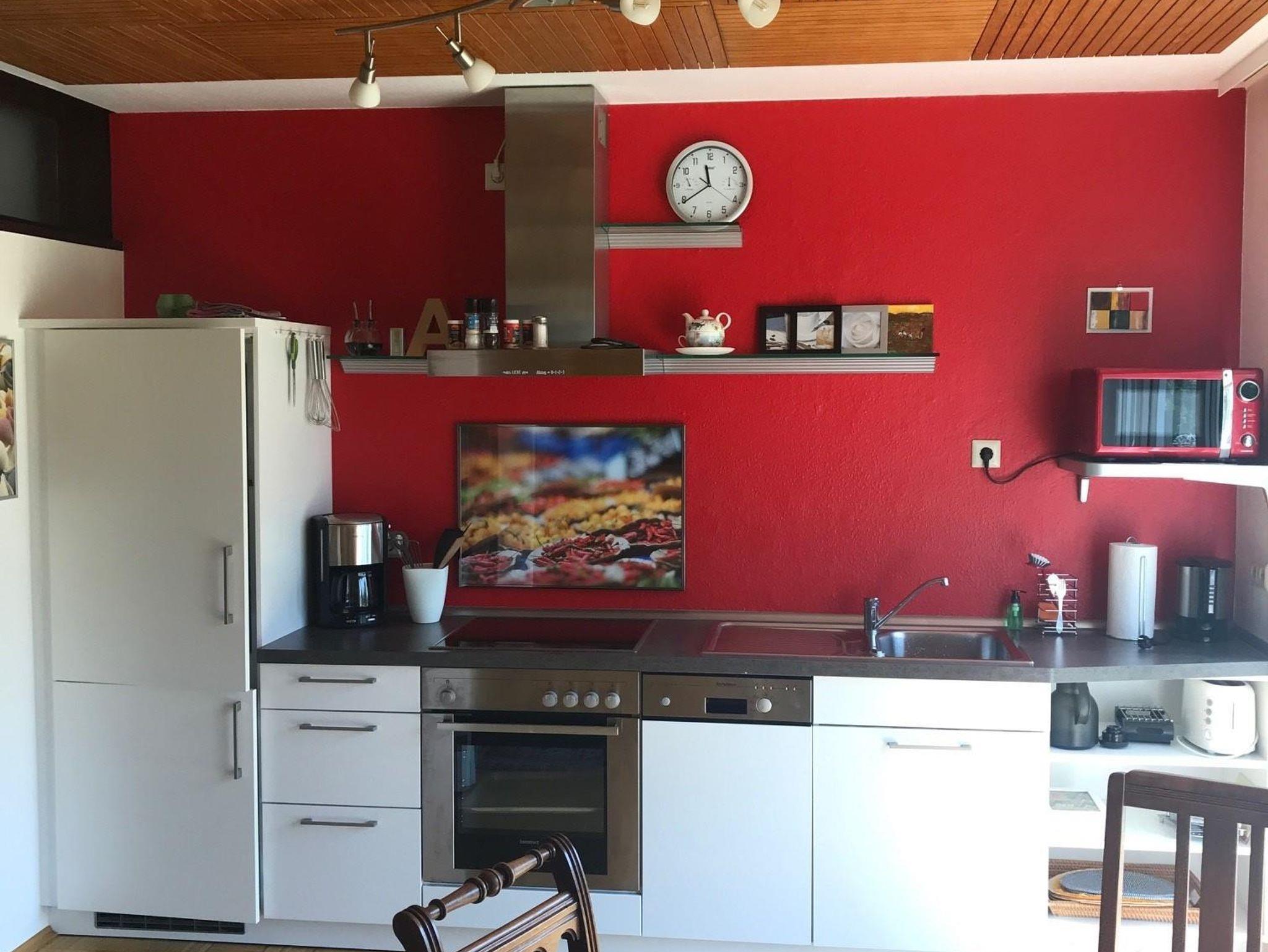 Zwischen Küche und Wohnzimmer gibt es eine Verbindungstür.