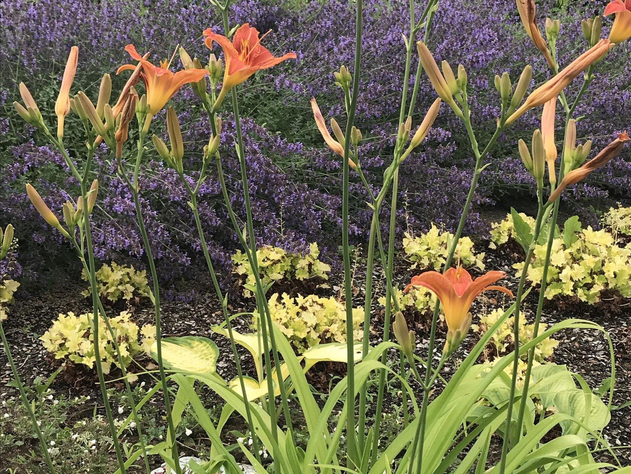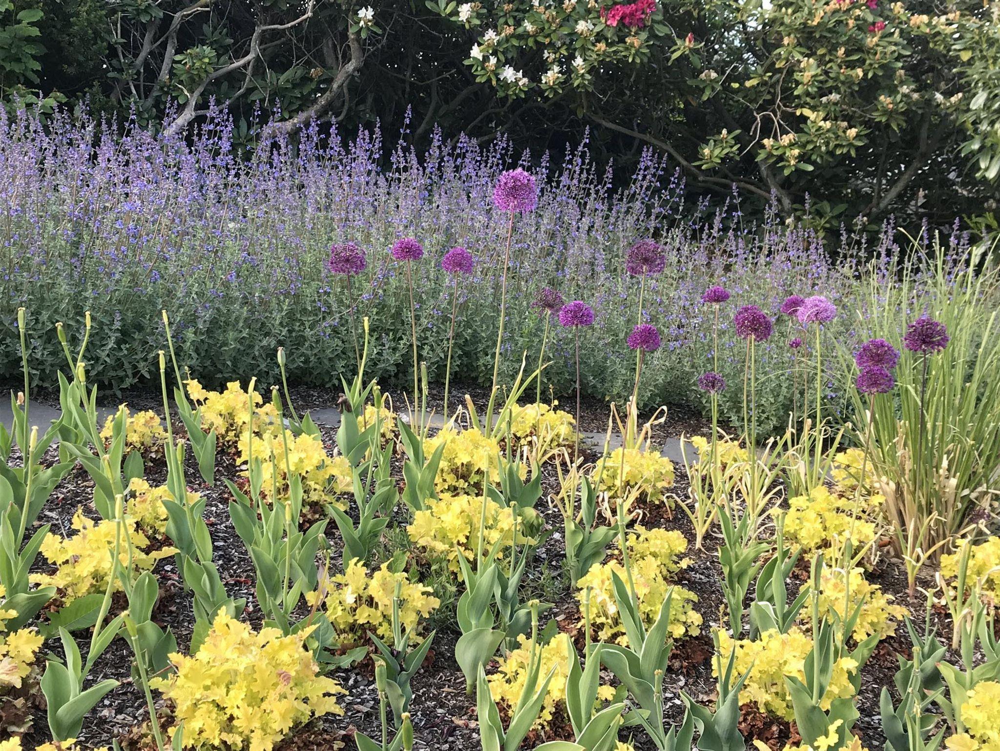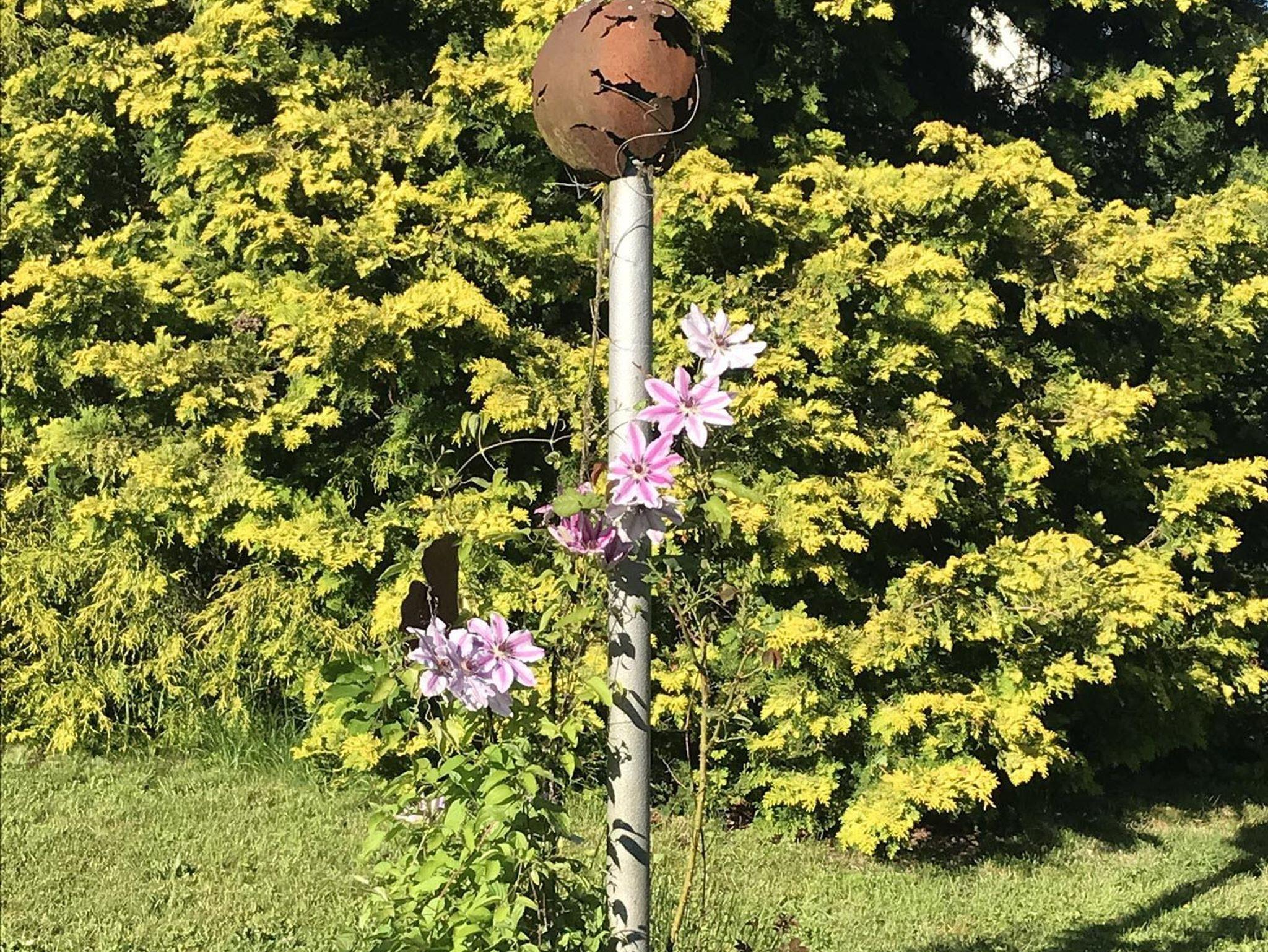 Von der Straße aus sind es sieben Stufen in den Garten, der Eingang liegt direkt im Garten.