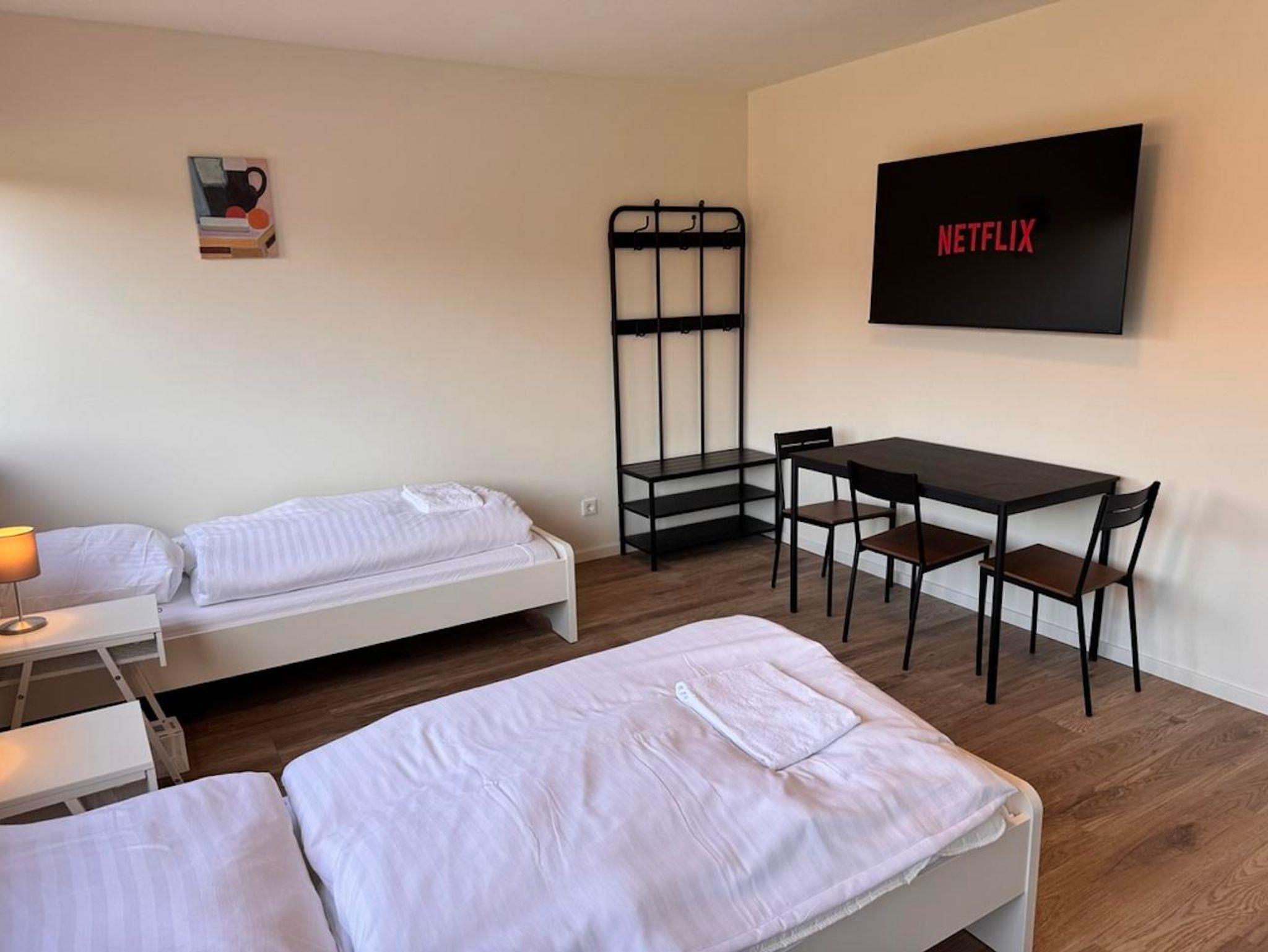 Das McMonti Köln Nord ist eine moderne und einladende Unterkunft, die sowohl für Geschäftsreisende als auch für Urlauber ideal geeignet ist. Sie liegt strategisch günstig und bietet schnellen Zugang zu den wichtigsten Sehenswürdigkeiten und Verkehrsanbindungen der Stadt Köln. Die komfortablen Zimmer sind geschmackvoll eingerichtet und schaffen eine entspannende Atmosphäre. Jedes Zimmer verfügt über kostenloses WLAN, einen Flachbildfernseher, Kühl-/Gefrierkombination und einen Schreibtisch. Die Küche sowie das Badezimmer mit Dusche sind gemeinsam genutzte Bereiche.