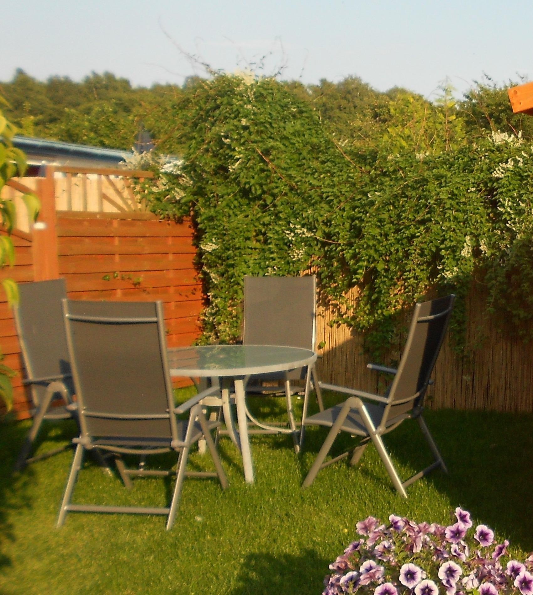 Im Gartenhaus können Fahrräder, Buggys etc. abgestellt werden. Zur Ferienwohnung gehört ein kostenloser PKW-Stellplatz.