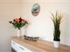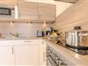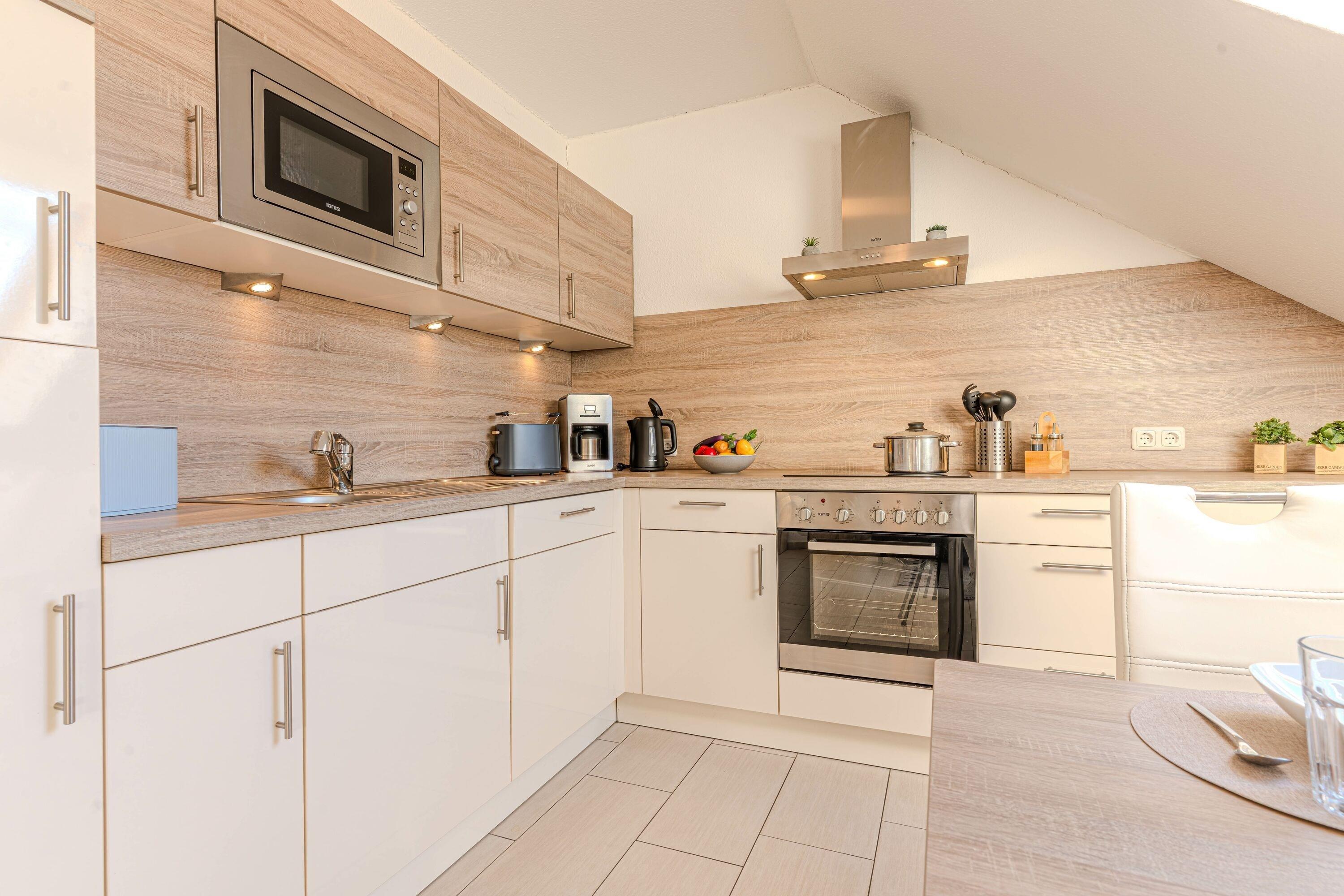Der großzügige Wohnbereich ist lichtdurchflutet und bietet viel Raum zum Entspannen. Die offene Küchenecke ist vollständig ausgestattet und ideal für Gäste, die auch im Urlaub gern selbst kochen.