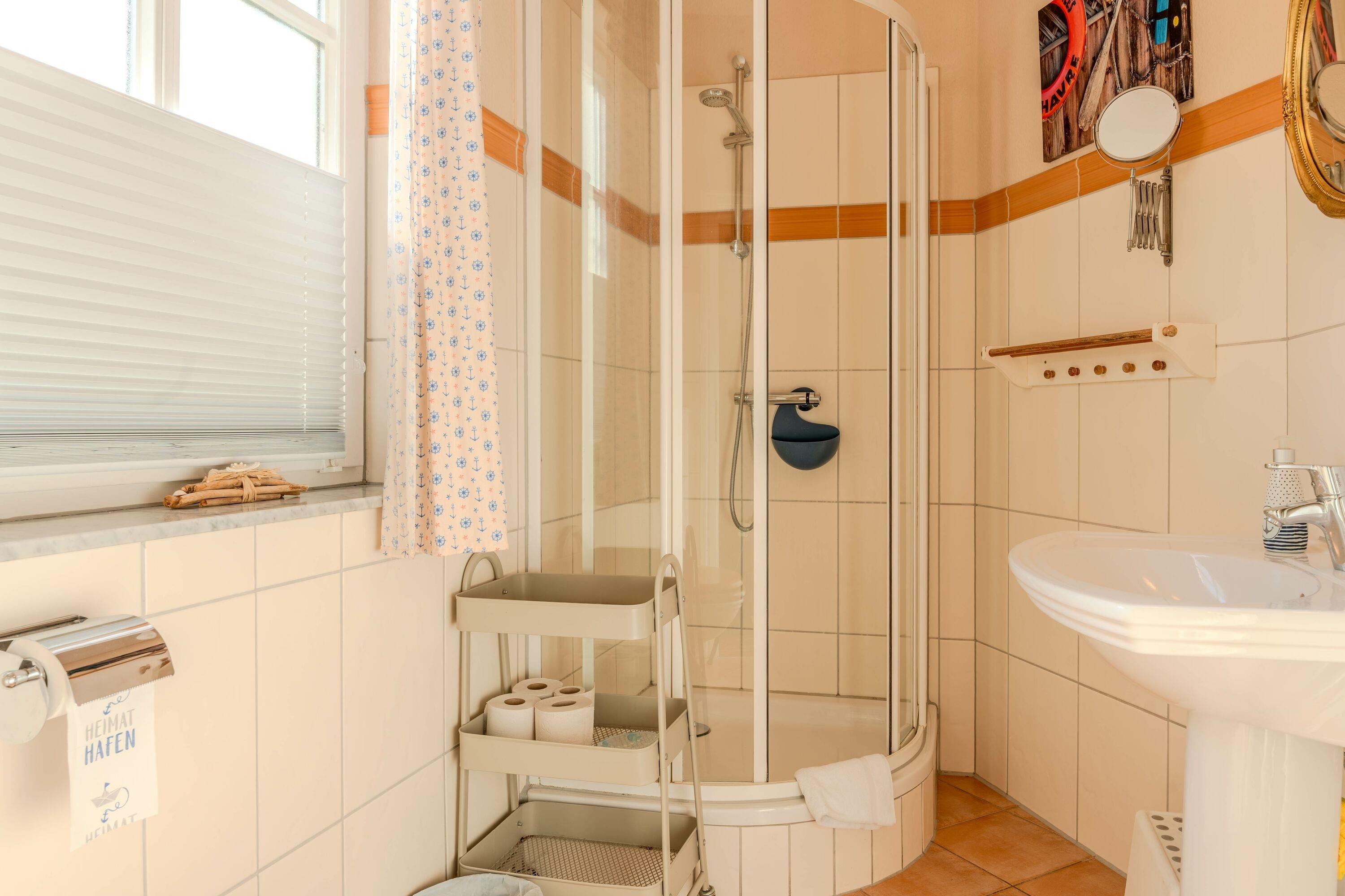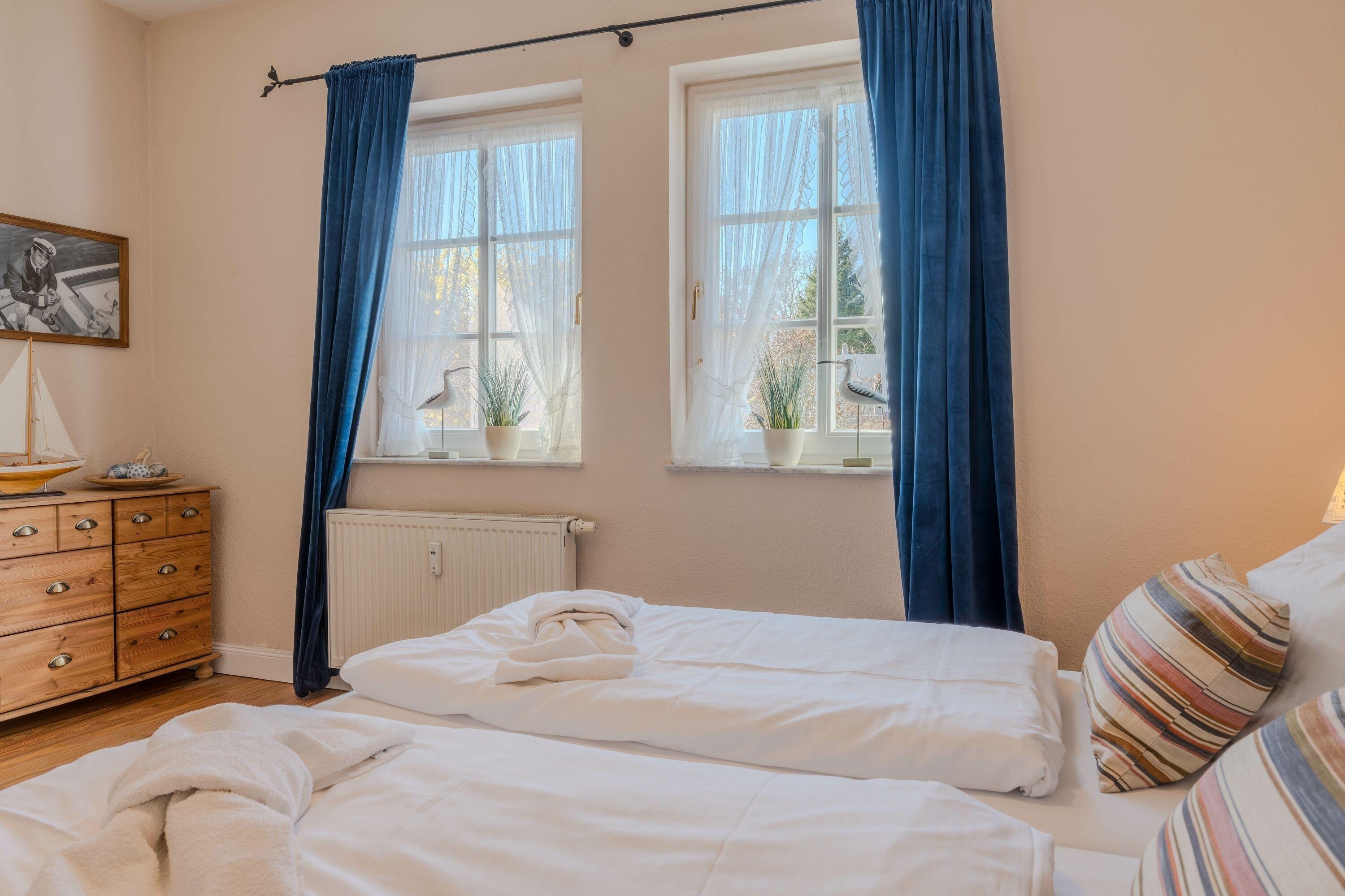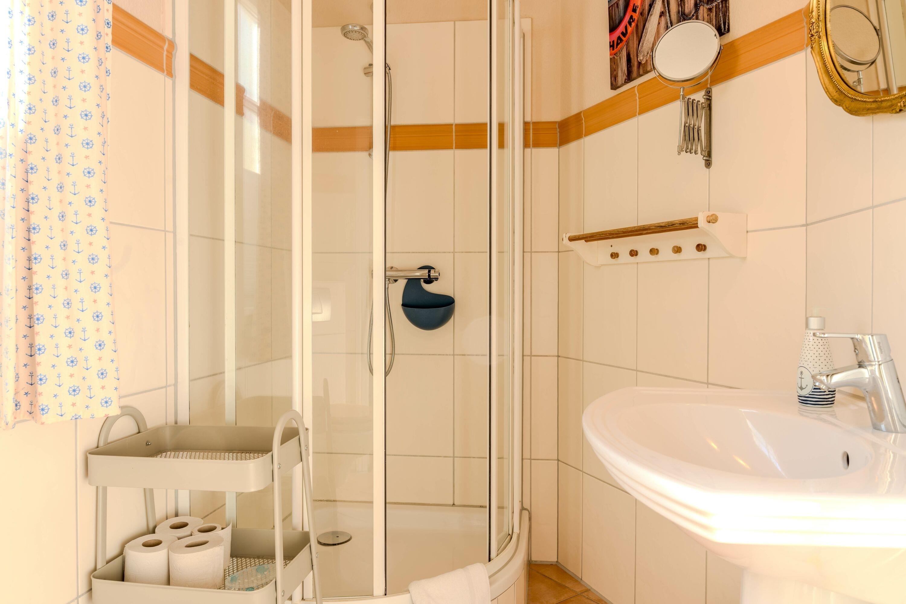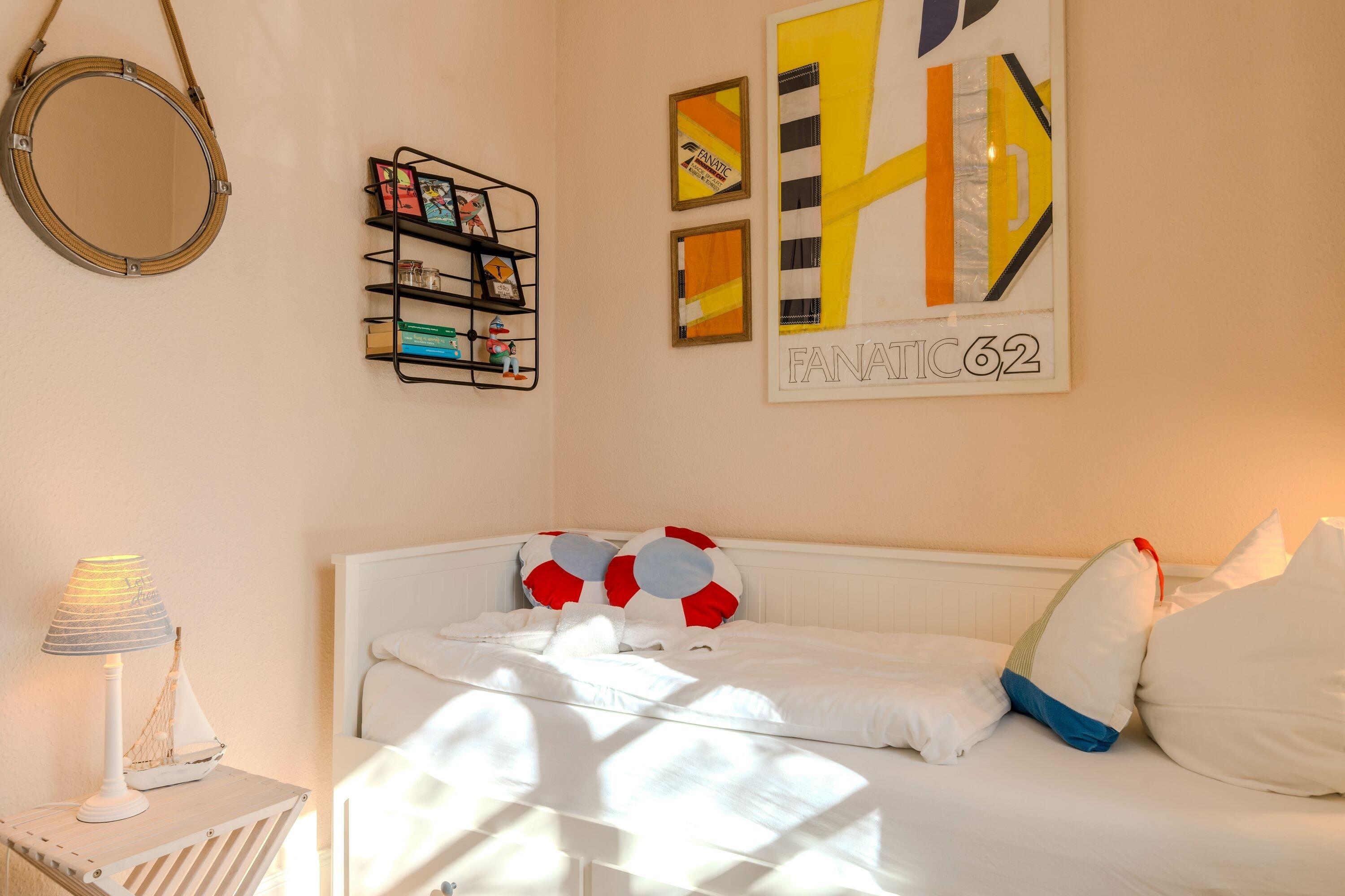 Zwei liebevoll eingerichtete Schlafzimmer sorgen für erholsame Nächte. Das moderne Badezimmer verfügt über eine Dusche – perfekt, um sich nach einem Strandtag zu erfrischen. Bettwäsche und Handtücher sind selbstverständlich inklusive.