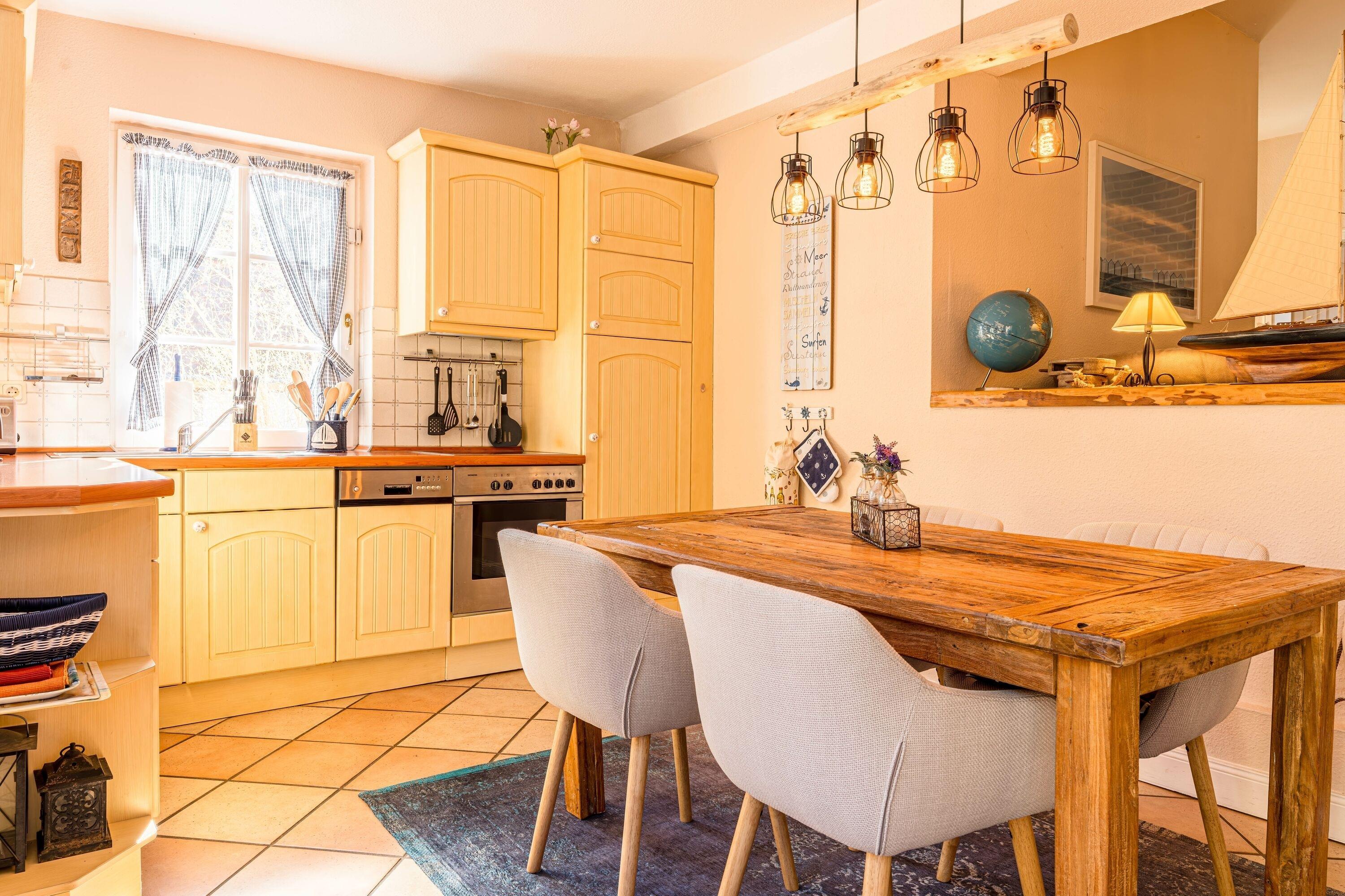 Die lichtdurchflutete Wohnung überzeugt mit einem stilvollen Wohnbereich samt gemütlicher Sofaecke. Der offene Küchenbereich ist vollständig ausgestattet (Herd, Backofen, Geschirrspüler, Kaffeemaschine) und bietet alles, was Sie für gemeinsame Mahlzeiten benötigen.