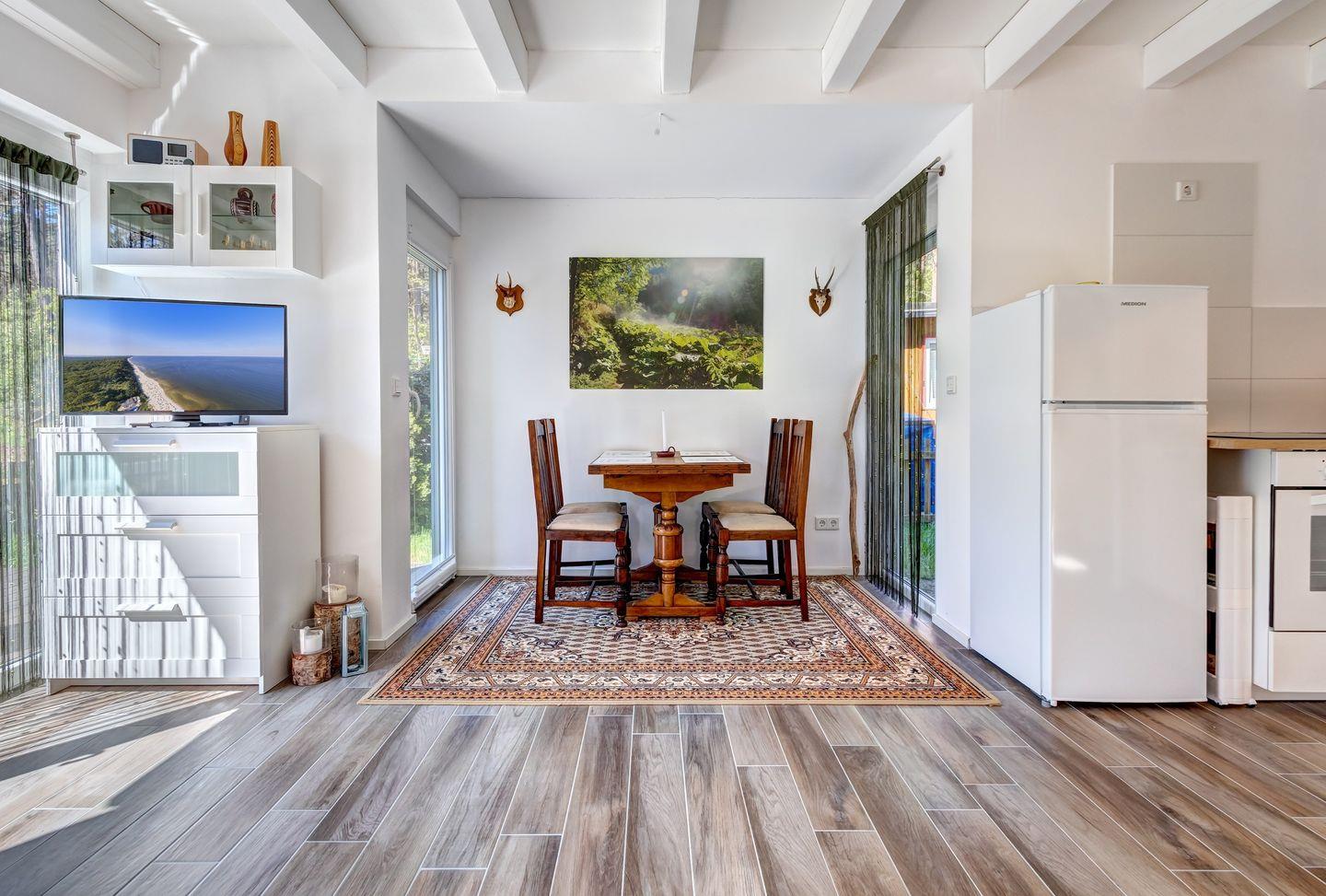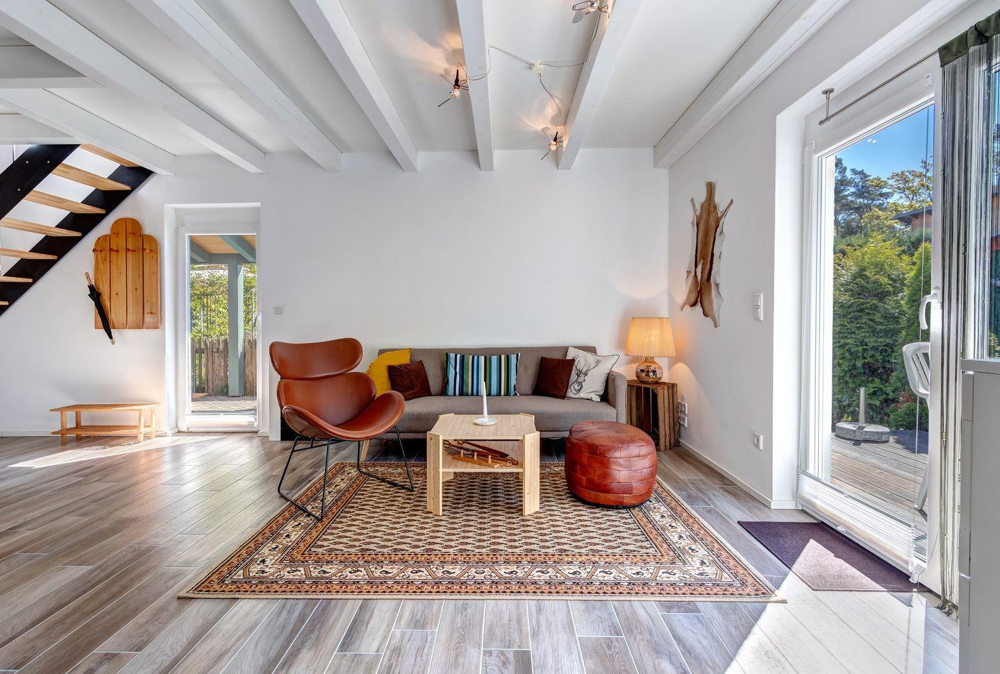 Unsere charmante Ferienwohnung ist ideal für bis zu 4 Gäste, die Ruhe und die Nähe zur Natur suchen. Trotz ihrer kompakten Größe wirkt sie durch die kleine Galerie im Obergeschoss angenehm großzügig. Genießen Sie bereits am Vormittag Ihr Frühstück auf der sonnigen Terrasse und lassen Sie den Tag entspannt beginnen.