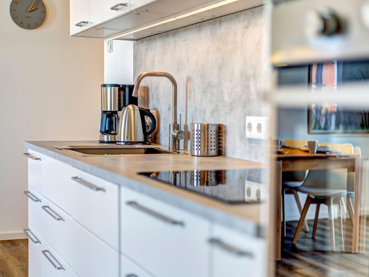 Zur Ausstattung gehören ein kostenfreier Parkplatz, freies WLAN, zwei Flachbild-TVs und eine moderne Einbauküche mit Mikrowelle, Geschirrspüler, Induktionskochfeld, Backofen, Kühl-Gefrierkombination, Kaffeemaschine, Wasserkocher, Toaster und mehr.