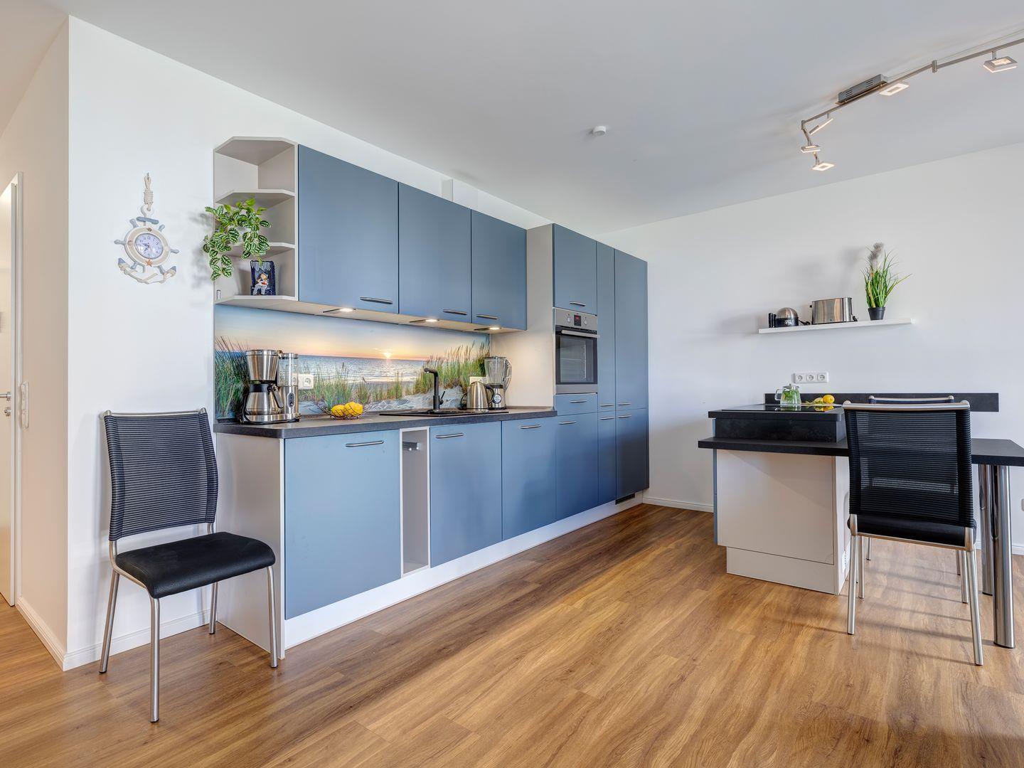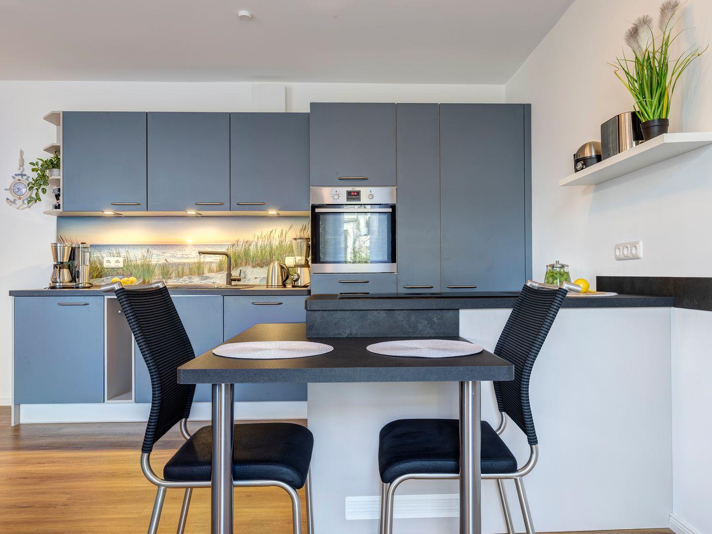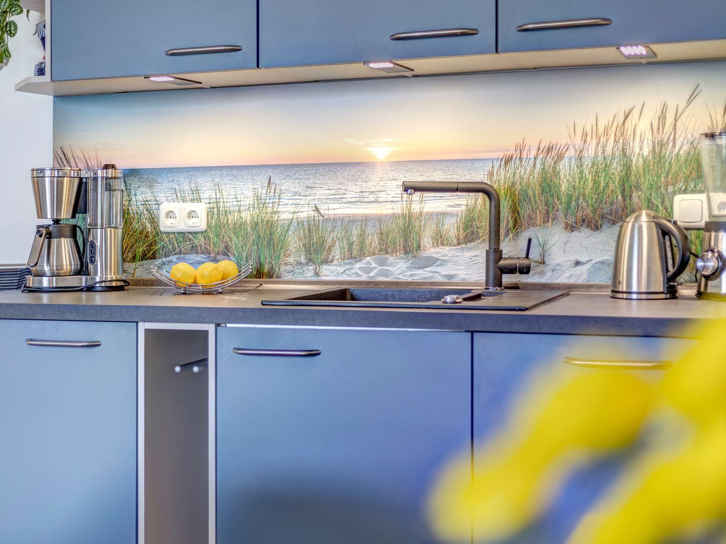 Die offene Küche ist voll ausgestattet und bietet Ihnen alle notwendigen Geräte und Utensilien. Für Grillfans steht ein Elektrogrill sowohl im Innenbereich als auch auf dem Balkon bereit.