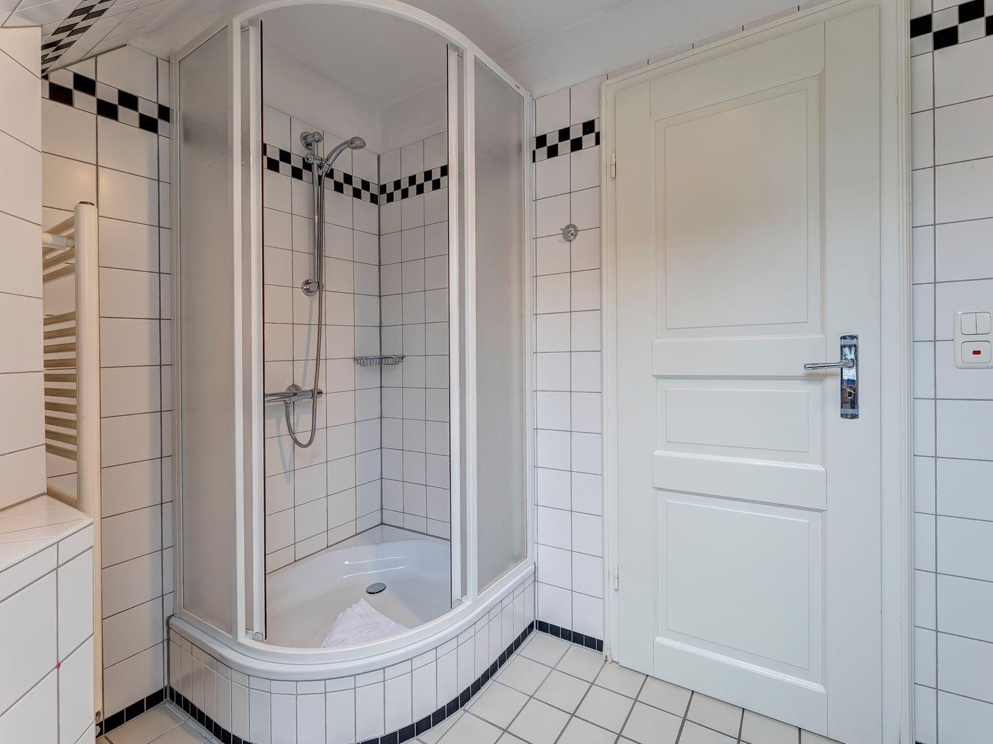 Das Badezimmer ist mit einer Dusche ausgestattet.