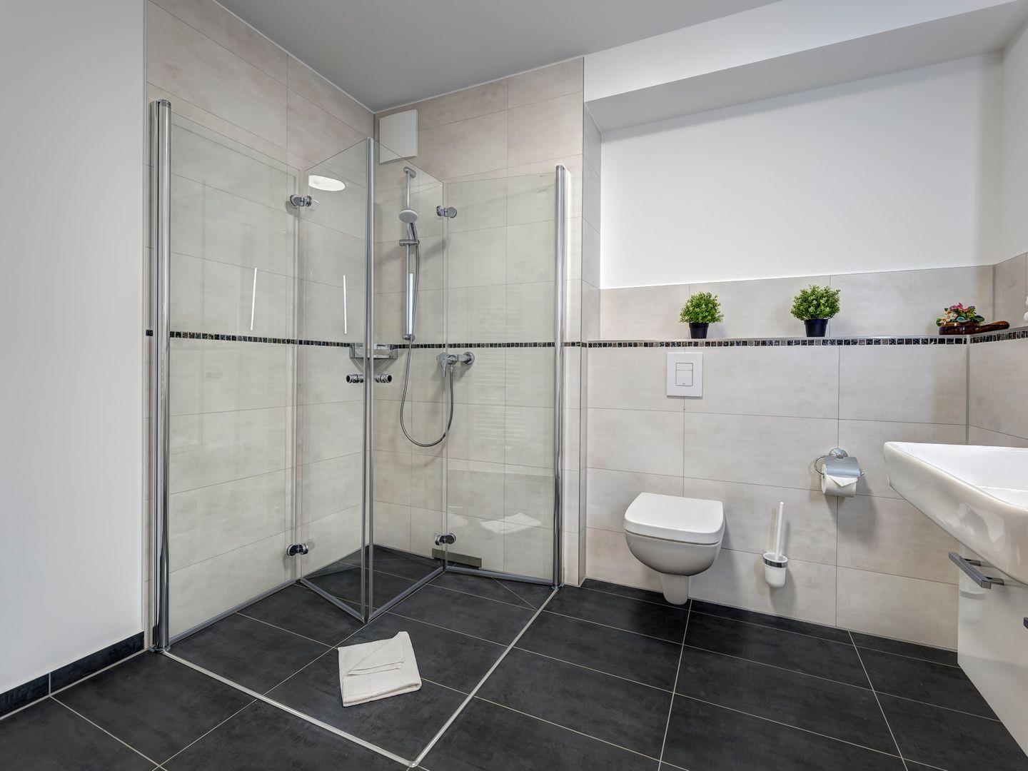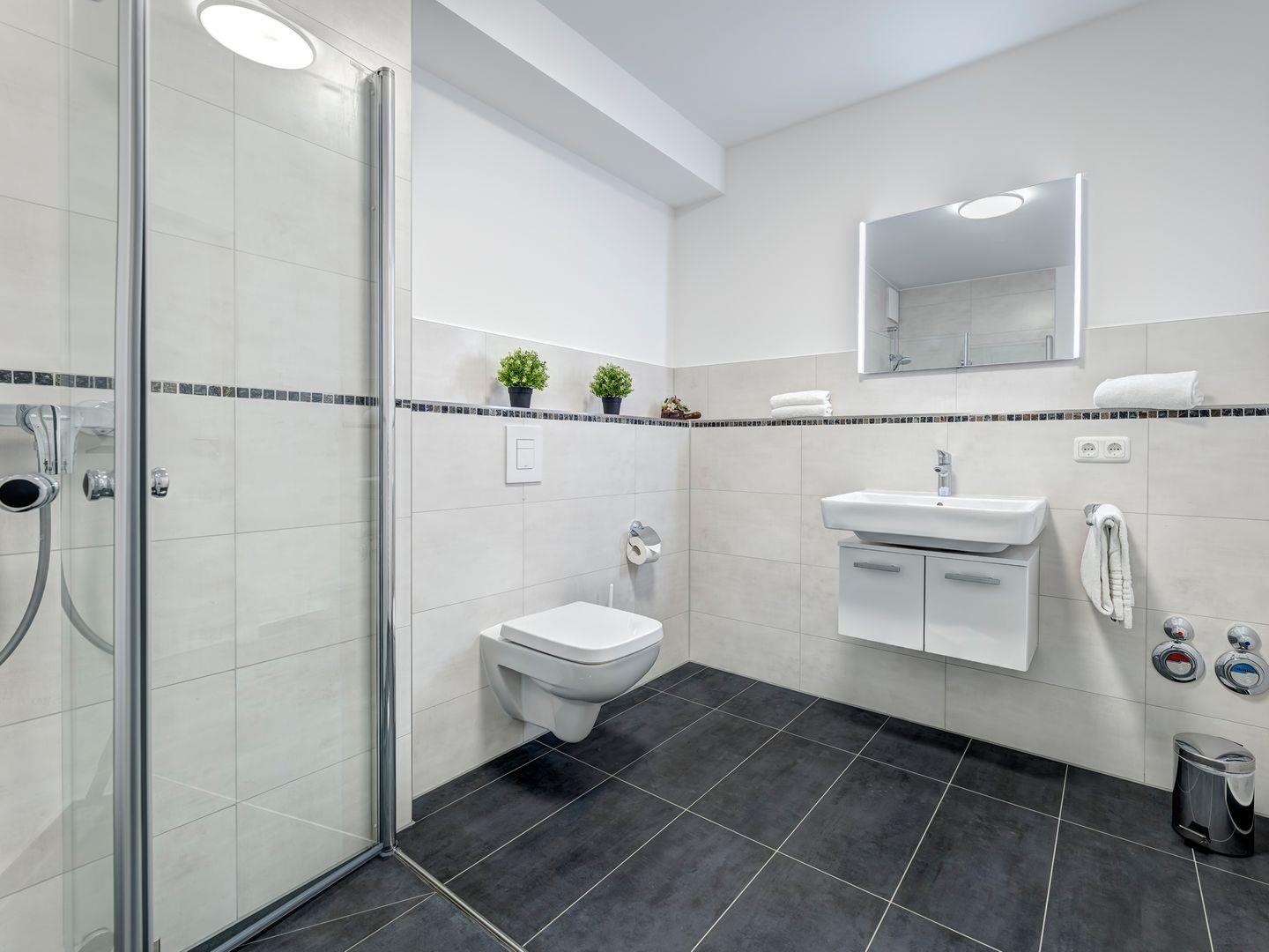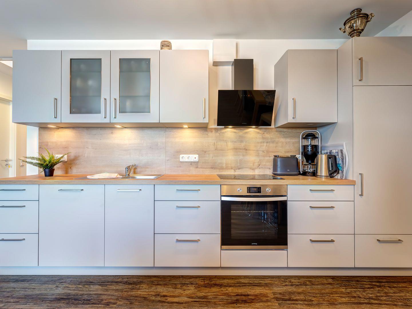 Die Dachgeschosswohnung ist barrierefrei über einen Fahrstuhl zu erreichen. Sie verfügt über ein separates Schlafzimmer mit Doppelbett, eine moderne und bequeme Ausziehcouch im Wohnzimmer mit Flat-Screen-TV, sowie ein barrierefreies Duschbad und eine offene gut ausgestattete Nolte-Küche.