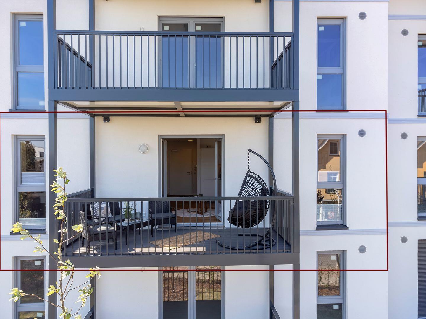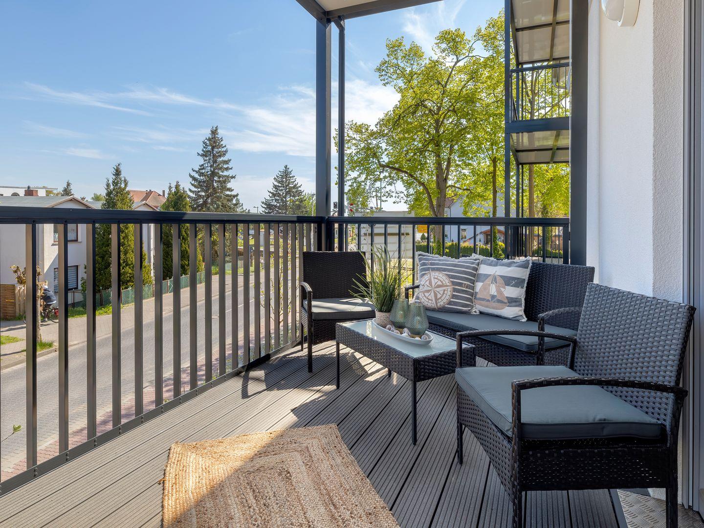 · Balkon zur Südseite mit Sitzgruppe und Hängesessel