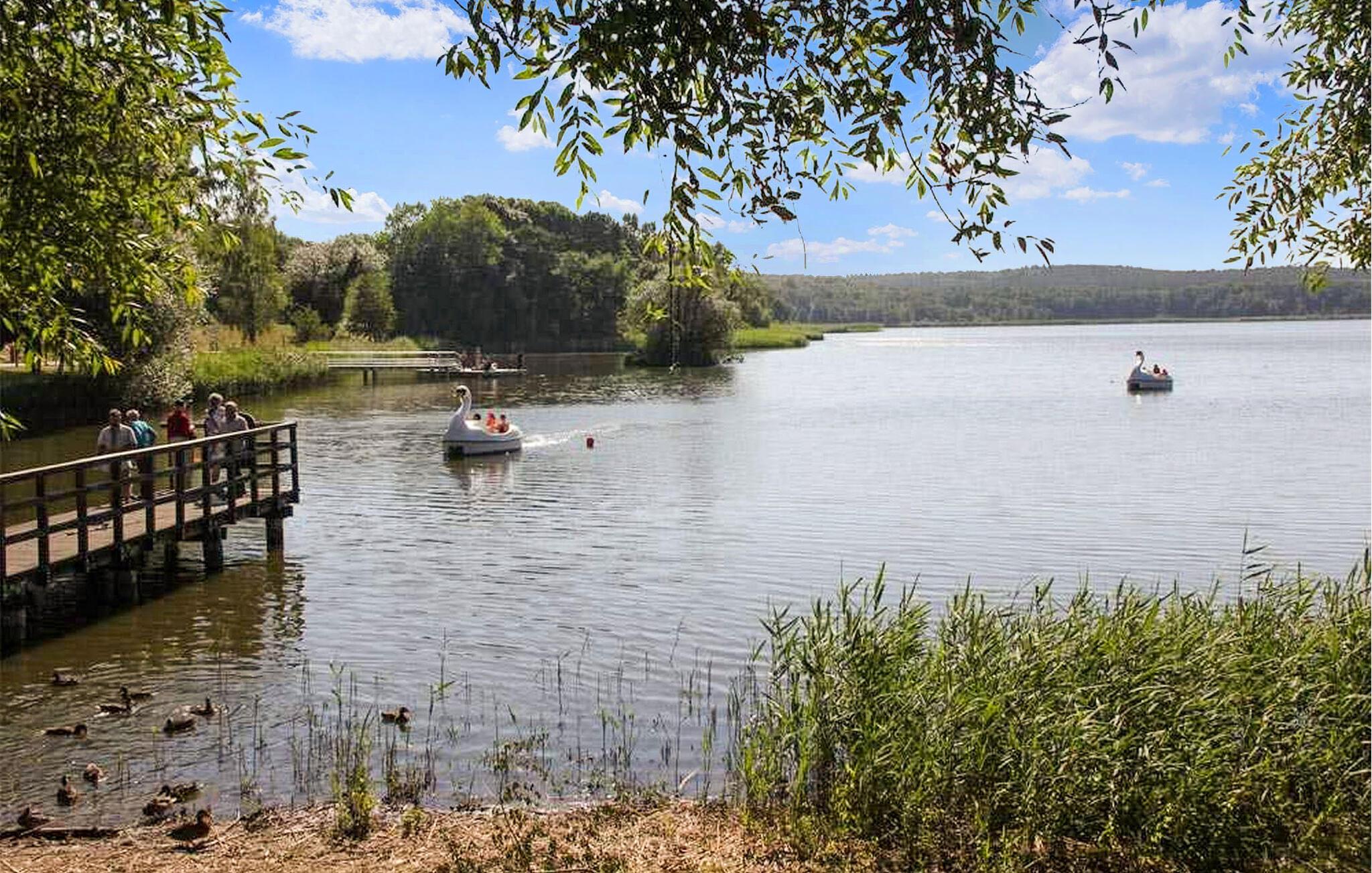 Denne ene af tre ferielejligheder ligger i et separat rækkehus-stil med separat adgang. Rolig beliggenhed på en sidegade, ca. 500 m fra stranden. Lejligheden har opholdsstue (dobbelt sovesofa, spiseplads, TV, radio), soveværelse med dobbeltseng, pantry køkken med 2-plade komfur og mikroovn, bad/WC, centralvarme. Lejligheden har en møbleret terrasse med grill og en gratis parkeringsplads. Mulighed for brug af vaskemaskine efter aftale. Den samlede pris inkluderer: sengelinned, vand og energiforbrug. Du skal selv medbringe håndklæder. Kæledyr: En lille hund (ikke en kat) på op til 40 cm er tilladt i denne ejendom. Medbring venligst en måtte/sovemulighed (tæppe, kurv) til dit dyr. Denne lejlighed har en størrelse på 48 kvadratmeter og er beliggende midt mellem lejlighed 1 og lejlighed 3. Badebyen Kölpinsee er en bydel i kommunen Loddin i den midterste del af øen Usedom, på det smalle punkt mellem kl. Østersøen og Achterwasser. Østersøstranden ved Kölpinsee er bred og særlig fin. Samtidig lover stedet fred og afslapning ved Achterwassers indre kyst og er et interessant sted at bo, især for lystfiskere, takket være Kölpinsee, som er rig på fisk. Der er en multi-generation legeplads på promenaden. Fra maj til oktober finder forskellige arrangementer sted i den lokale spa-pavillon med udsigt over søen Kölpinsee. Der er også restauranter og butikker i byen, en ridestald og udlejning af cykel, båd og strandstole.