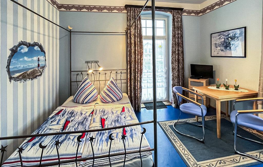 De seks ikke-ryger ferielejligheder af forskellig størrelse og indretning ligger separat i stueetagen og øverste etage i en lejlighedsbygning med en central beliggenhed. Der er også et sommerhus (DZV870) på ejendommen. Østersøstranden med strandpromenade, restauranter/caféer og Usedomer Bäderbahn togstation ligger inden for cirka 500 m. Den lille 1-værelses lejlighed til 2 personer ligger på øverste etage og har en møbleret balkon. Den er udstyret med kombineret stue/soveværelse med åbent tekøkken (dobbeltseng, sidde- og spiseplads, fladskærms-tv, elektrisk kogeplade, køleskab med fryseboks, mikroovn, diverse køkkenmaskiner), samt badeværelse med bruser. /toilet. Der er et centralt udendørs opholdsområde med grillfaciliteter på den 820 kvm store ejendom. Der er også opbevaringsplads til cykler og parkeringsplads til biler. En barneseng og høj stol kan stilles til rådighed for små børn. Der er også gratis WiFi. Lejeprisen inkluderer slutrengøring, sengetøj samt vand- og elforbrug. Håndklæder skal medbringes. Der skal betales en spaskat i feriestedet Kölpinsee ved Østersøen (betales på stedet) Kæledyr er ikke tilladt på denne ejendom. Badebyen Kölpinsee er et distrikt i Loddin kommune i den midterste del af øen Usedom, på det smalle punkt mellem Østersøen og Achterwasser. Østersøstranden i Kölpinsee er bred og særlig fin. Samtidig lover stedet fred og afslapning ved Achterwassers indre kyst og er et interessant sted at opholde sig, især for lystfiskere takket være den fiskerige Kölpinsee. Der er en multi-generation legeplads på promenaden. Forskellige arrangementer finder sted fra maj til oktober i den lokale spa-pavillon med udsigt over søen Kölpinsee. Restauranter og indkøbsmuligheder, en ridestald og udlejning af cykel, båd og strandstole er også placeret i byen.
