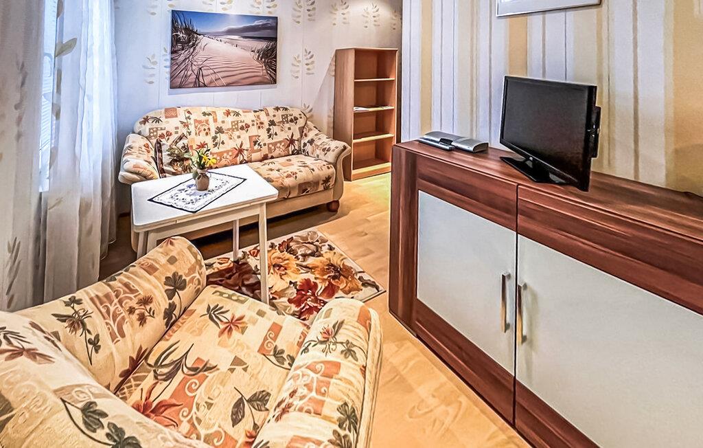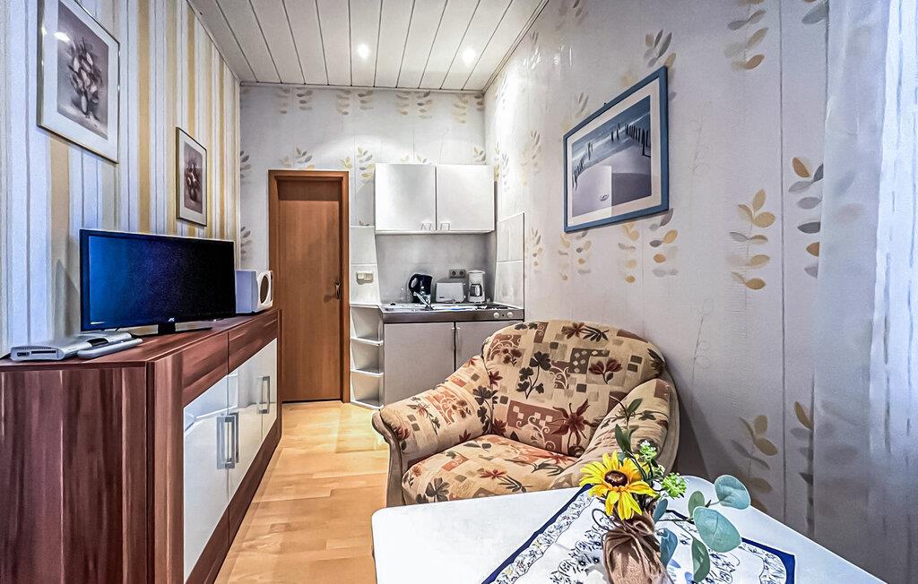 De seks ikke-ryger ferielejligheder af forskellig størrelse og indretning ligger separat i stueetagen og øverste etage i en lejlighedsbygning med en central beliggenhed. Der er også et sommerhus (DZV870) på ejendommen. Østersøstranden med strandpromenade, restauranter/caféer og Usedomer Bäderbahn togstation ligger inden for cirka 500 m. Denne toværelses lejlighed til 2 personer ligger på øverste etage. Den er udstyret med en stue (polstrede møbler med sovefunktion som en ekstra seng til 2 personer, fladskærms-tv), et køkken (spisebord, elektrisk kogeplade, køleskab med fryser, mikroovn, diverse køkkenmaskiner), et soveværelse (2 enkeltsenge der kan sættes sammen) og et Badeværelse med brus/toilet. Lejligheden har en møbleret altan. Der er et centralt udendørs opholdsområde med grillfaciliteter på den 820 kvm store ejendom. Der er også opbevaringsplads til cykler og parkeringsplads til biler. En barneseng og høj stol kan stilles til rådighed for små børn. Der er også gratis WiFi. Lejeprisen inkluderer slutrengøring, sengetøj samt vand- og elforbrug. Håndklæder skal medbringes. Der skal betales en spaskat i feriestedet Kölpinsee ved Østersøen (betales på stedet) Kæledyr er ikke tilladt på denne ejendom. Badebyen Kölpinsee er et distrikt i Loddin kommune i den midterste del af øen Usedom, på det smalle punkt mellem Østersøen og Achterwasser. Østersøstranden i Kölpinsee er bred og særlig fin. Samtidig lover stedet fred og afslapning ved Achterwassers indre kyst og er et interessant sted at opholde sig, især for lystfiskere takket være den fiskerige Kölpinsee. Der er en multi-generation legeplads på promenaden. Forskellige arrangementer finder sted fra maj til oktober i den lokale spa-pavillon med udsigt over søen Kölpinsee. Restauranter og indkøbsmuligheder, en ridestald og udlejning af cykel, båd og strandstole er også placeret i byen.
