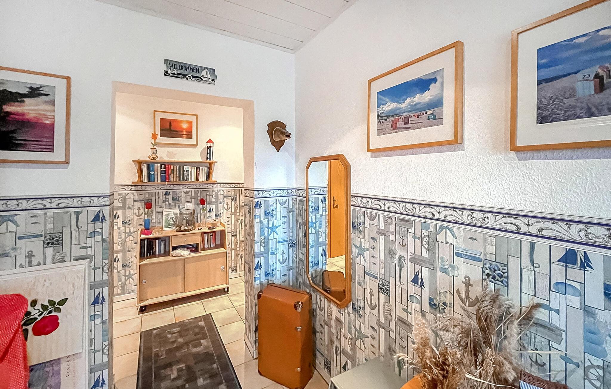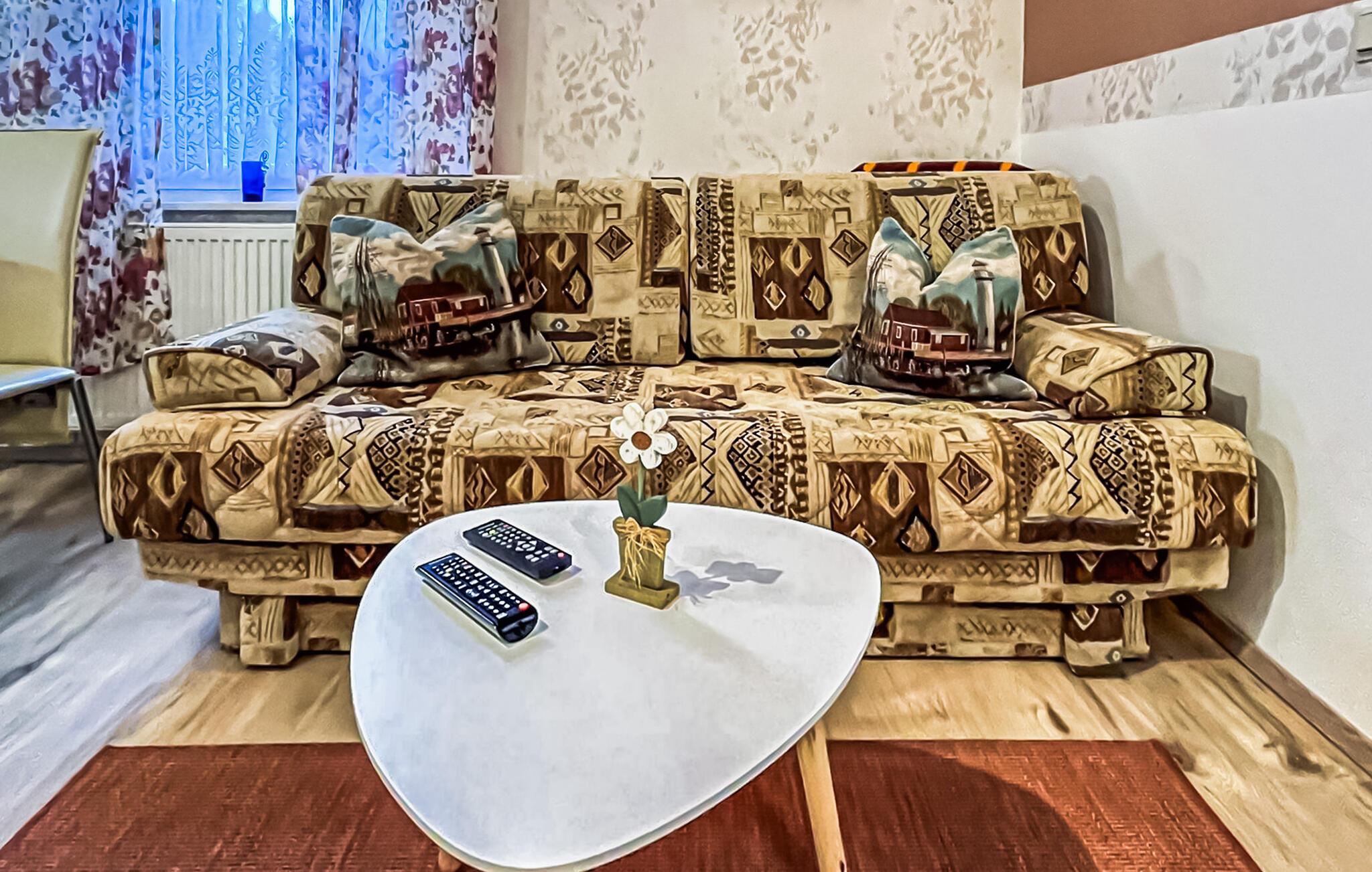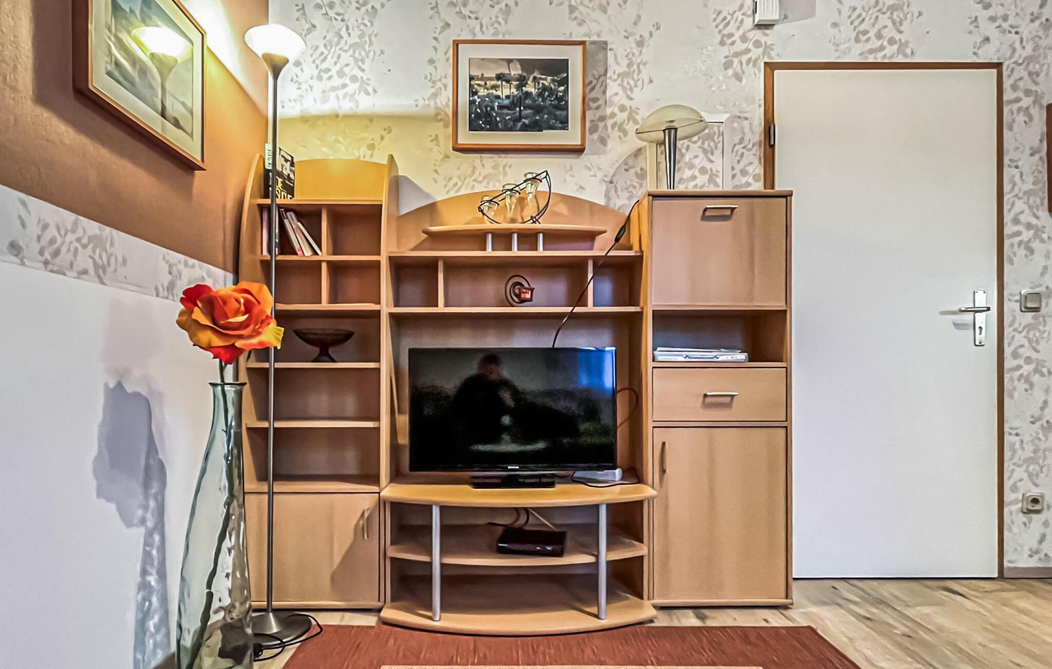 De seks ikke-ryger ferielejligheder af forskellig størrelse og indretning ligger separat i stueetagen og øverste etage i en lejlighedsbygning med en central beliggenhed. Der er også et sommerhus (DZV870) på ejendommen. Østersøstranden med strandpromenade, restauranter/caféer og banegården Usedomer Bäderbahn ligger inden for en radius af omkring 500 m. Toværelseslejligheden til 2 til maks. 4 personer ligger i stueetagen. Den er udstyret med en stue (polstrede møbler med sovefunktion som en ekstra seng til 2 personer, fladskærms-tv), et åbent tekøkken (spisebord, elektrisk kogeplade, køleskab med fryser, diverse køkkenmaskiner), et soveværelse ( dobbeltseng) og et badeværelse med bruser/toilet. Der blev indrettet et opholdsområde i indgangspartiet til lejligheden i stueetagen. Alternativt er der et centralt udendørs opholdsområde med grillfaciliteter på den 820 kvm store ejendom. Der er også opbevaringsplads til cykler og parkeringsplads til biler. En barneseng og høj stol kan stilles til rådighed for små børn. Der er også gratis WiFi. Lejeprisen inkluderer slutrengøring, sengetøj samt vand- og elforbrug. Håndklæder skal medbringes. Der skal betales en spaskat i feriestedet Kölpinsee ved Østersøen (betales på stedet) Kæledyr er ikke tilladt på denne ejendom. Badebyen Kölpinsee er et distrikt i Loddin kommune i den midterste del af øen Usedom, på det smalle punkt mellem Østersøen og Achterwasser. Østersøstranden i Kölpinsee er bred og særlig fin. Samtidig lover stedet fred og afslapning ved Achterwassers indre kyst og er et interessant sted at opholde sig, især for lystfiskere takket være den fiskerige Kölpinsee. Der er en multi-generation legeplads på promenaden. Forskellige arrangementer finder sted fra maj til oktober i den lokale spa-pavillon med udsigt over søen Kölpinsee. Restauranter og indkøbsmuligheder, en ridestald og udlejning af cykel, båd og strandstole er også placeret i byen.