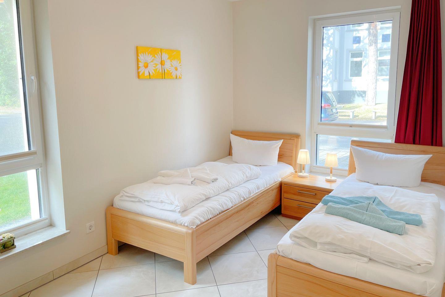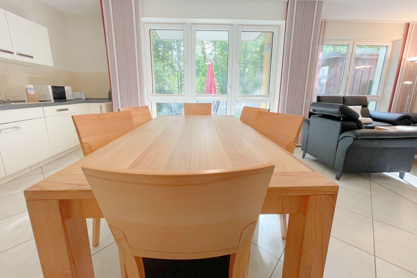 Mit einer Fläche von 76 m² ist die Unterkunft ideal für bis zu vier Personen und überzeugt durch ihre gemütliche und einladende Atmosphäre. Die Ferienwohnung zeichnet sich durch zwei behagliche Schlafzimmer aus, in denen Sie nach einem erlebnisreichen Tag am Strand wunderbar entspannen können. Das offene Wohnkonzept verbindet die voll ausgestattete Küche harmonisch mit dem hellen Wohnzimmer. Genießen Sie gesellige Abende am Esstisch oder verweilen Sie in der Sofaecke, während Sie einen Film auf dem digitalen TV-Gerät schauen.