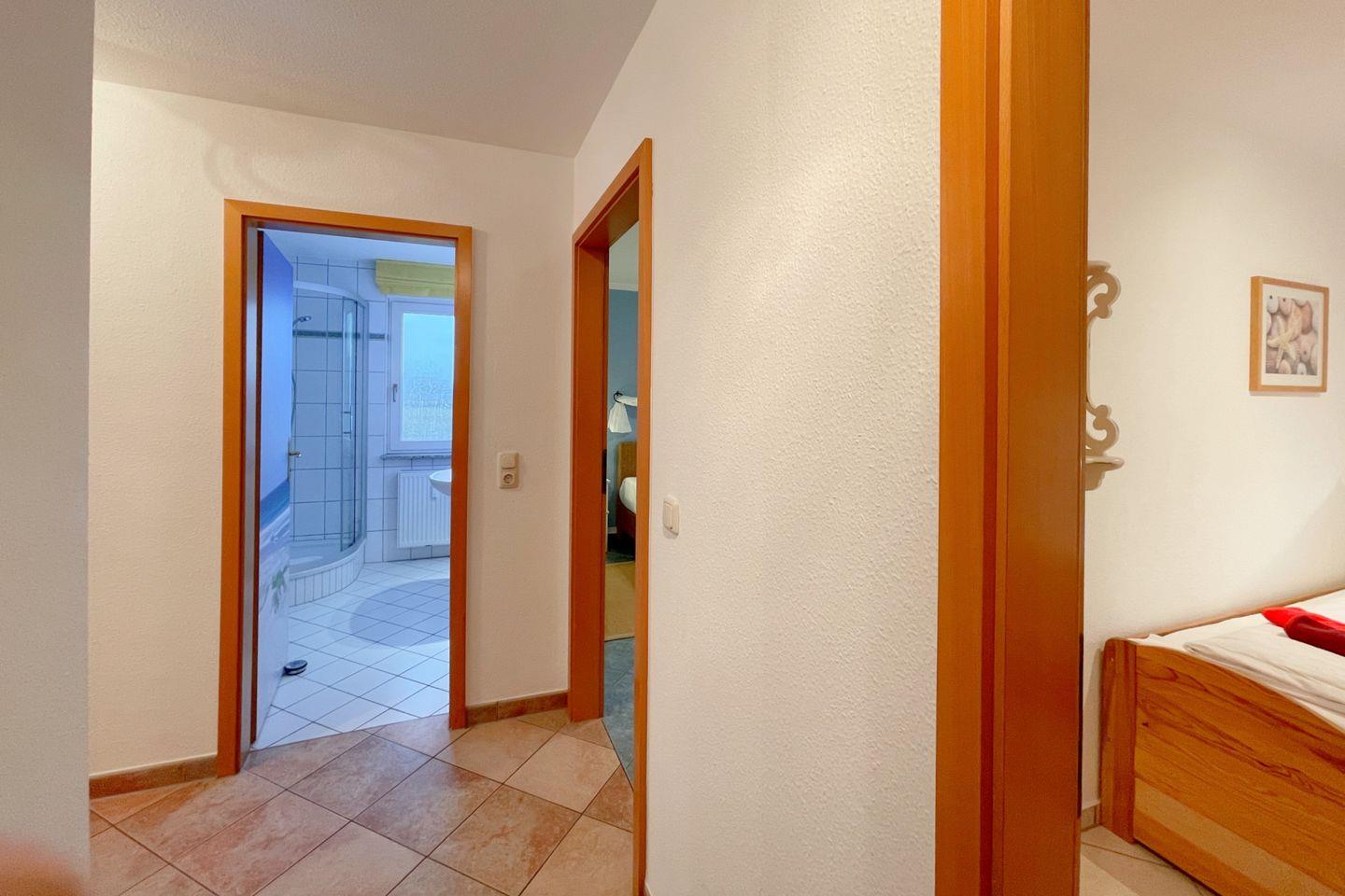 Die Ferienwohnung verfügt über zwei liebevoll eingerichtete Schlafzimmer, die zum Träumen einladen. Das Badezimmer ist mit einer Dusche ausgestattet, sodass Sie erfrischende Duschen genießen können.