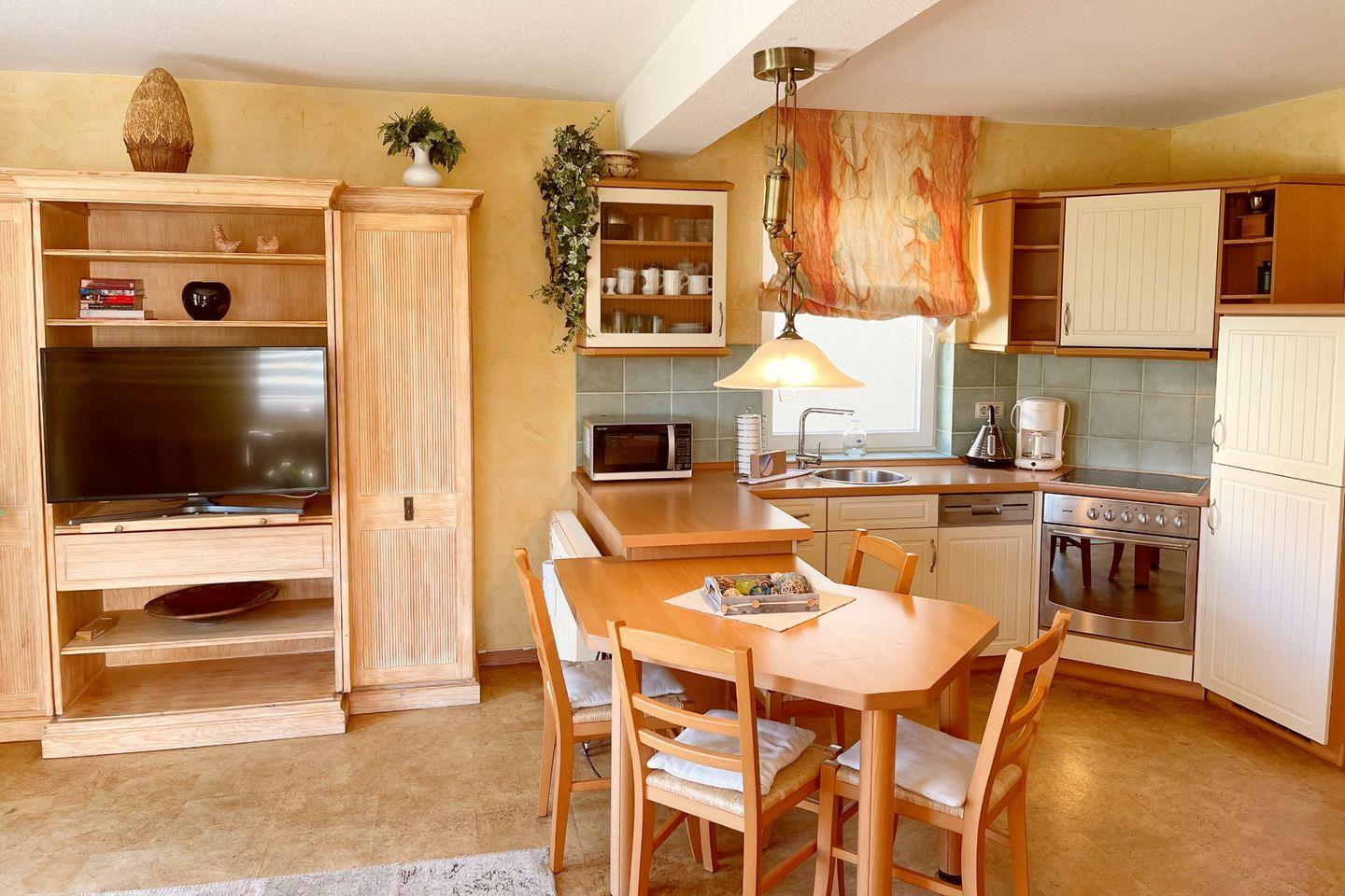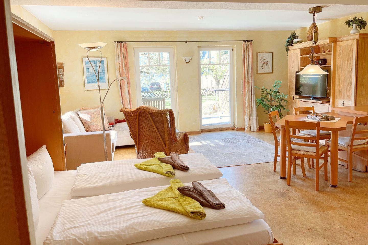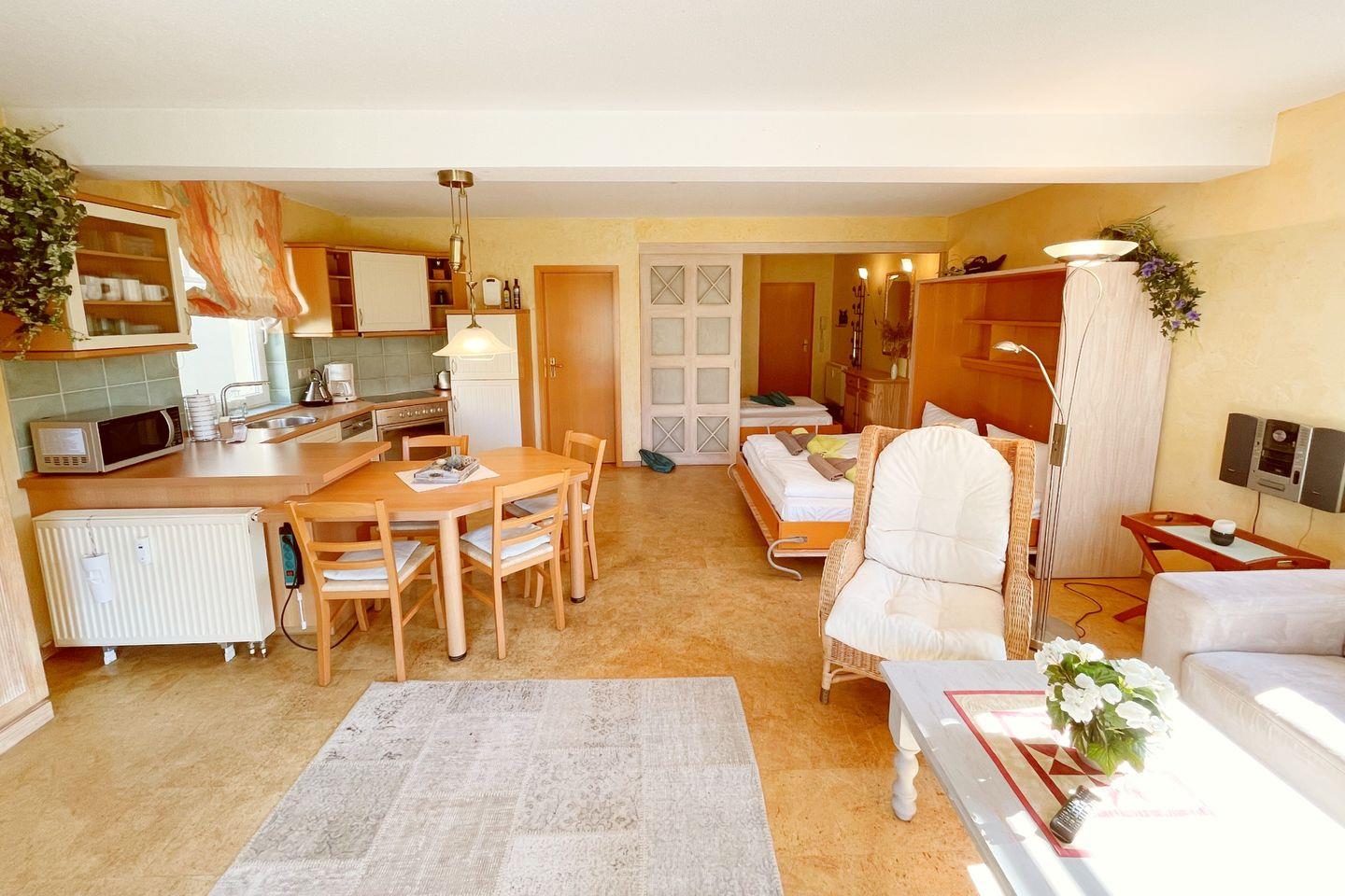 Das 1,5-Zimmer-Apartment im Erdgeschoss begrüßt Sie mit einer Sonnenterrasse in Südlage. Sehr ruhig und nur wenige Gehminuten von der Ostsee entfernt. Das Wohnzimmer mit offener Küche, Essecke, bequemer Couch und einem Schrankbett, bildet das Herzstück dieses Apartments. Im Vorraum befindet sich ein weiteres Schrankbett, für die 3te Person, das mittels Schiebetür, vom Wohnzimmer, getrennt werden kann. In dem modernen Duschbad befindet sich neben dem WC ein doppelter Waschtisch mit Spiegel.